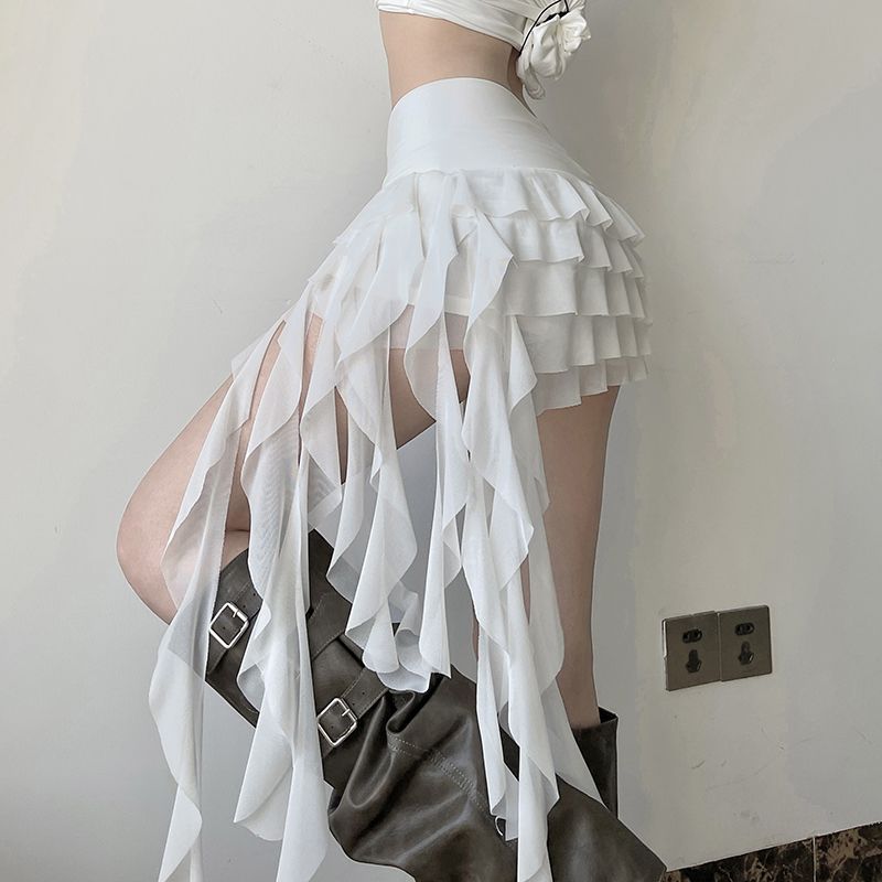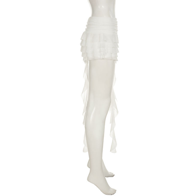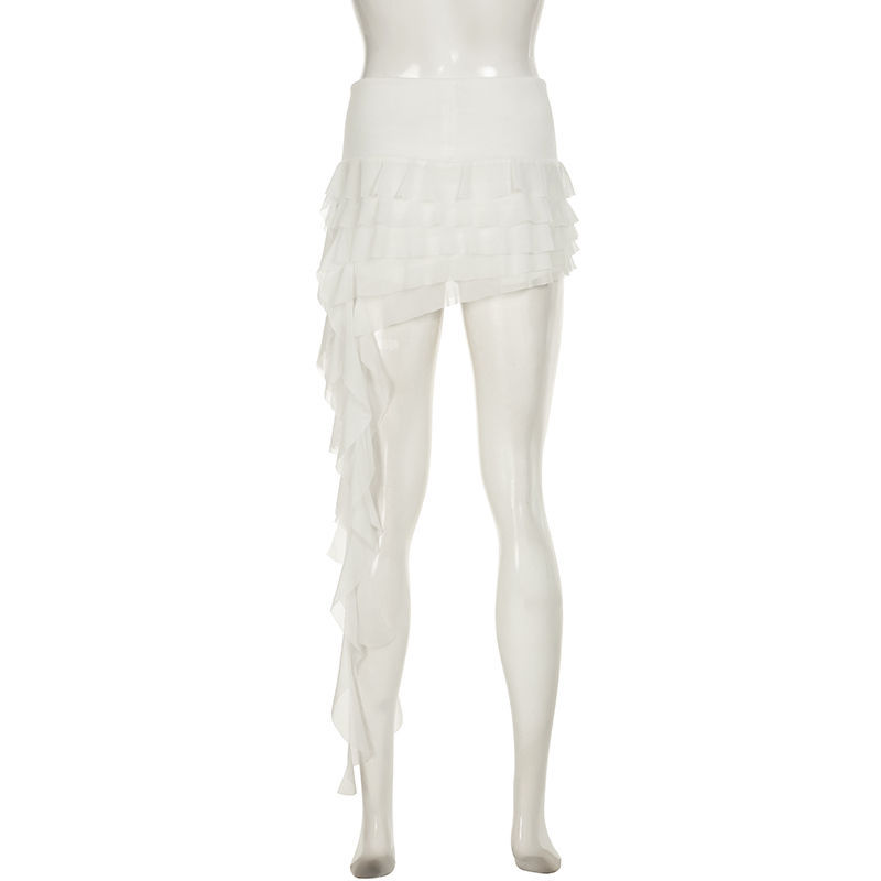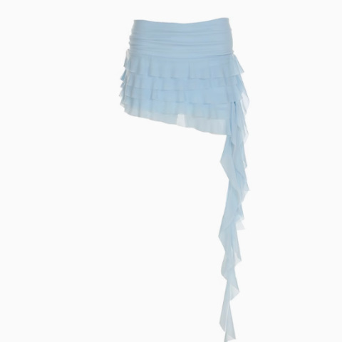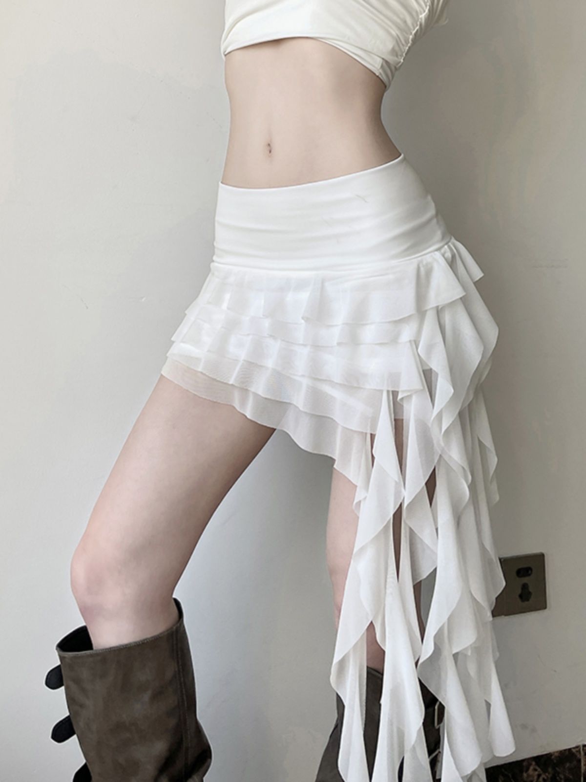 2025 여자 여름 방학 우아한 불규칙한 러플 스커트 스파이스 걸 쌓아 올매치 솔리드 컬러 스커트스토어 가기