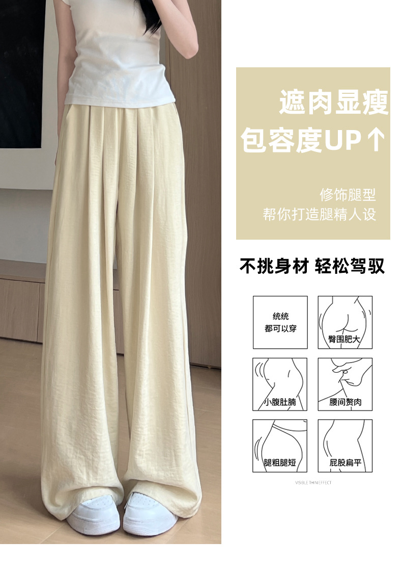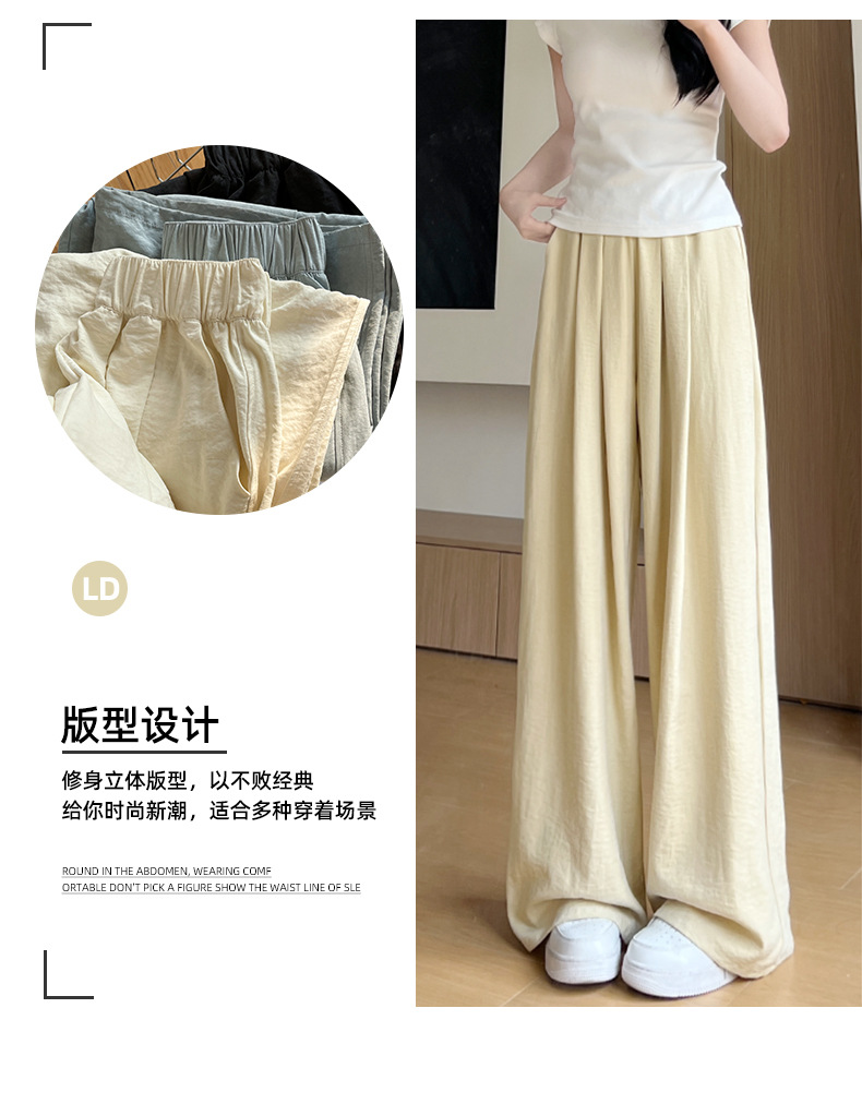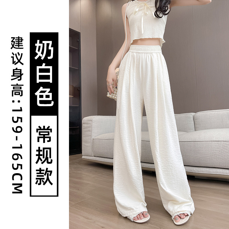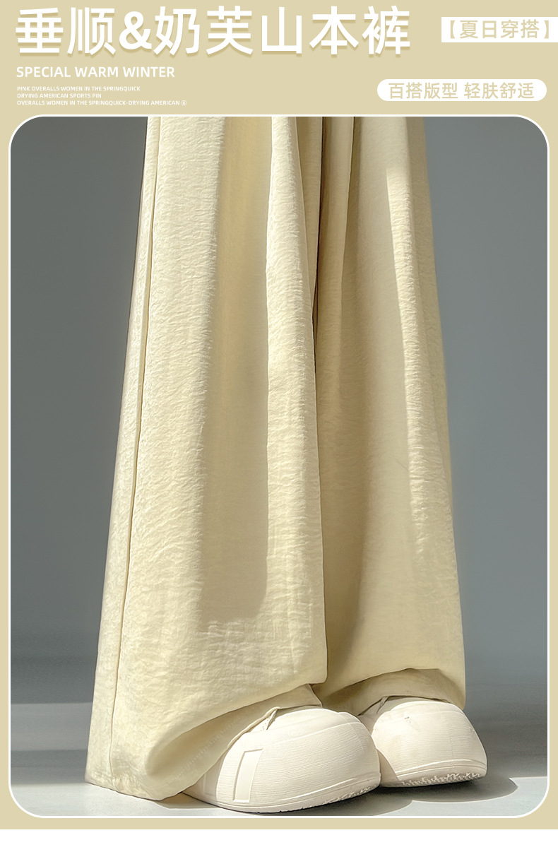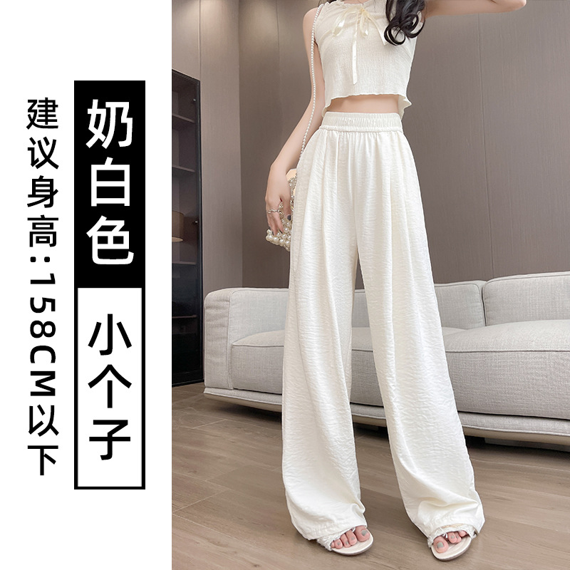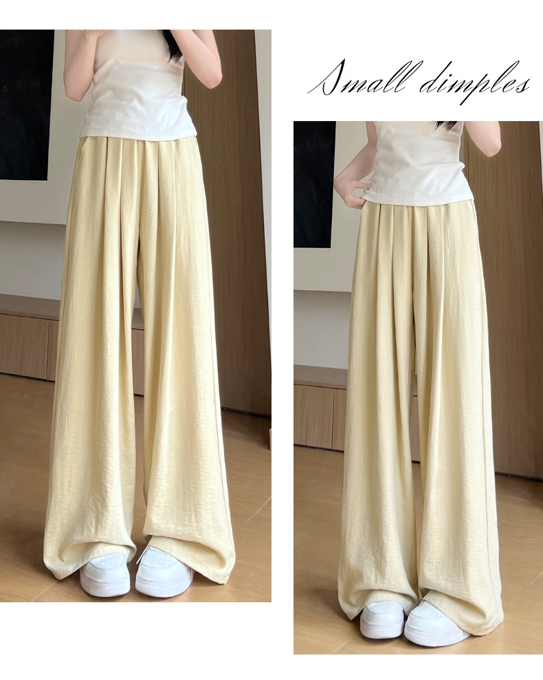 노란 우유 푸 야마모토 바지 여성 여름 2025 새로운 높은 허리 느슨한 복용량 캐주얼 게으른 스타일 아이스 실크 넓은 다리 바지