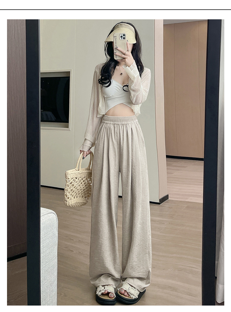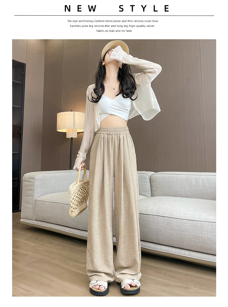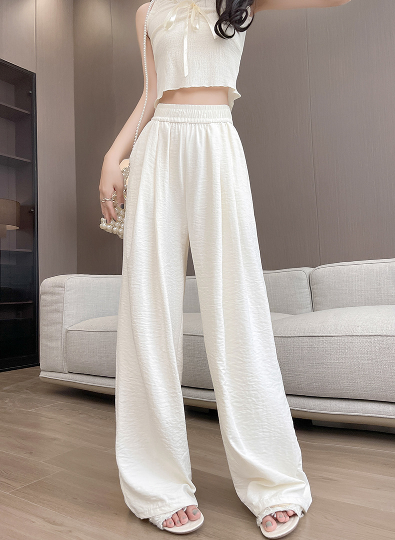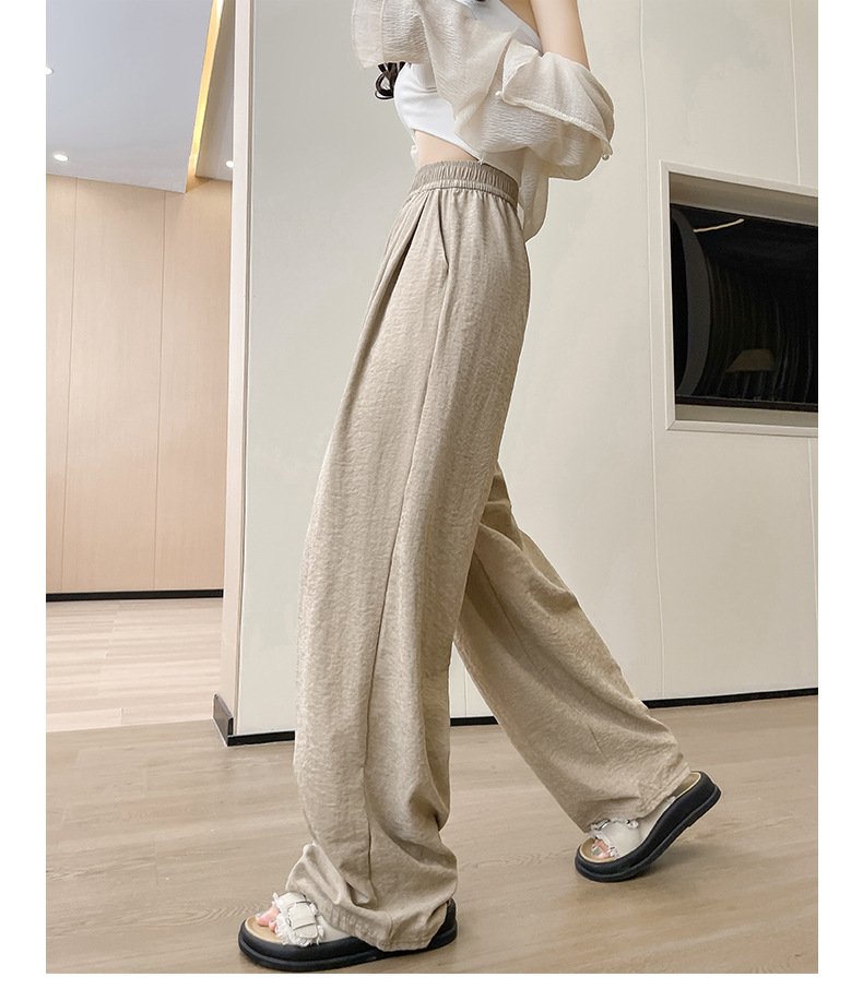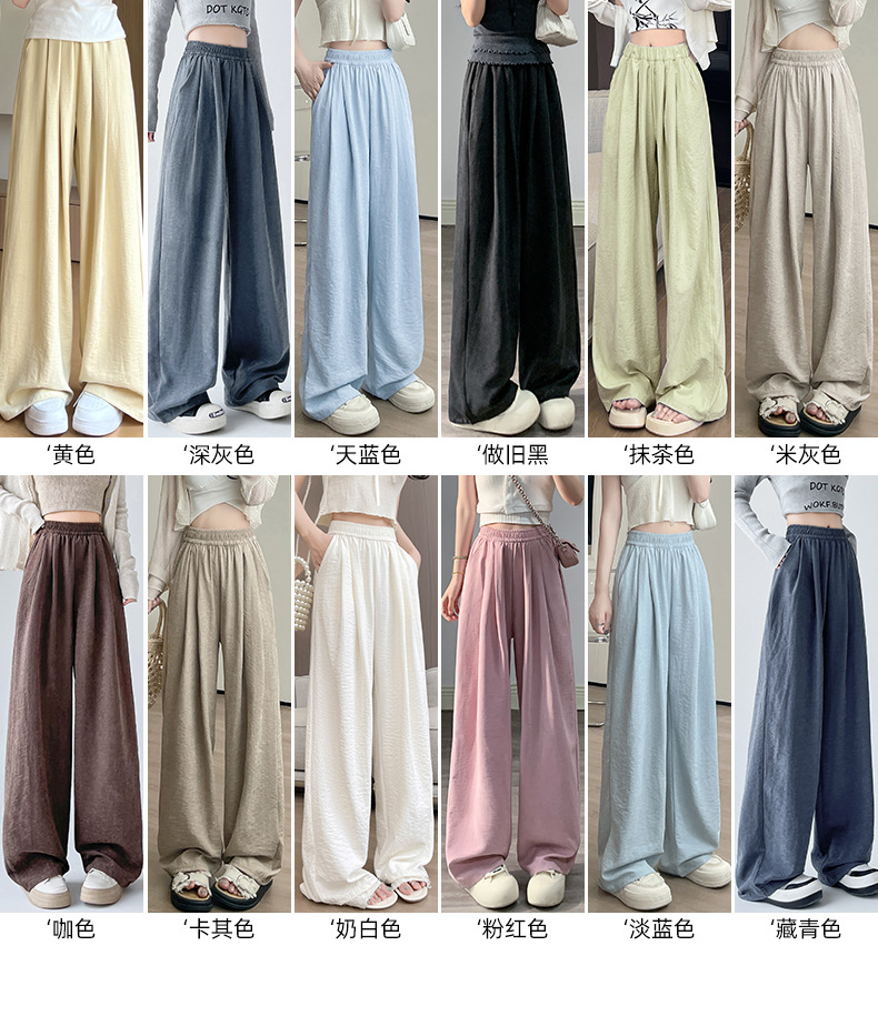 노란 우유 푸 야마모토 바지 여성 여름 2025 새로운 높은 허리 느슨한 복용량 캐주얼 게으른 스타일 아이스 실크 넓은 다리 바지