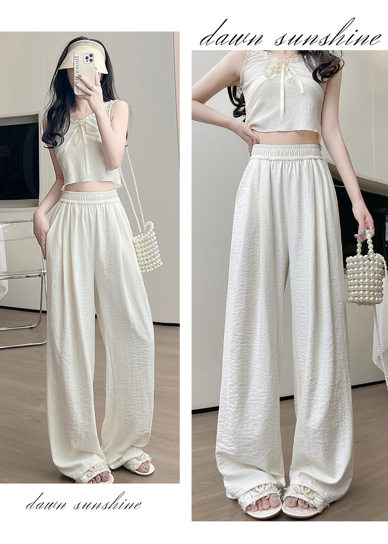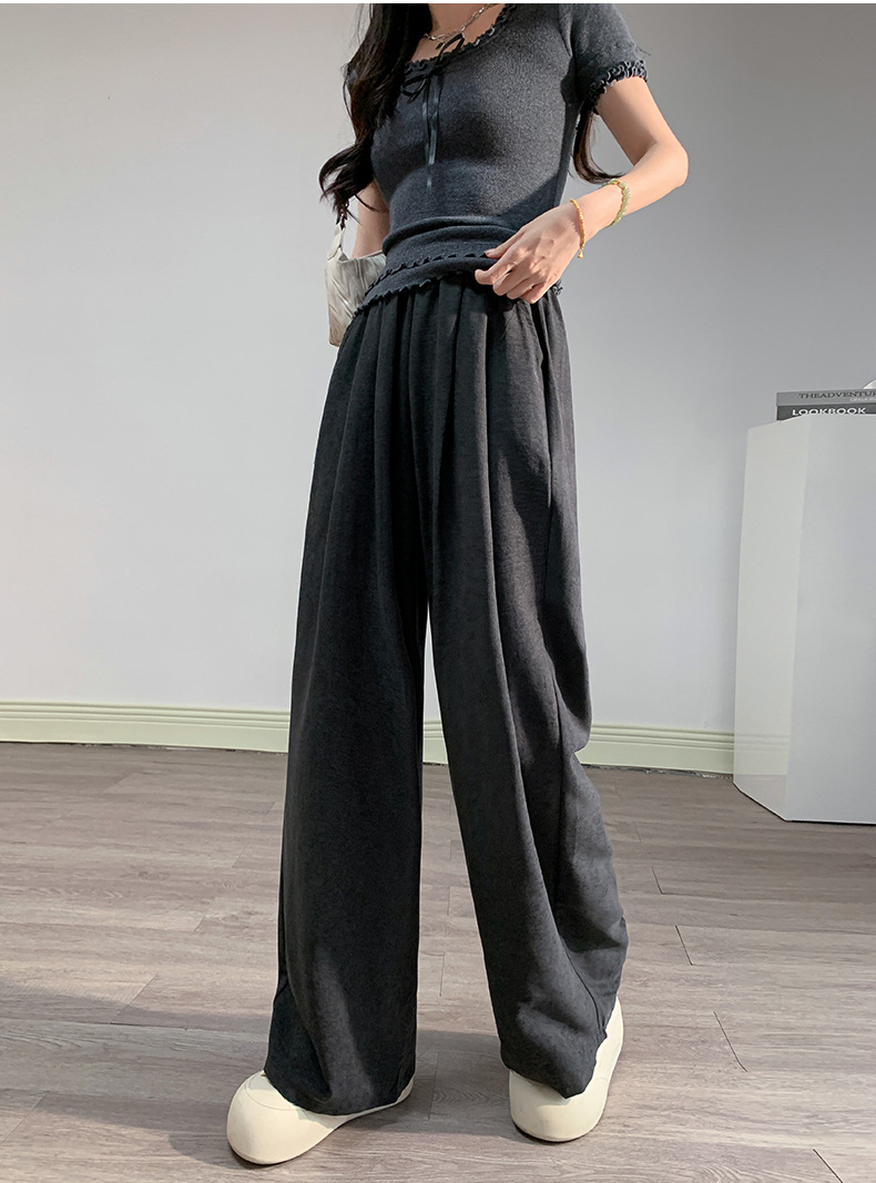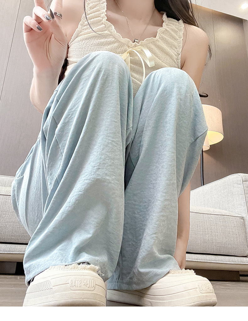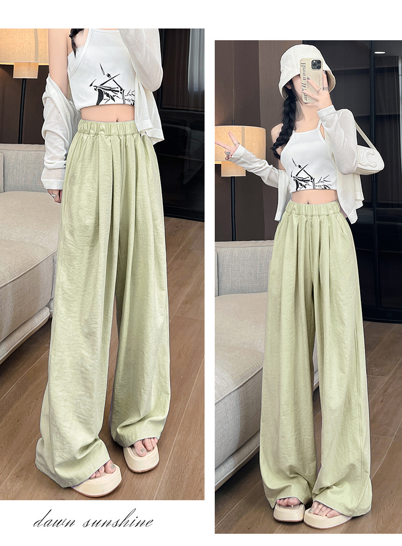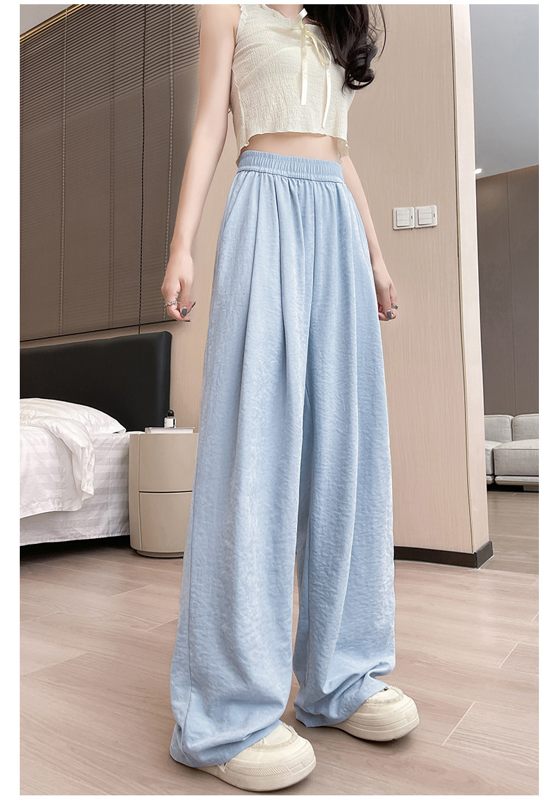 노란 우유 푸 야마모토 바지 여성 여름 2025 새로운 높은 허리 느슨한 복용량 캐주얼 게으른 스타일 아이스 실크 넓은 다리 바지