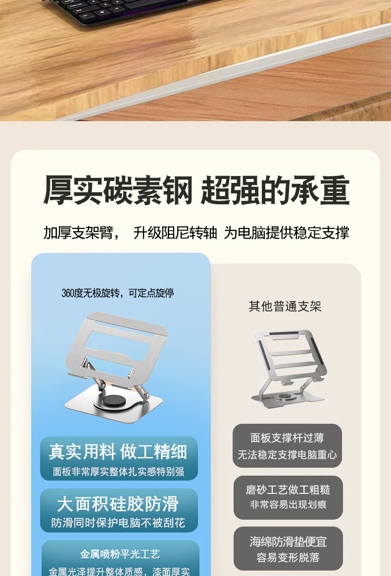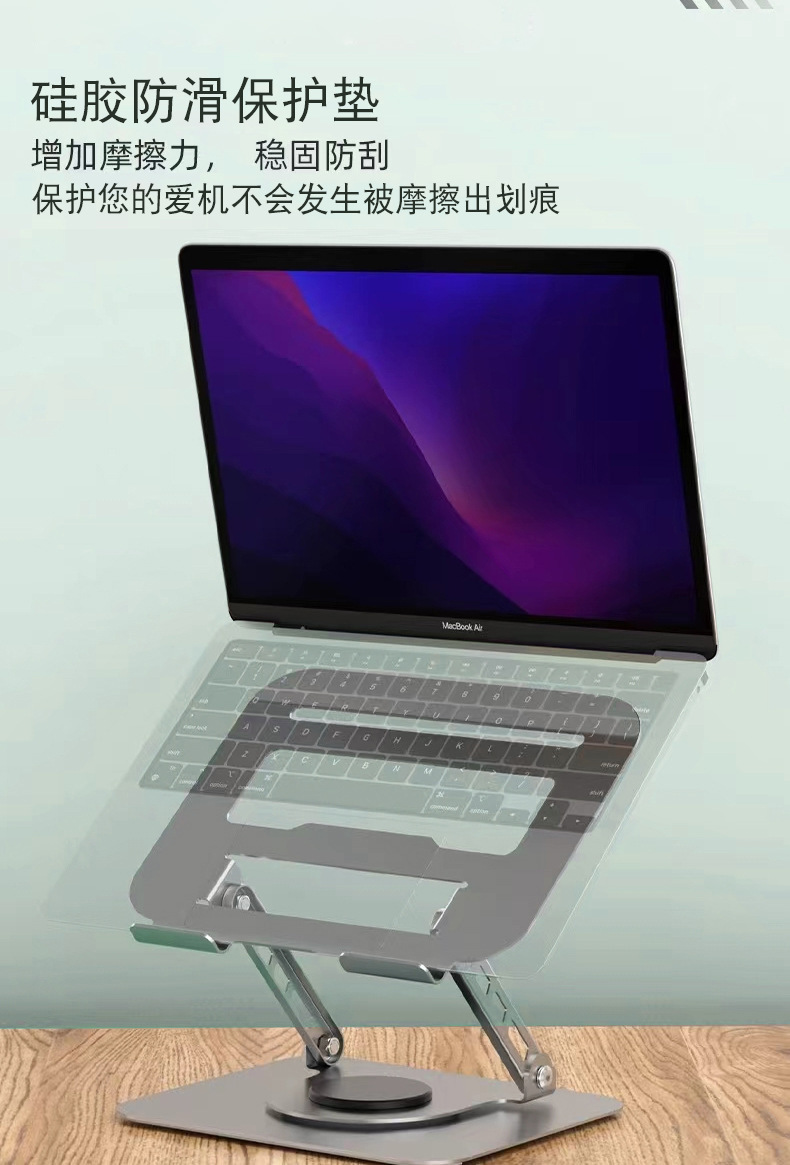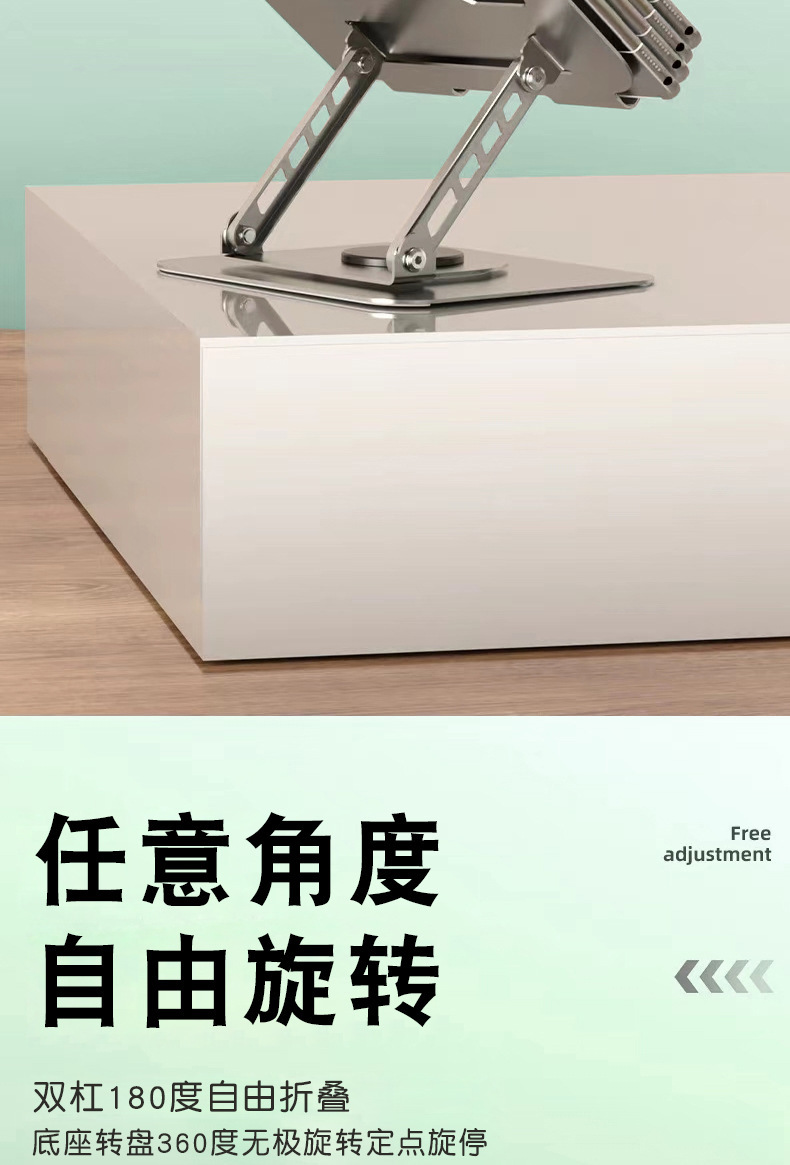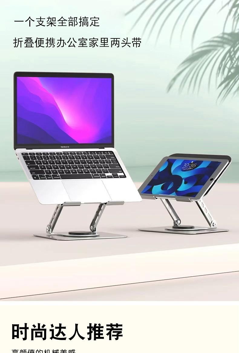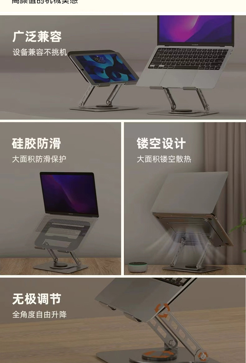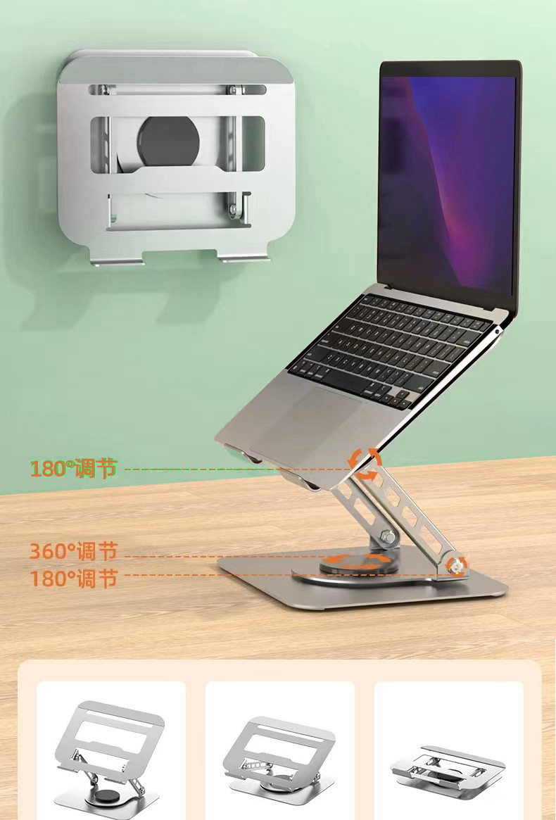 노트북 스탠드 360도 회전 금속 접이식 높이 조절 패드, 태블릿 냉각 및 높이 증가 패드스토어 가기