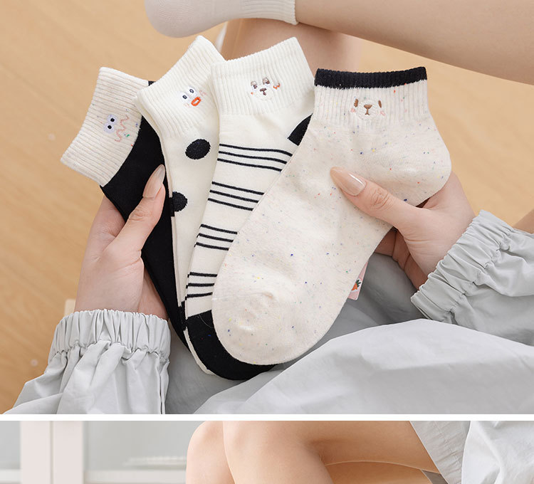 2025 봄 여름 신작 양말 여성 보트 양말 로우 컷 자수 개 한국어 버전 얇은 회색 귀여운 짧은 양말스토어 가기