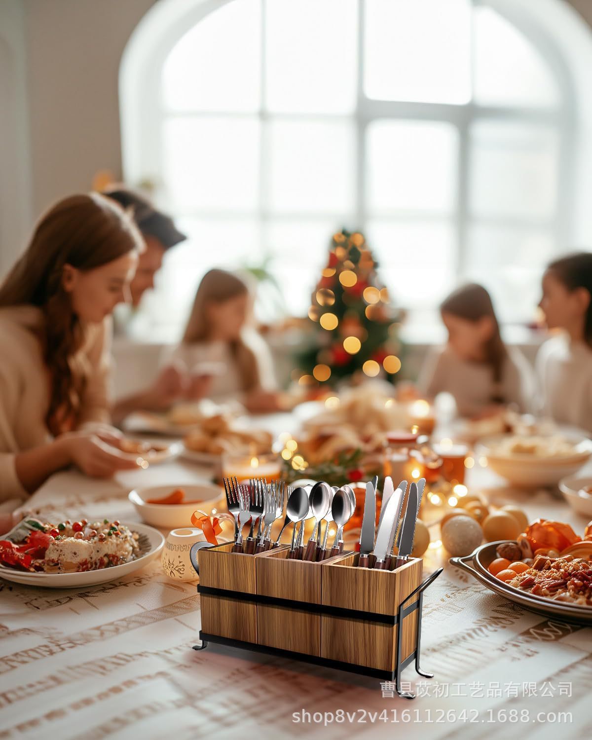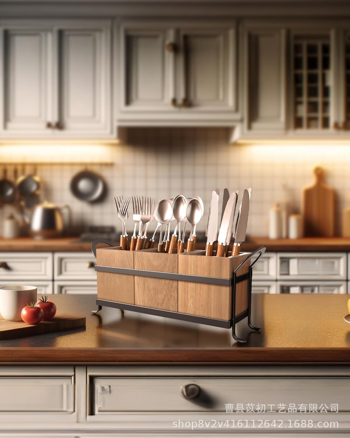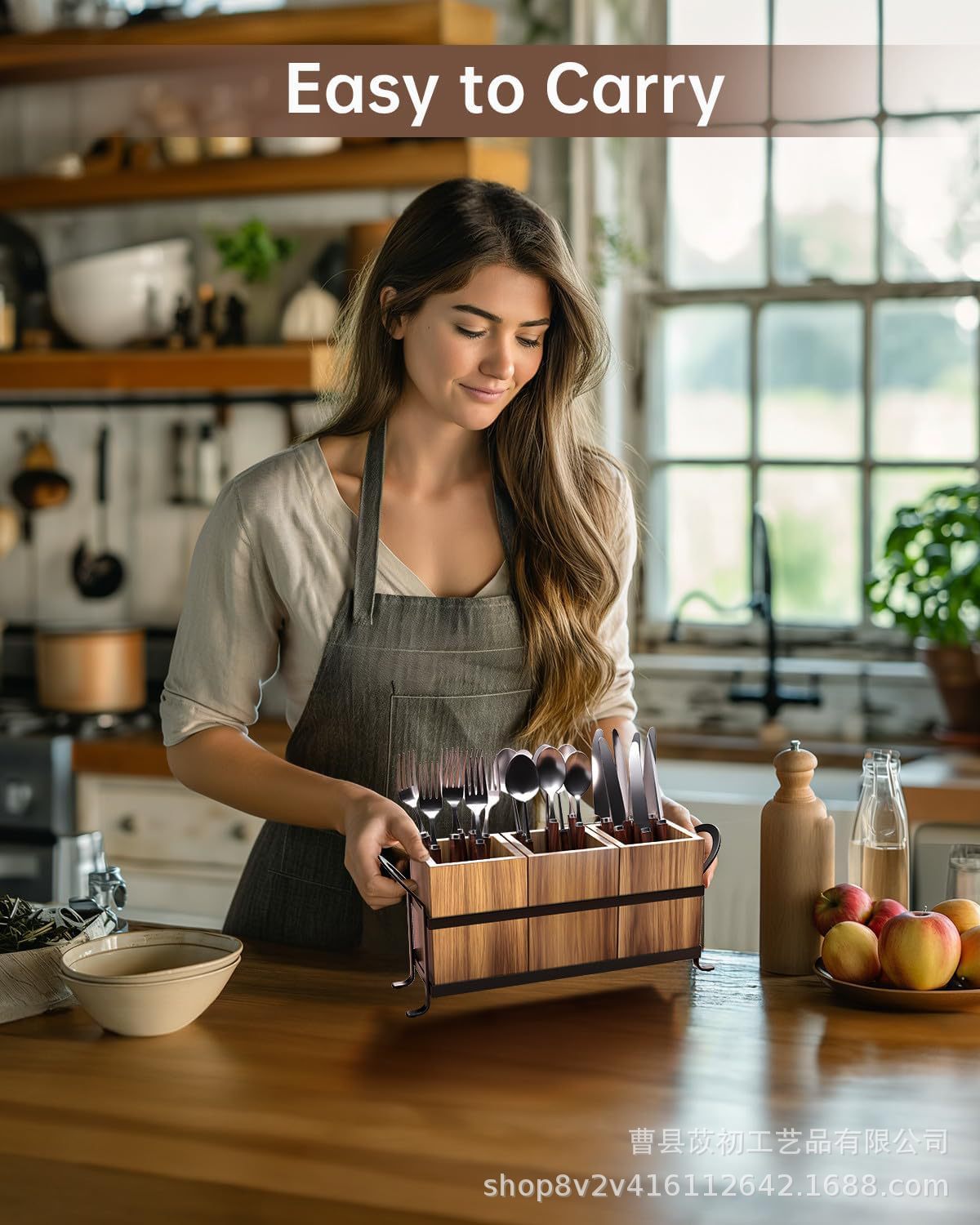 나무 식기 보관 상자 가정용 주방 칼, 포크 및 스푼 멀티 그리드 분류 상자 메이크업 브러쉬 정리 랙