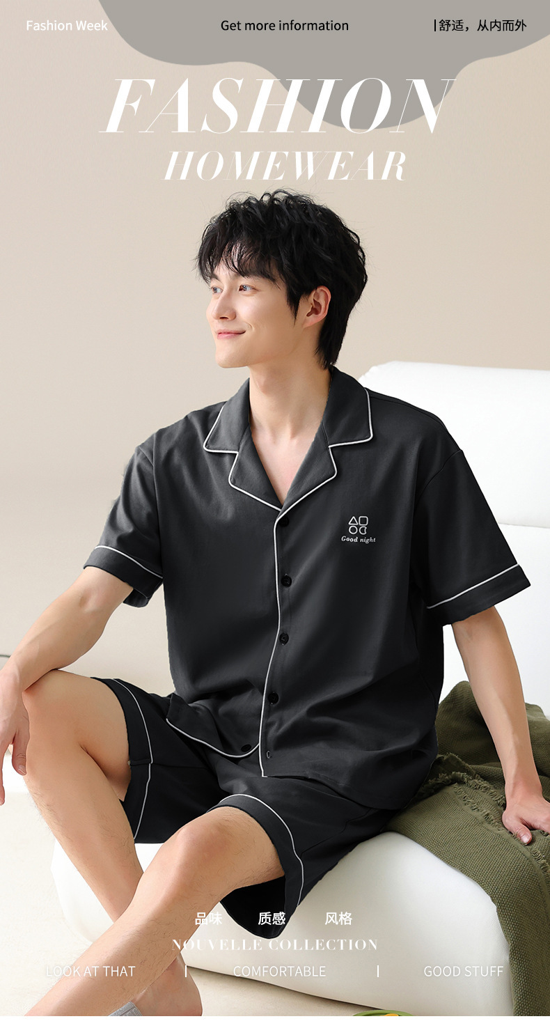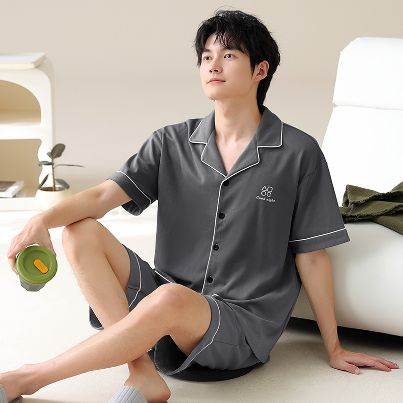 남자 잠옷 남자 여름 순면 반팔 반바지 홈 옷 남자 여름 얇은 올면 플러스 사이즈 투피스 세트스토어 가기