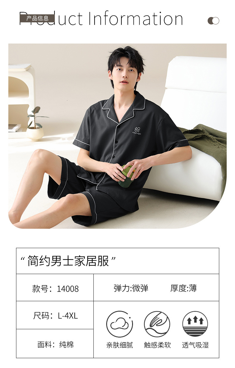 남자 잠옷 남자 여름 순면 반팔 반바지 홈 옷 남자 여름 얇은 올면 플러스 사이즈 투피스 세트