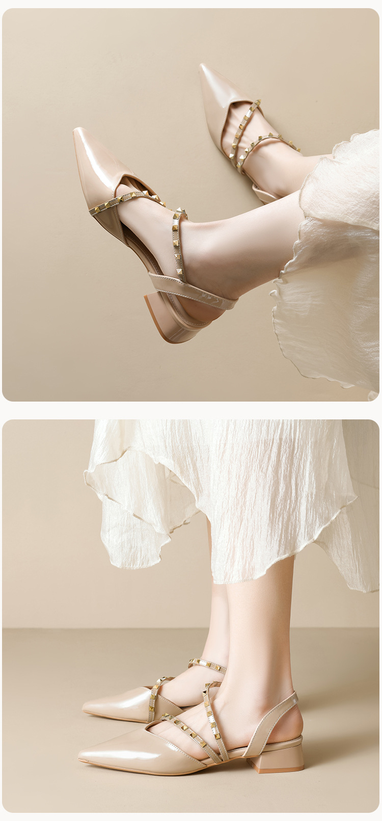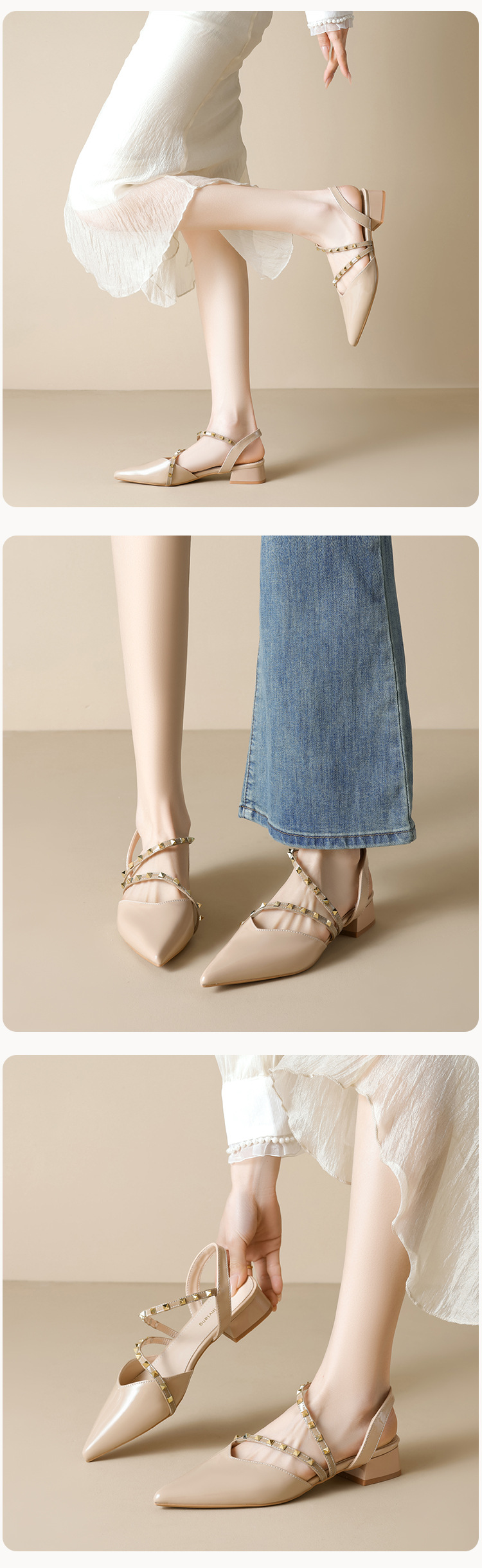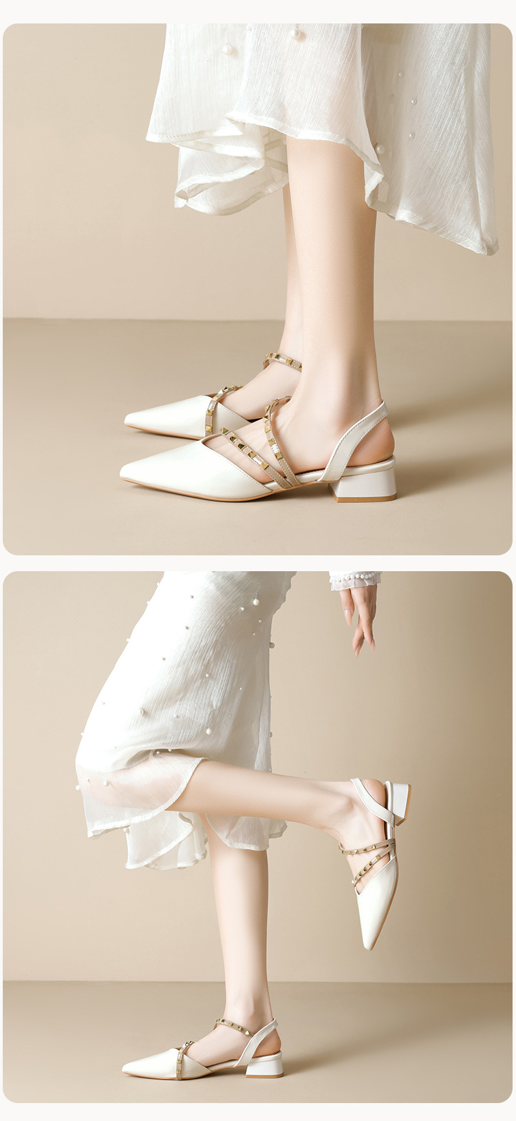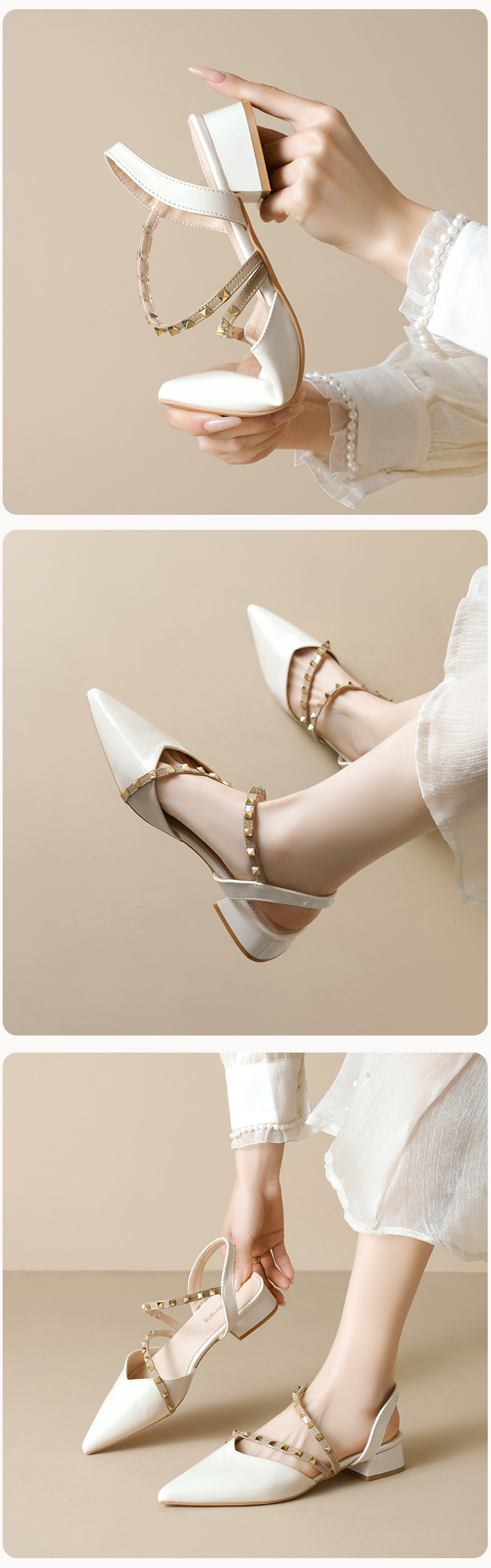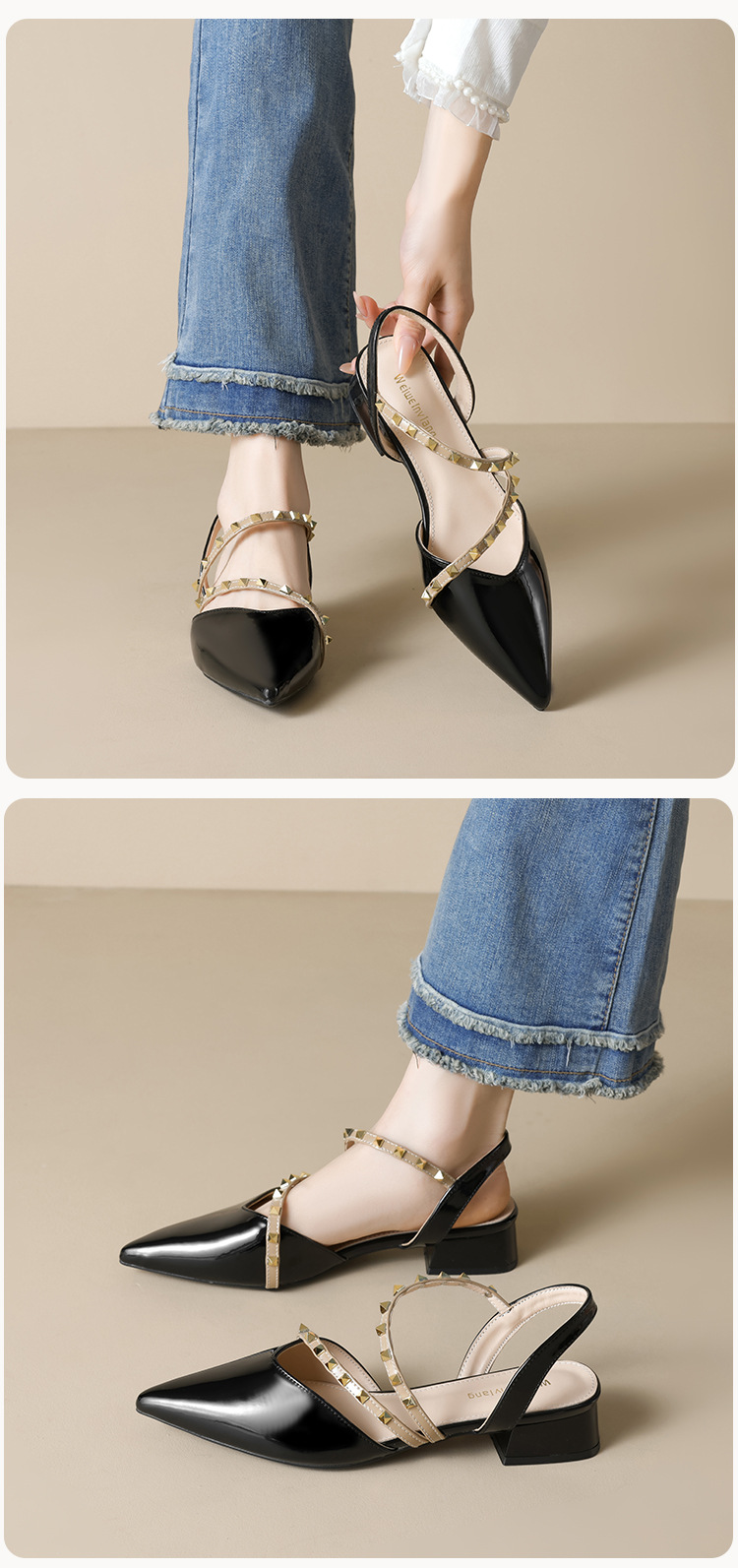 Wei Wei girl 6163-리벳으로 덮인 발가락 샌들 여성 여름 누드 두꺼운 뒤꿈치 빈 뾰족한 신발