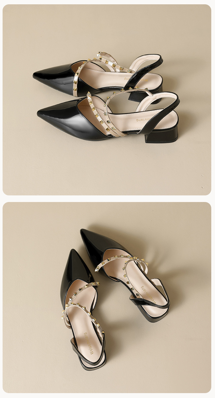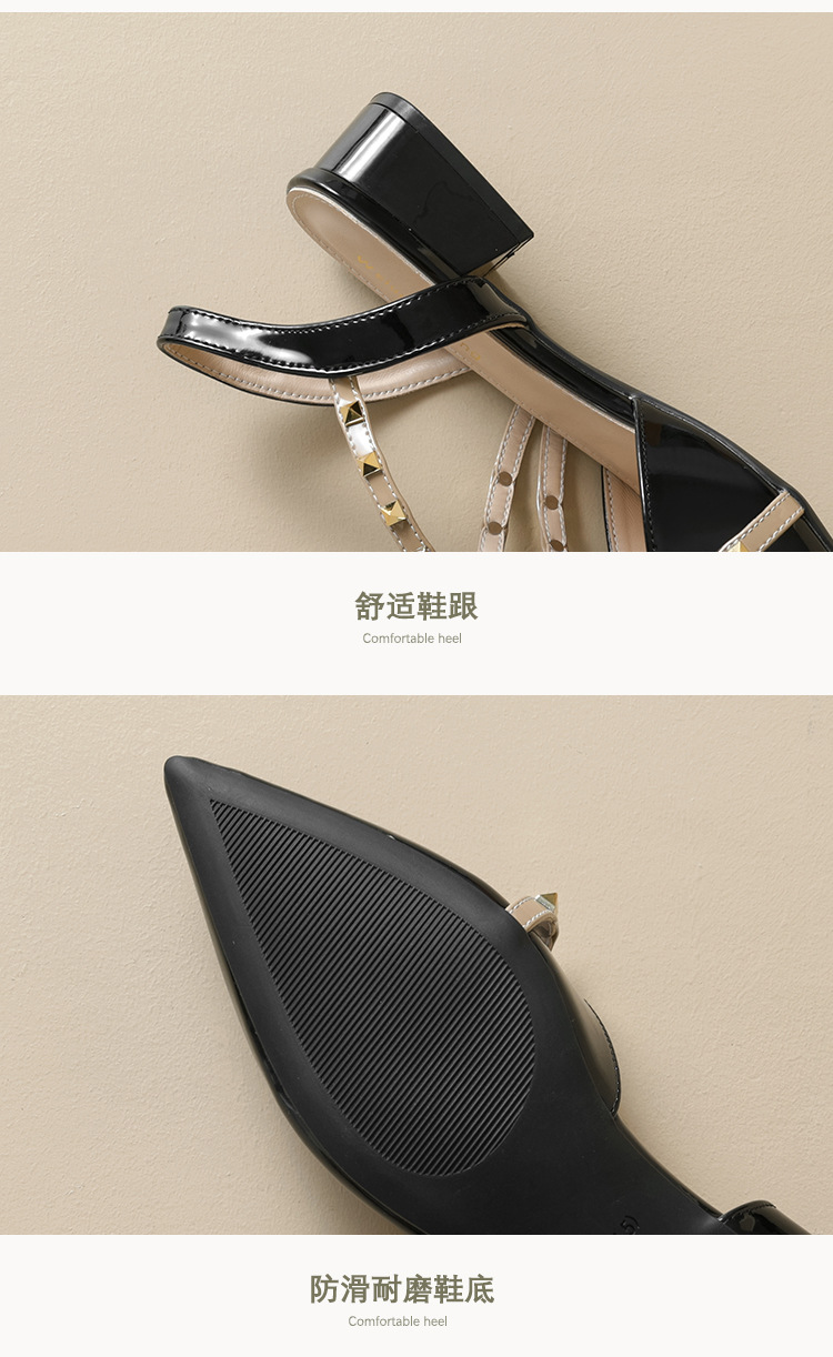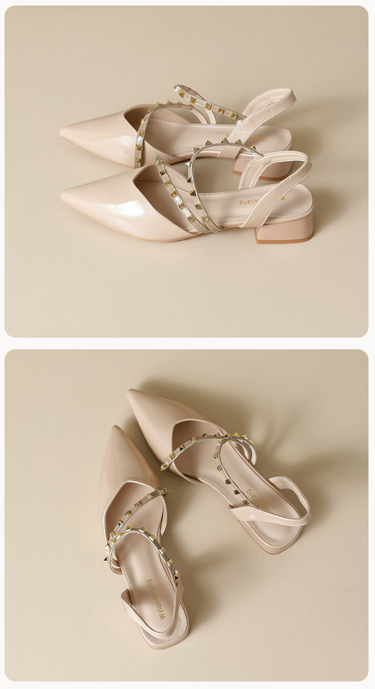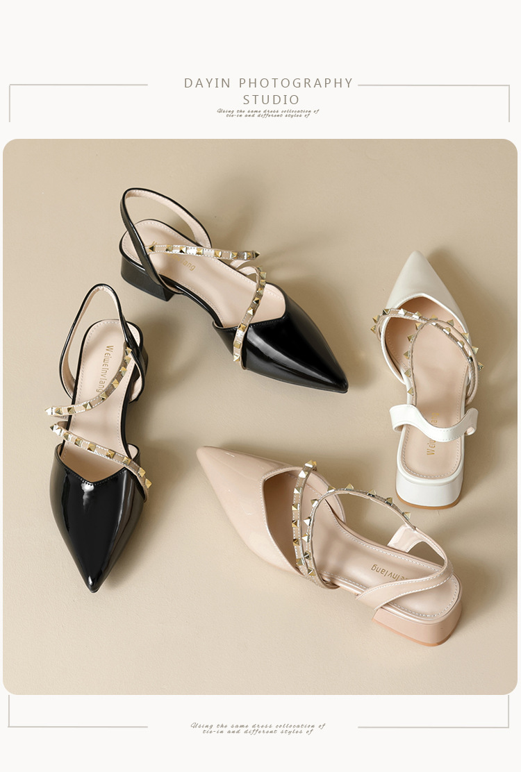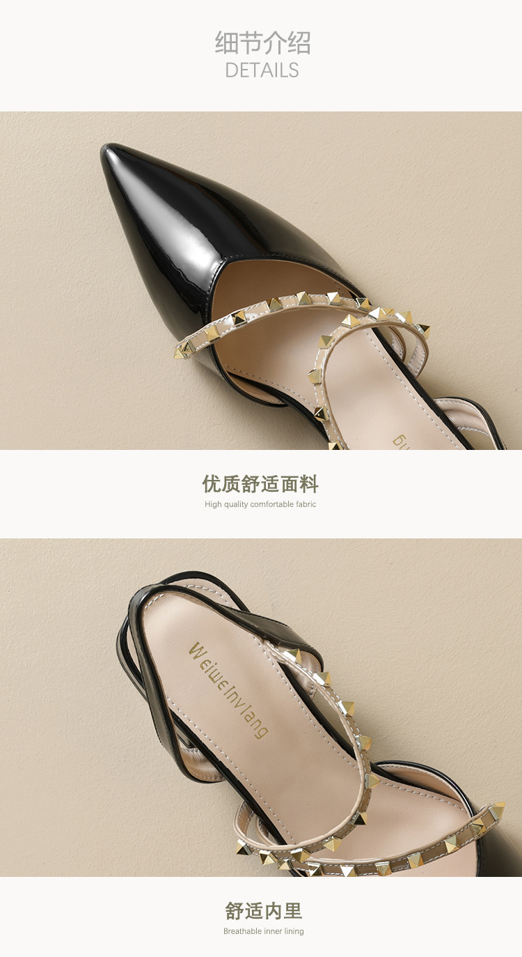 Wei Wei girl 6163-리벳으로 덮인 발가락 샌들 여성 여름 누드 두꺼운 뒤꿈치 빈 뾰족한 신발스토어 가기