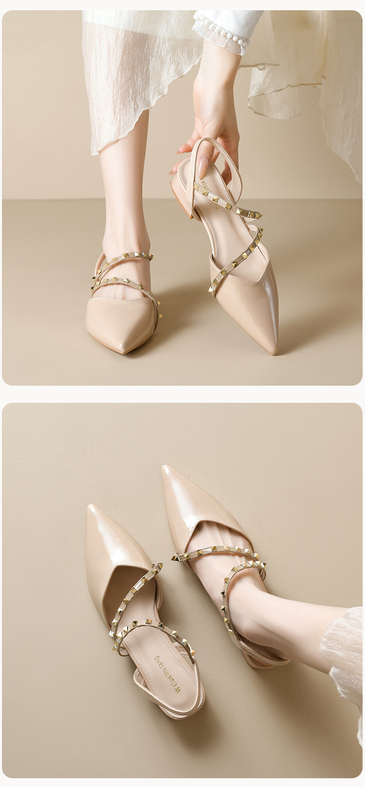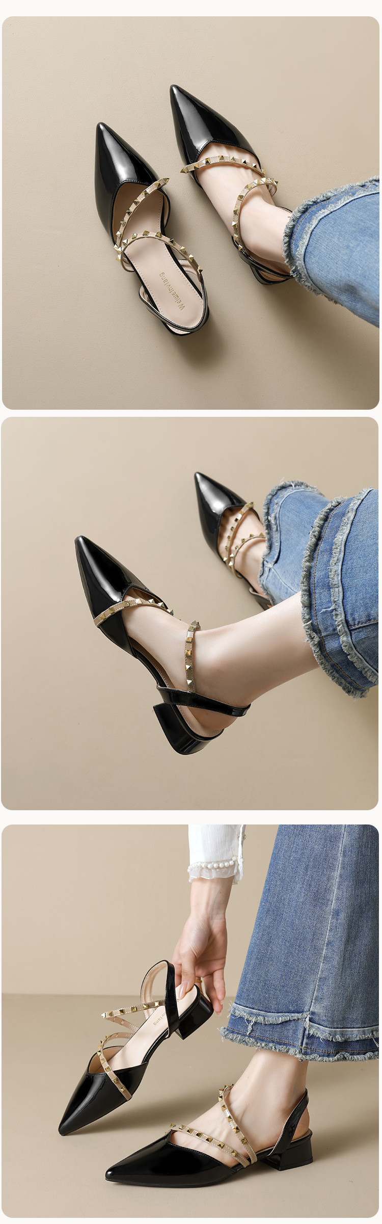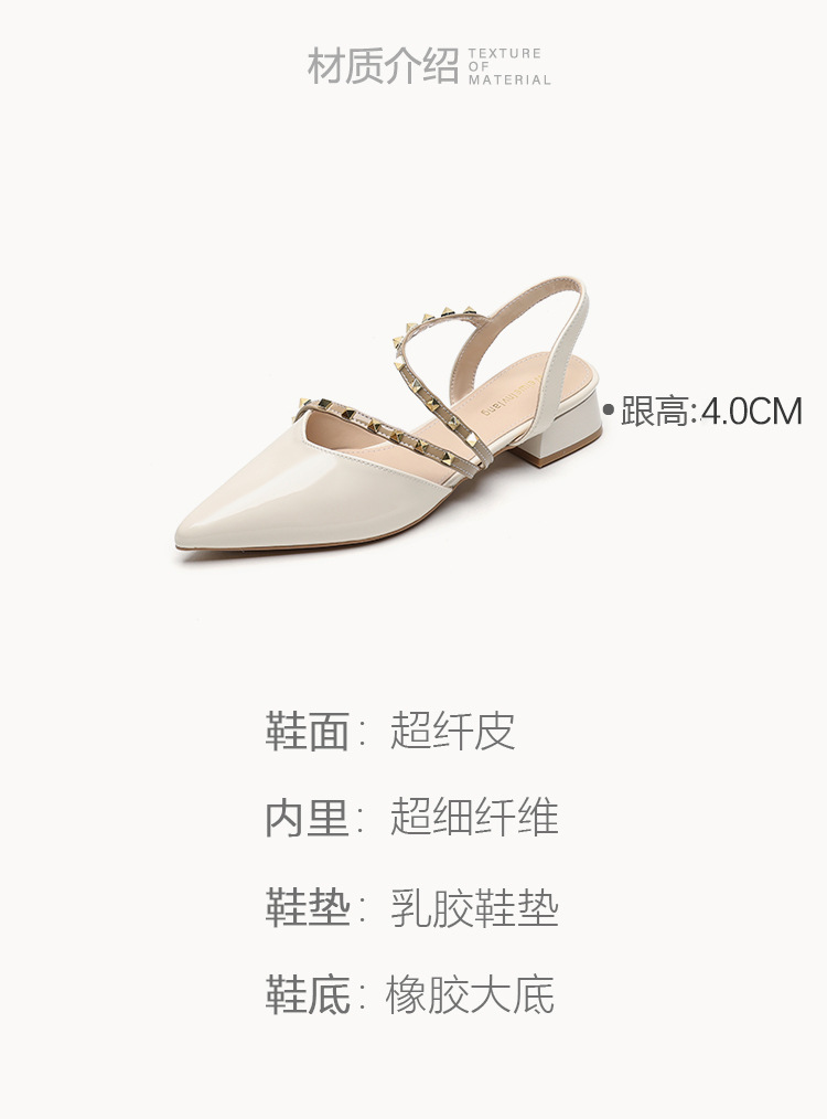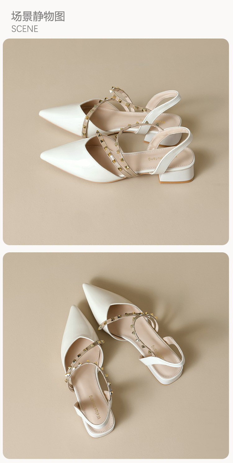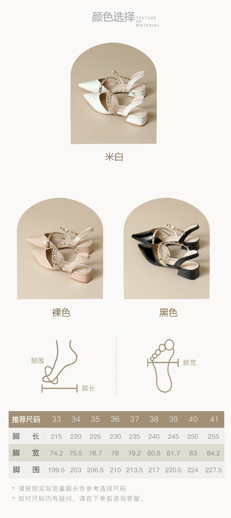 Wei Wei girl 6163-리벳으로 덮인 발가락 샌들 여성 여름 누드 두꺼운 뒤꿈치 빈 뾰족한 신발스토어 가기