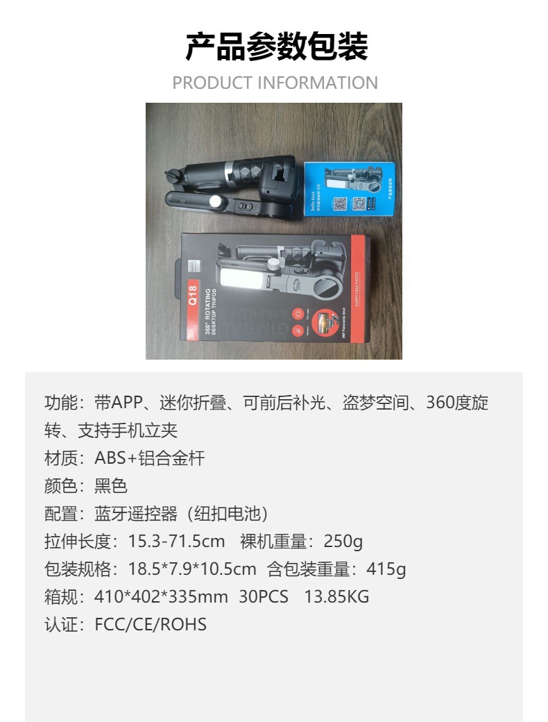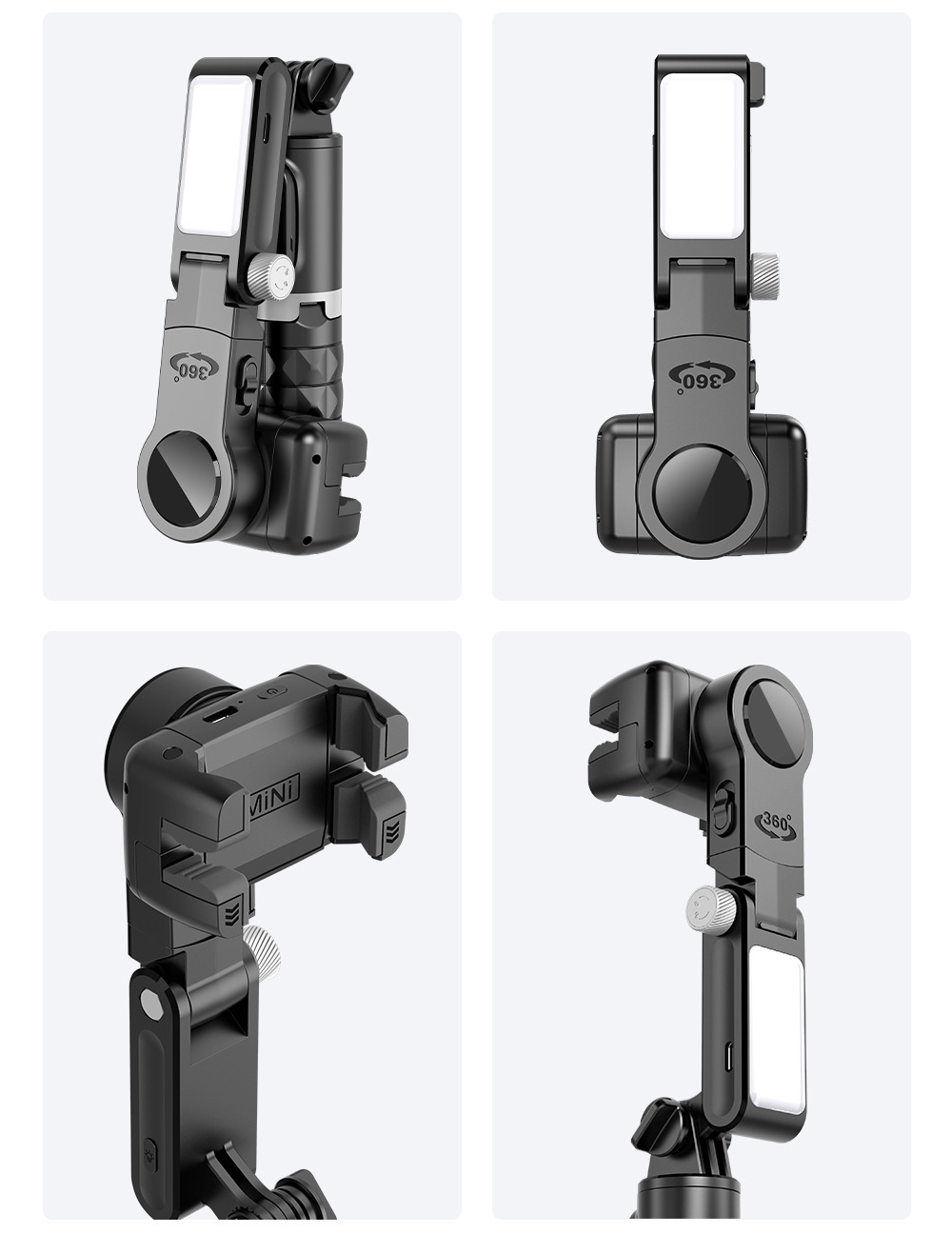 • 블랙 [Q18 디럭스 에디션] 3축 안정 장치 + 앱 포함 + 얼굴 추적 + 자체 조명 포함