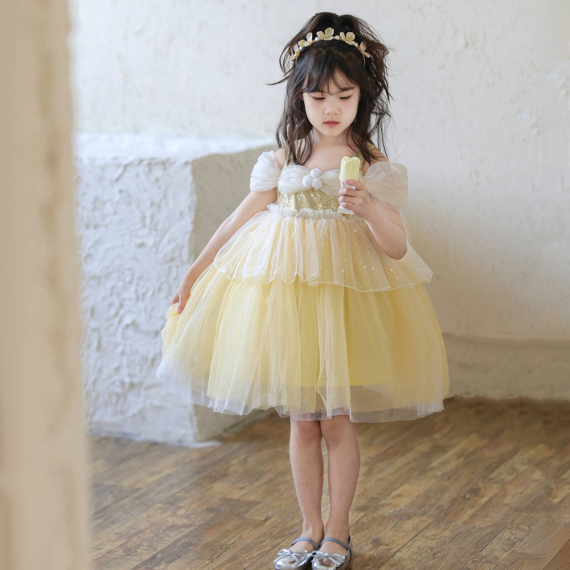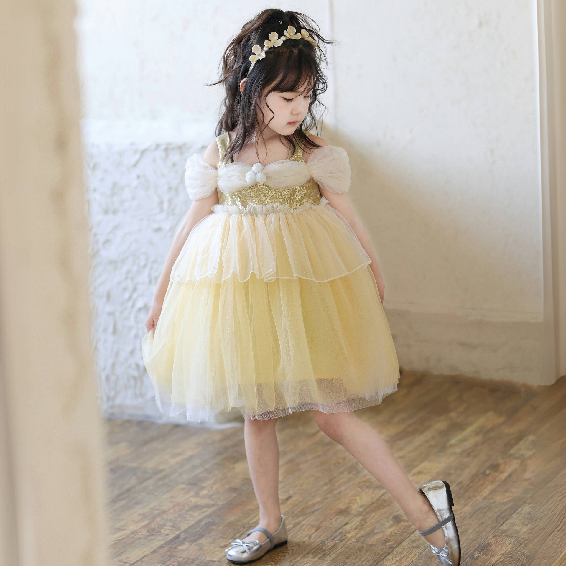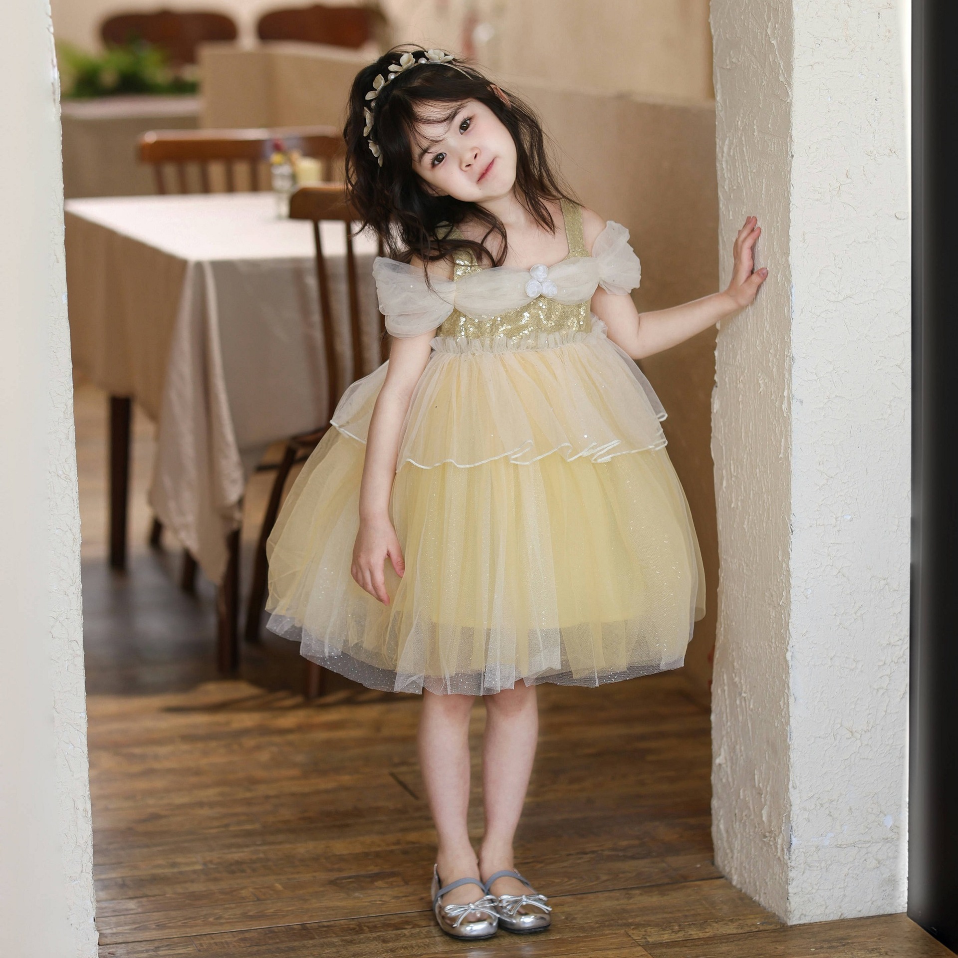 여자 벨 공주 치마 슬링 스트랩 스커트 2025 아기 소녀 반짝이 스퀸 메쉬 스커트 원피스 생일 치마스토어 가기