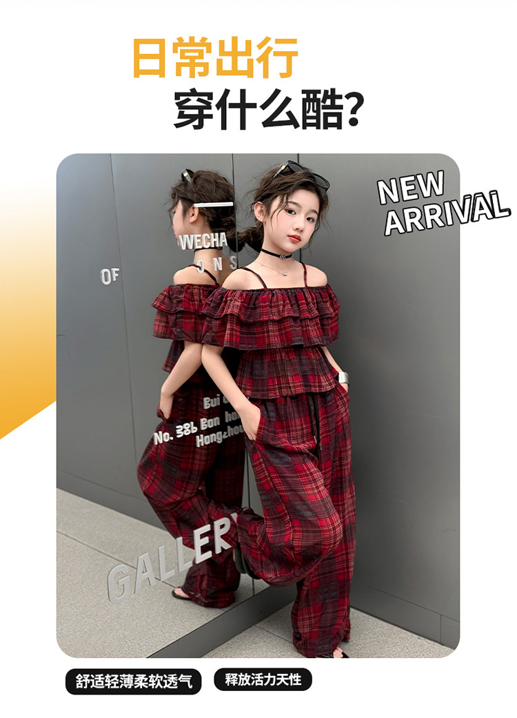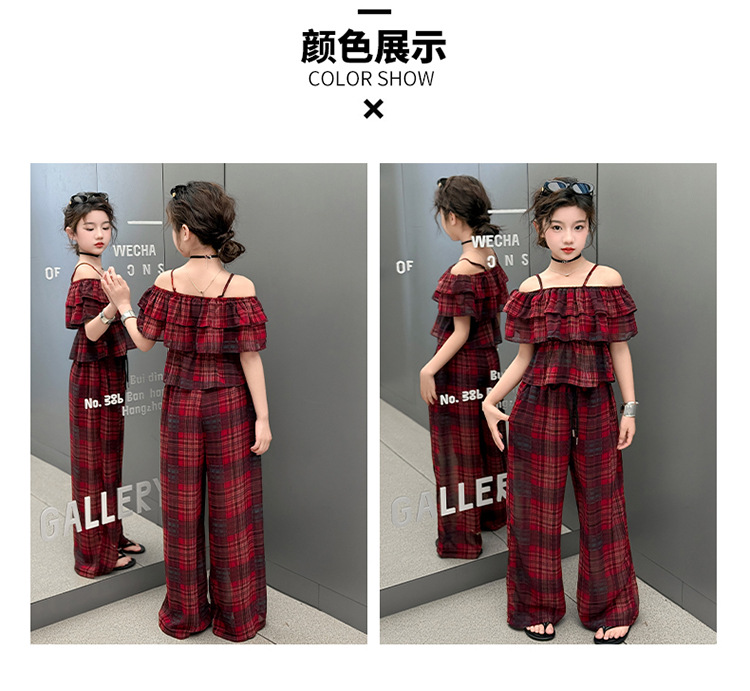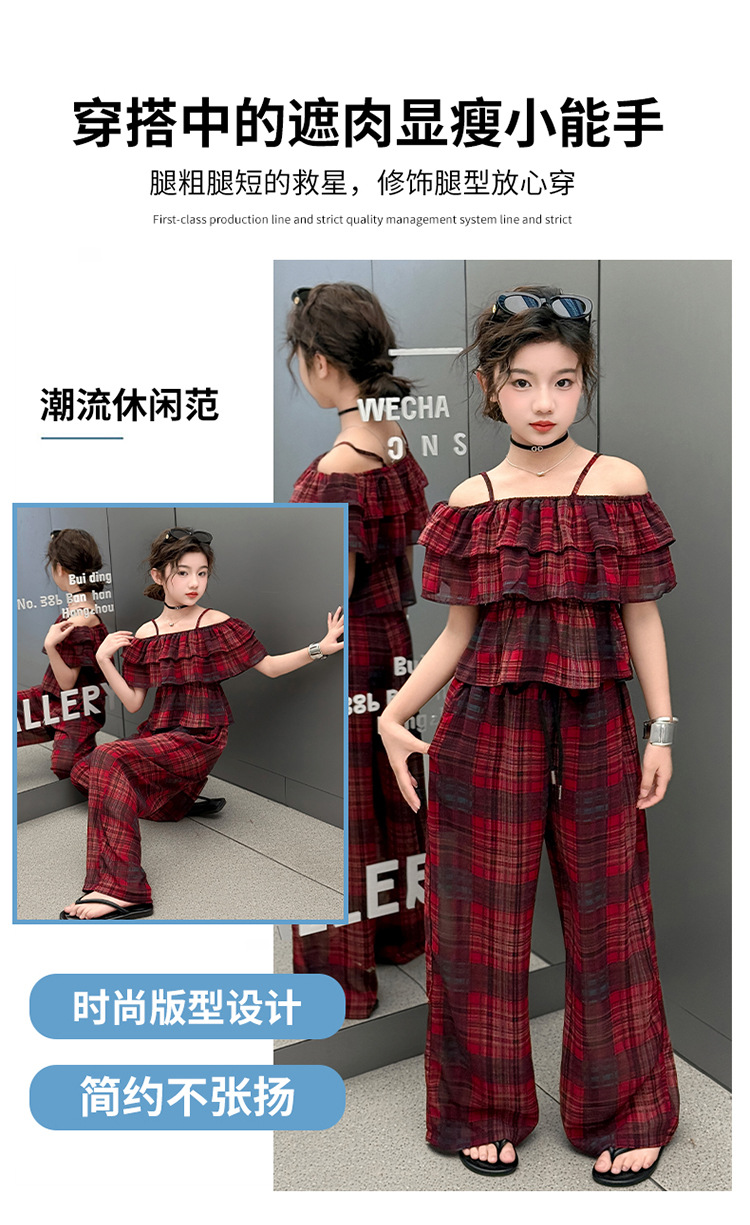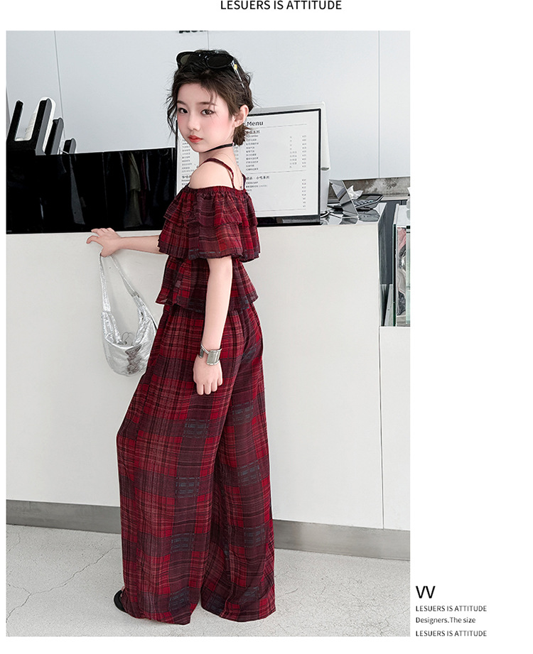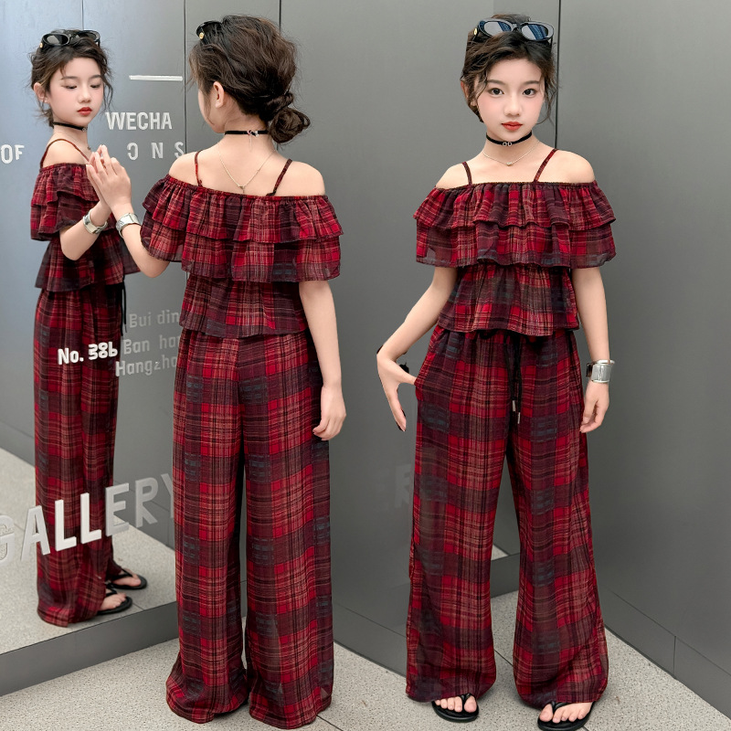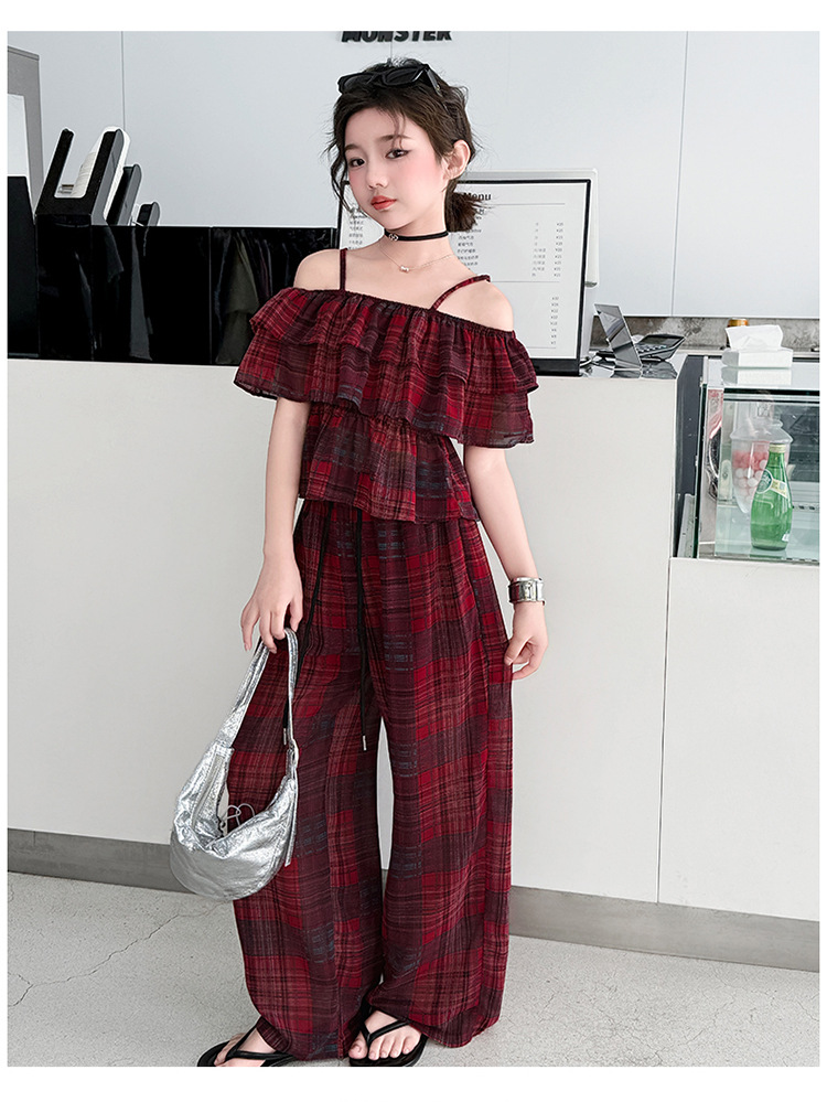 여자 쉬폰 홍콩 스타일 정장 2025 여름 원 숄더 반팔 탑 신축성있는 허리 바지 투피스 트렌디 세트스토어 가기