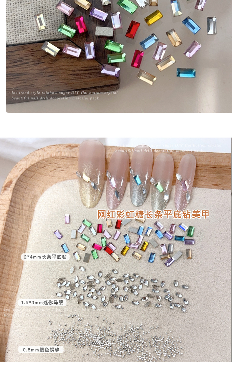 레인보우 슈가 프렌치 핑거 팁 작은 스퀘어 슈가 네일 아트 쥬얼리 소재 그물 레드 아이스 침투 고양이 눈 비스듬한 가장자리스토어 가기