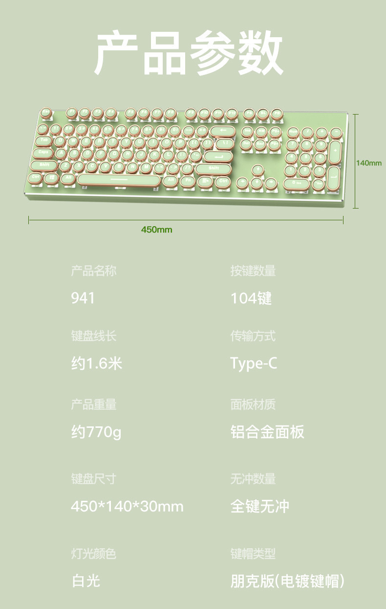크로스보더 K941 레트로 노브 유선 무선 블루투스 기계식 키보드 플러그인 그린축 e스포츠 게임 오피스 방수스토어 가기