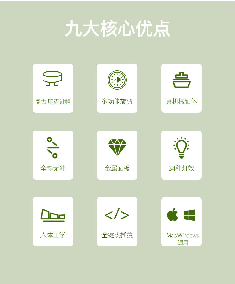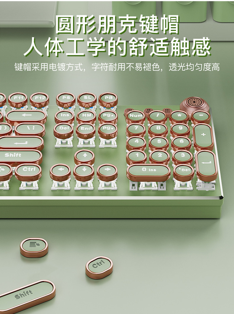 크로스보더 K941 레트로 노브 유선 무선 블루투스 기계식 키보드 플러그인 그린축 e스포츠 게임 오피스 방수