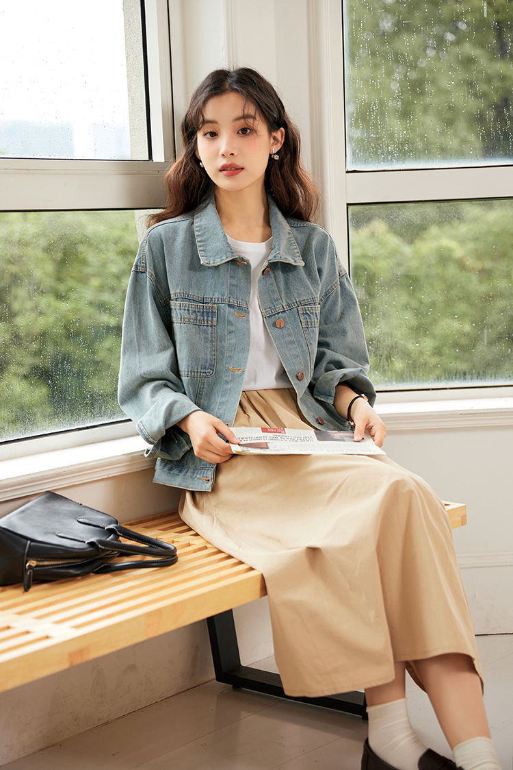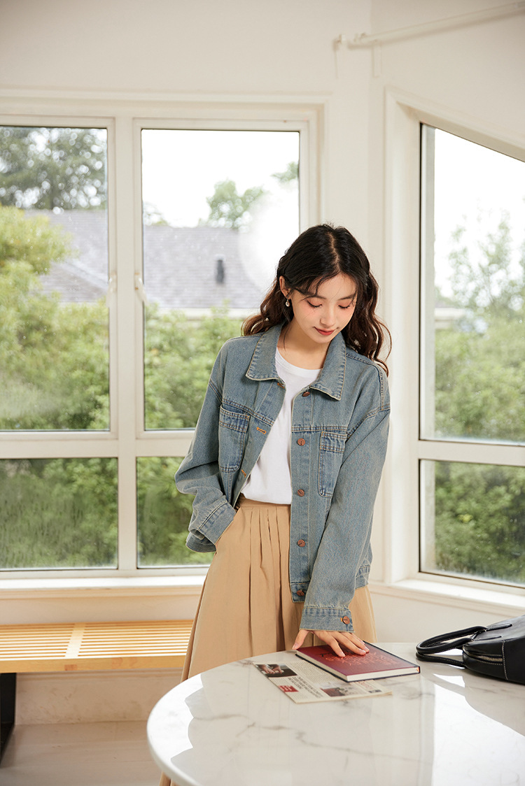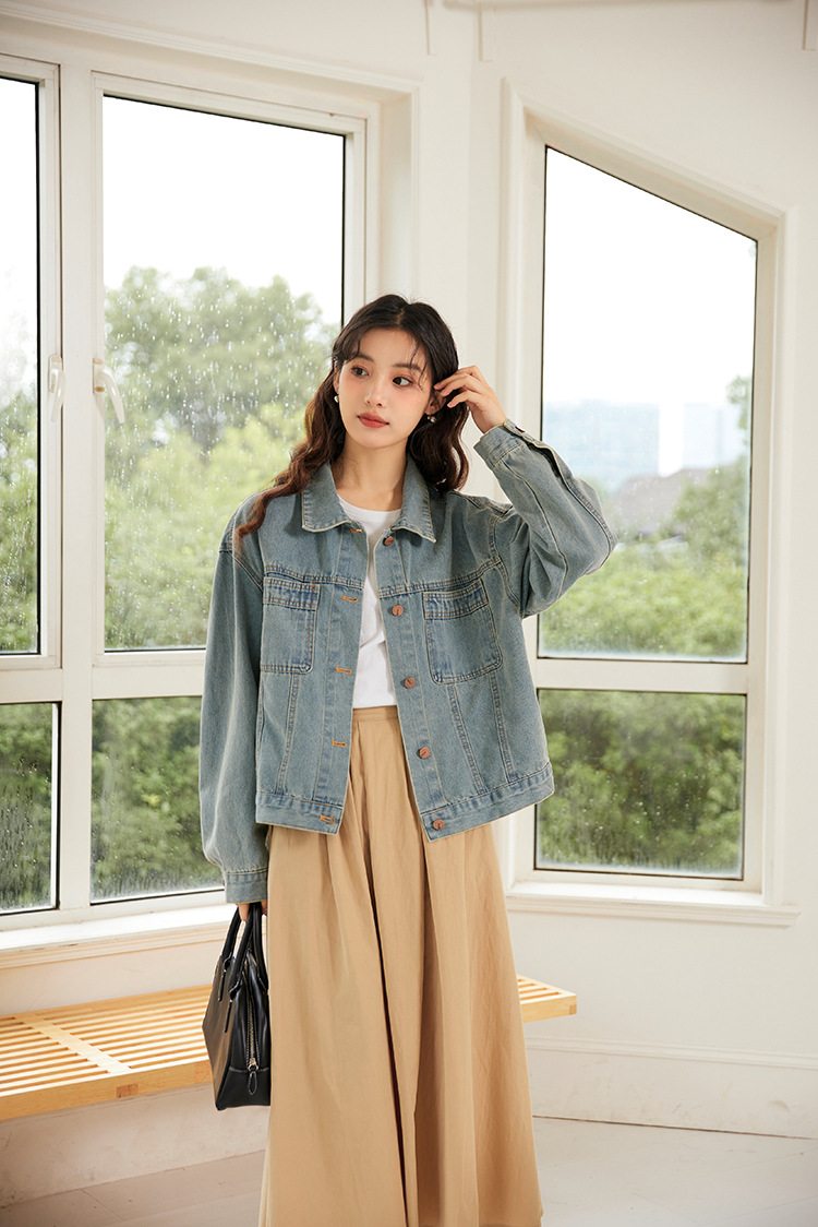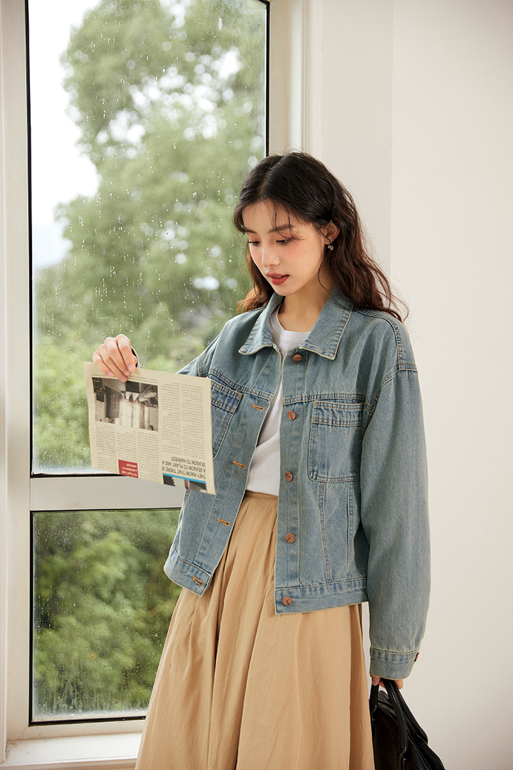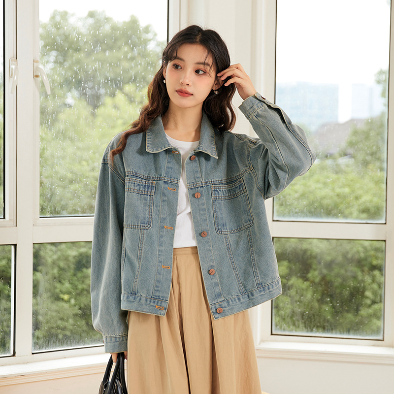 여성을위한 복고풍 홍콩 스타일 캐주얼 작은 데님 재킷 봄, 가을 짧은 느슨한 BF 스타일 틈새 스타일 재킷 탑스토어 가기