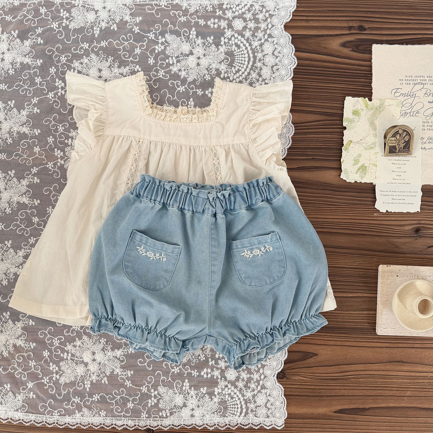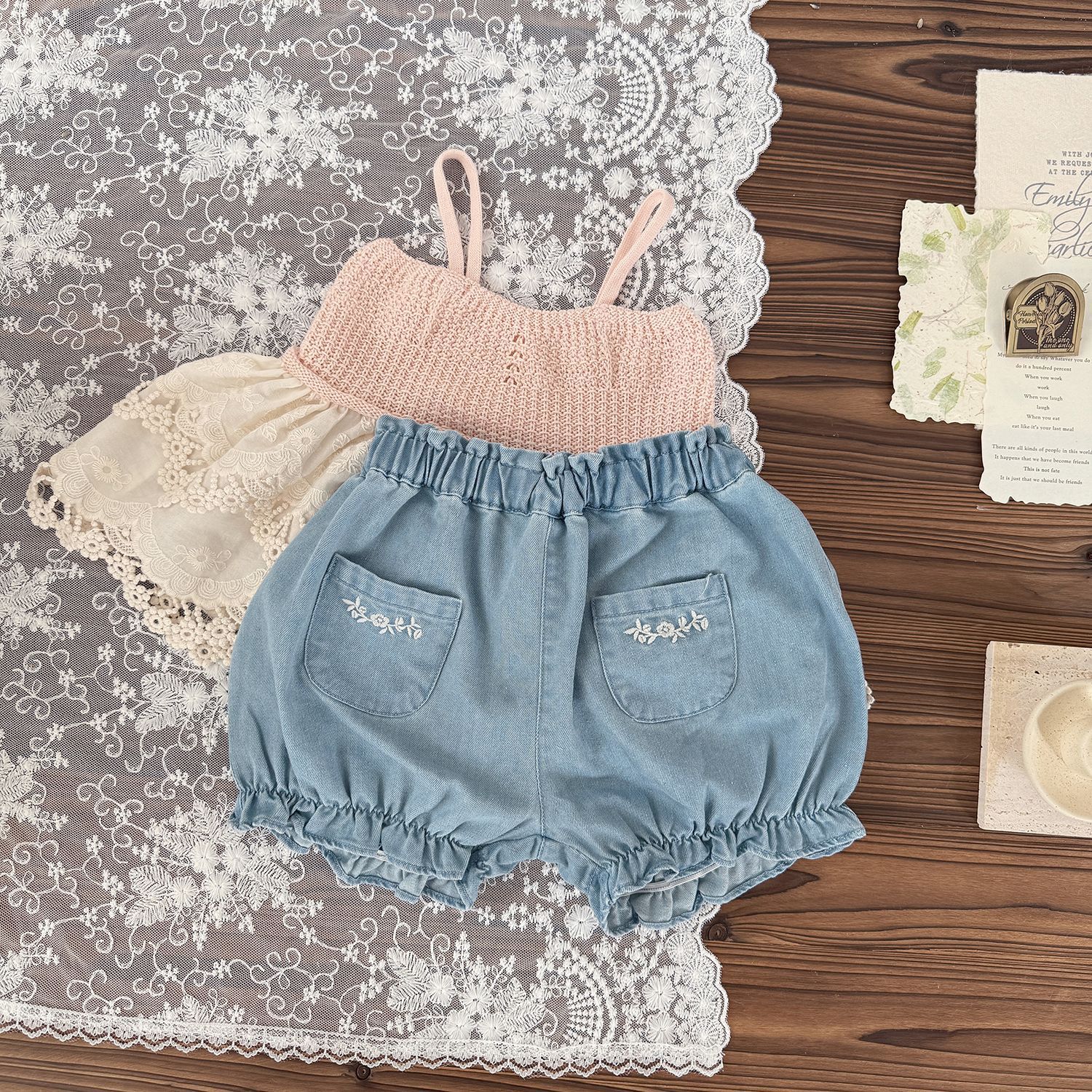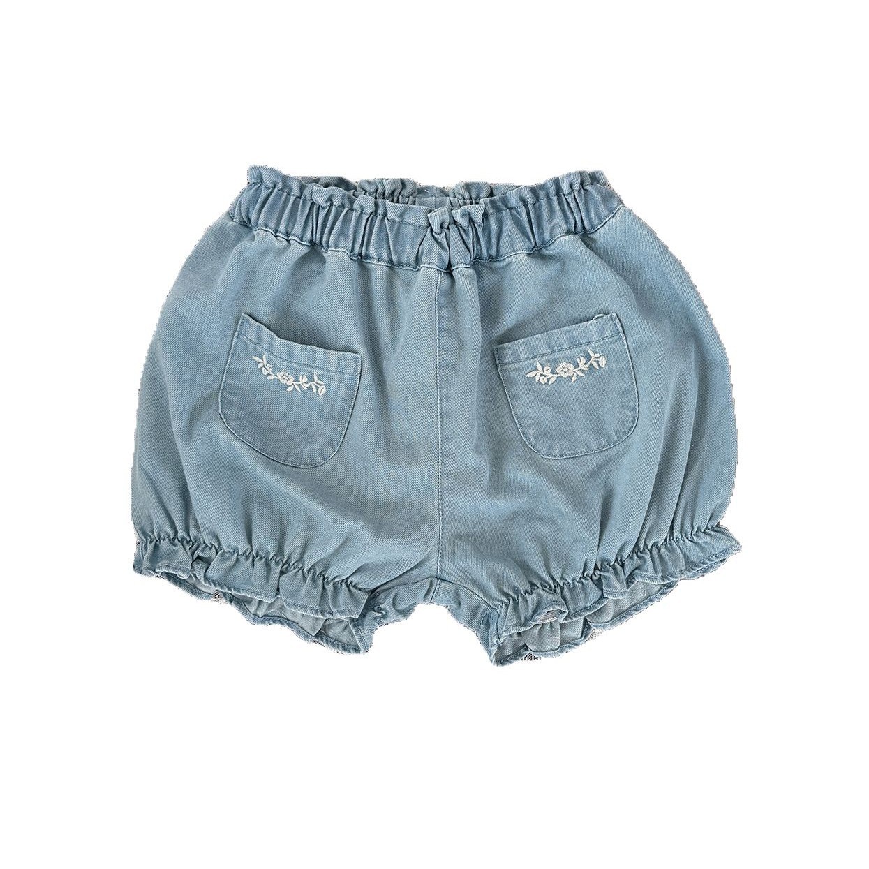 Cutemily 여름 아기 소녀의 면화 반바지 아기 소녀의 얇은 자수 연꽃 잎 데님 PP 호박 반바지
