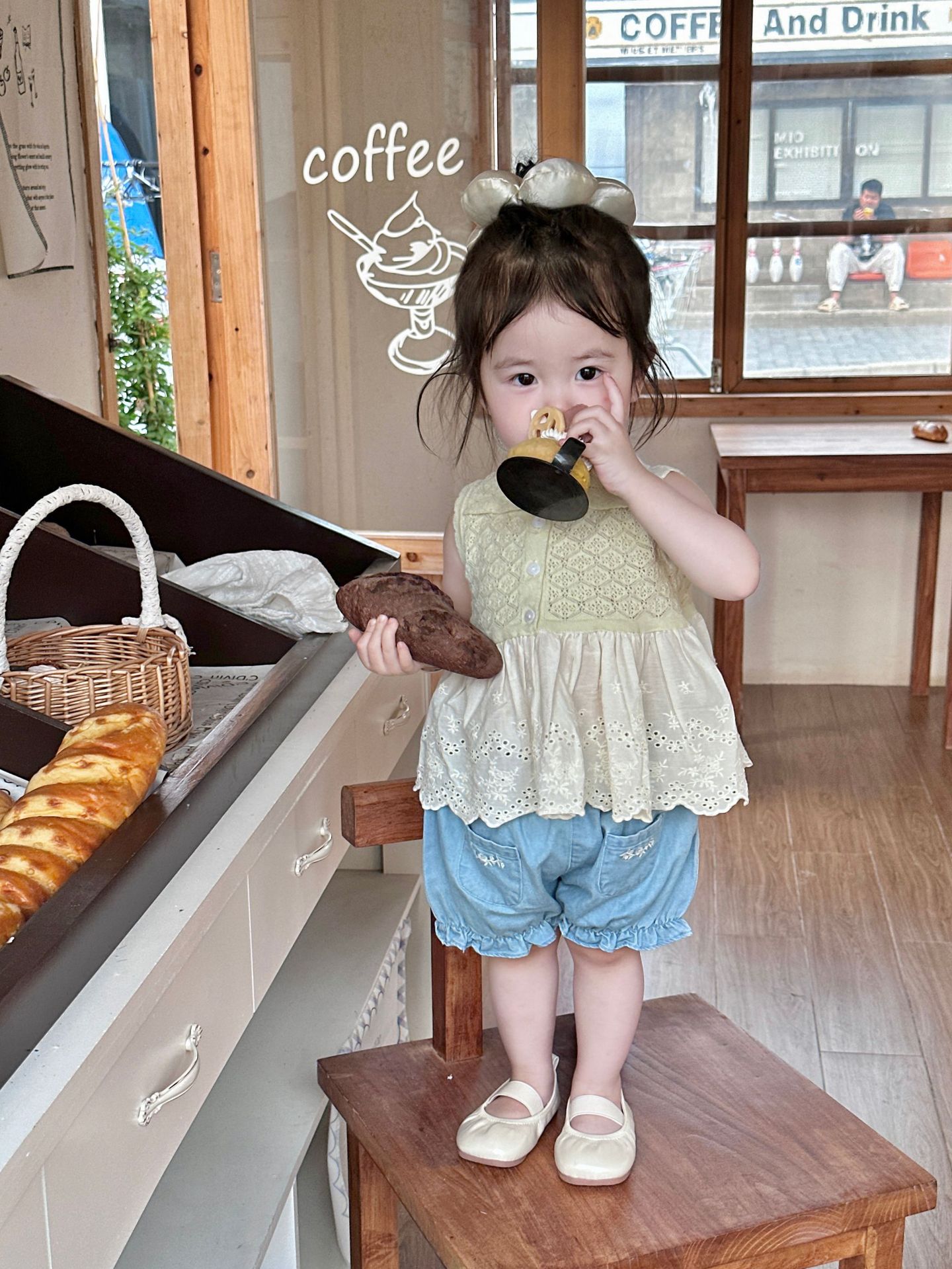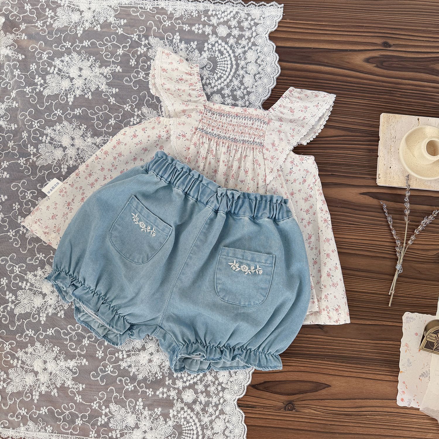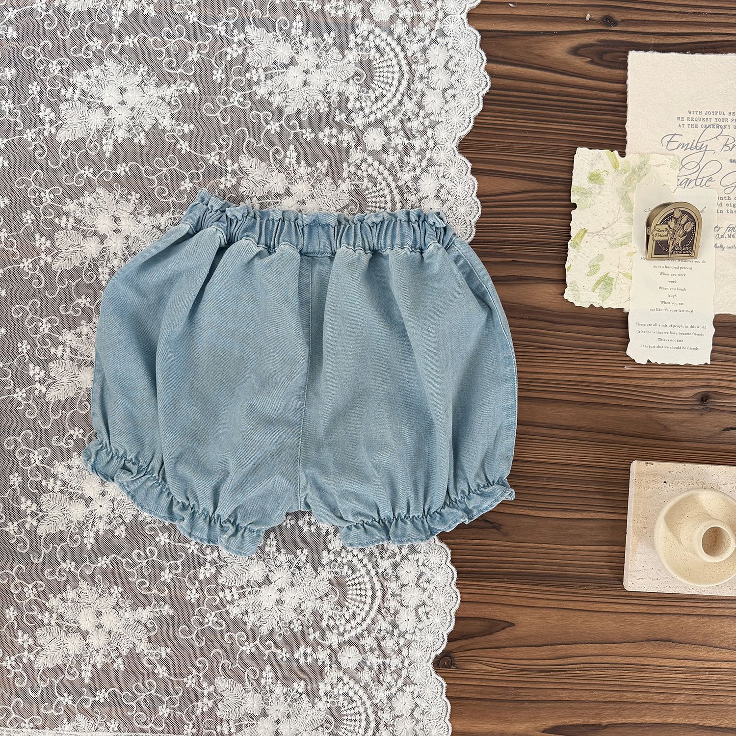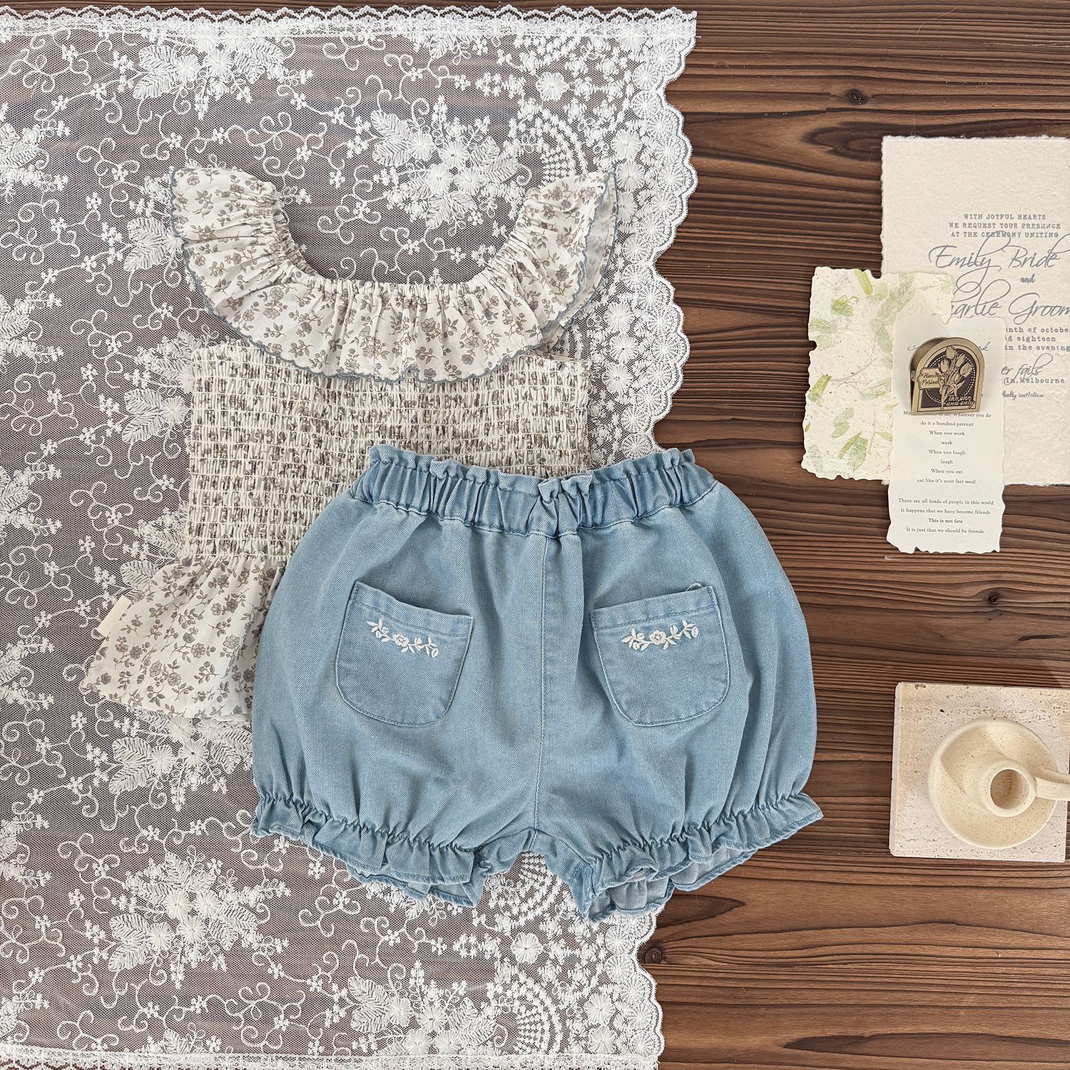 Cutemily 여름 아기 소녀의 면화 반바지 아기 소녀의 얇은 자수 연꽃 잎 데님 PP 호박 반바지
