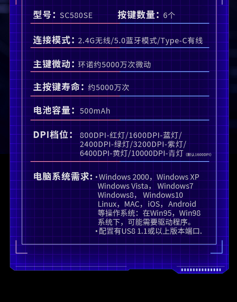 타란툴라 SC580SE 무선 3 모드 마우스 블루투스 E-스포츠 게임 사무실 데스크톱 노트북 홈스토어 가기