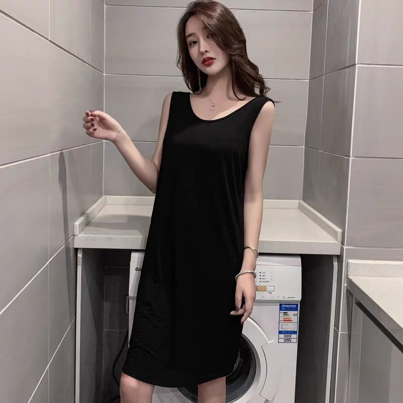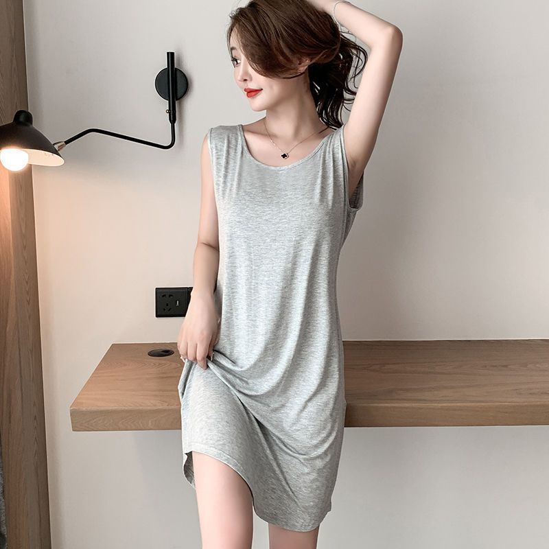 모달 나이트 드레스 여성의 봄과 여름 2025 Bottoming 민소매 듀 크로스 백 슬링 중간 길이의 달콤한 섹시 코튼 파자마스토어 가기
