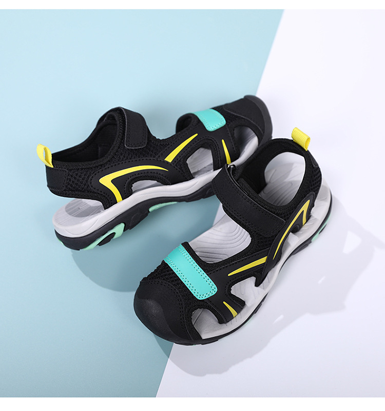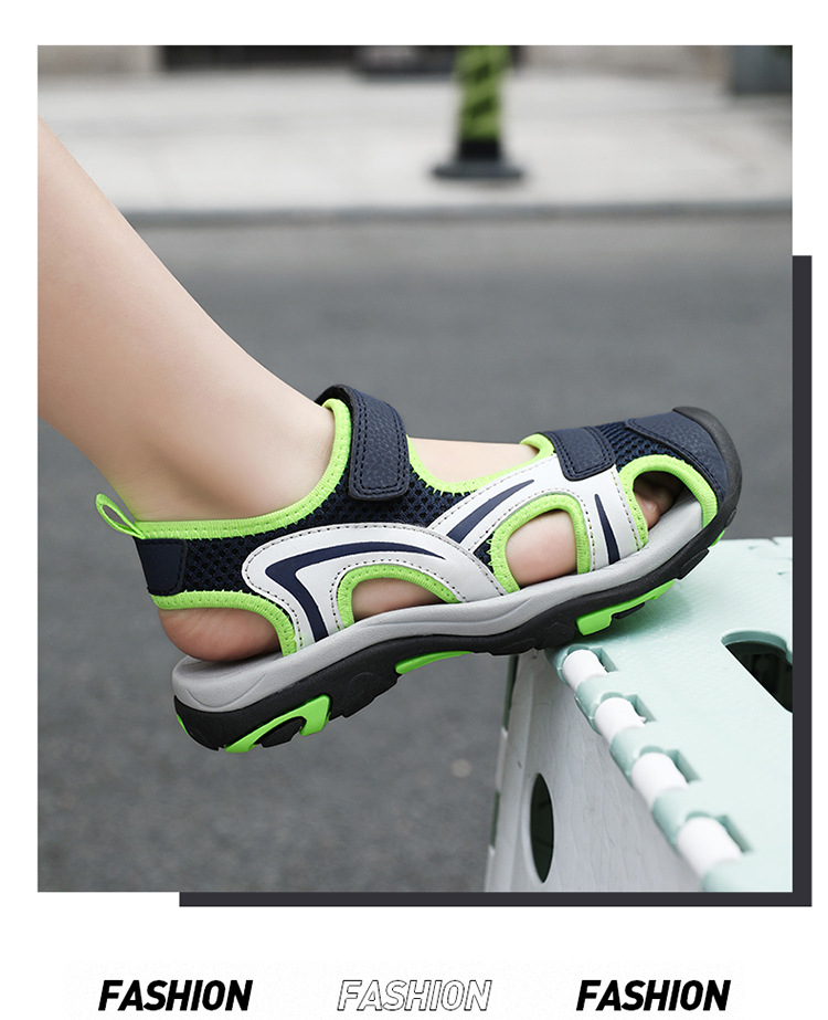 PLUS 어린이 샌들 여름 새로운 미끄럼 방지 부드러운 바닥 Baotou 소년 비치 신발 큰 어린이를위한 가볍고 편안한 소년