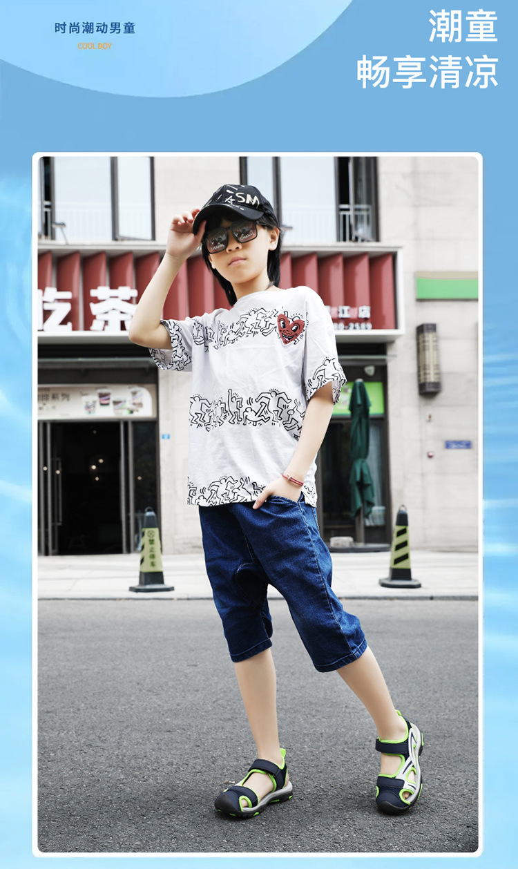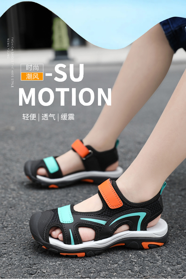 PLUS 어린이 샌들 여름 새로운 미끄럼 방지 부드러운 바닥 Baotou 소년 비치 신발 큰 어린이를위한 가볍고 편안한 소년스토어 가기