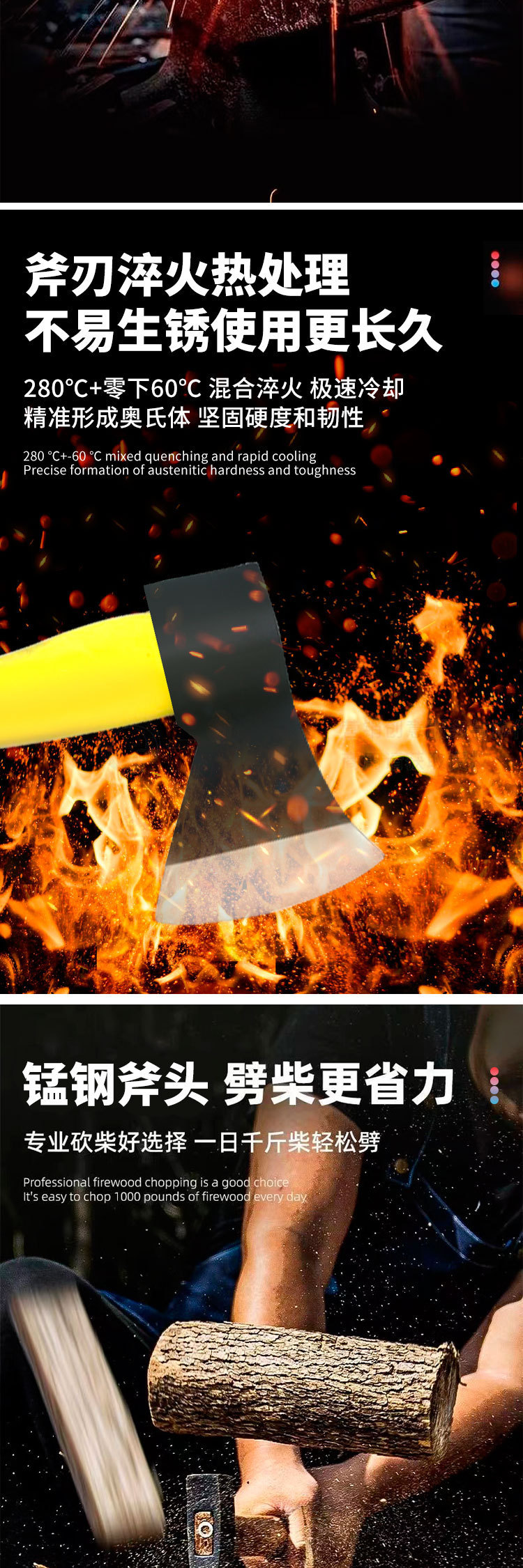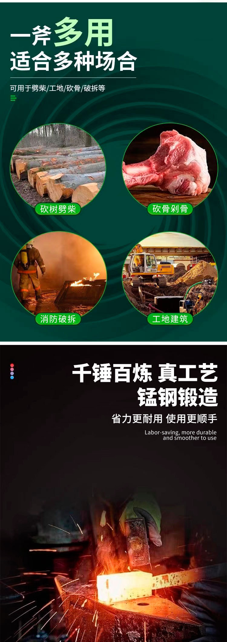 맞춤형 망간강 단조 야외 산 베기 도끼, 가정용 장작 분쇄기, 플라스틱 섬유 고무 손잡이 도끼, 정원 소방 도끼스토어 가기