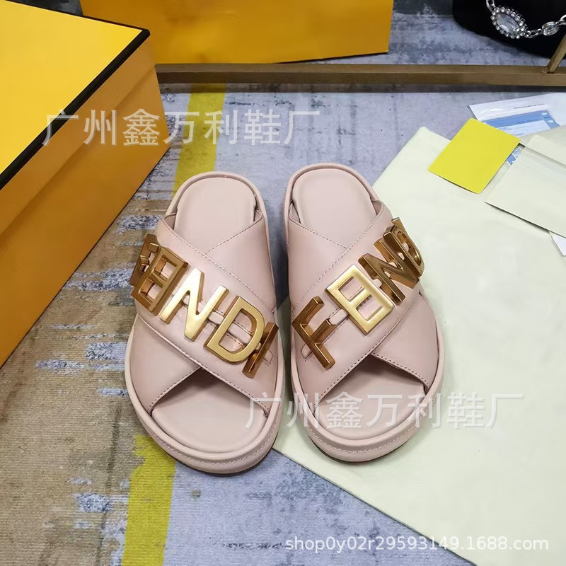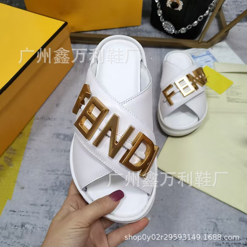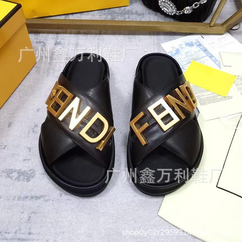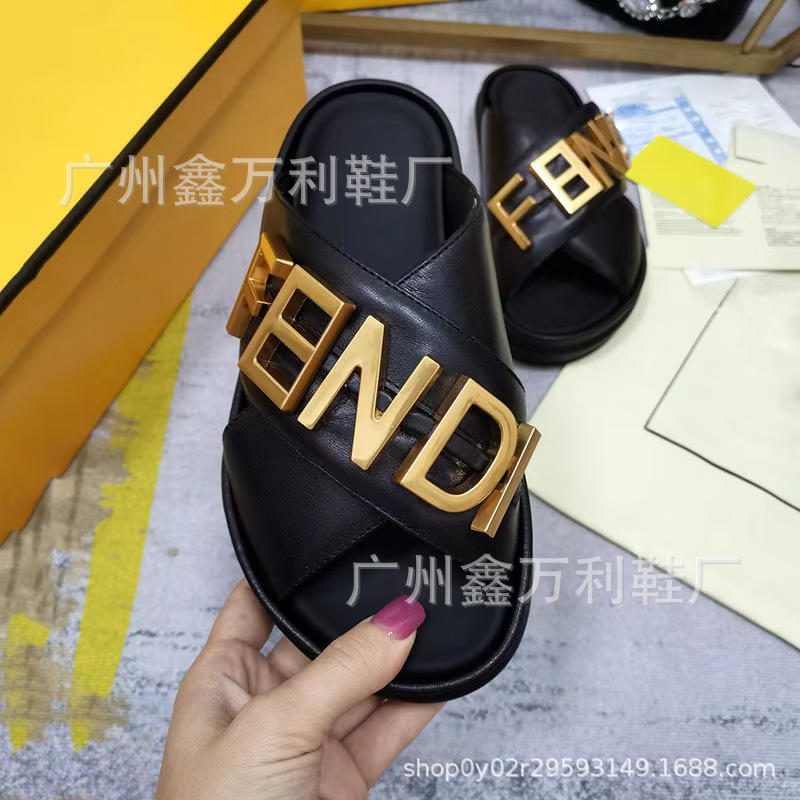 2024F 새로운 유럽과 미국 스타일의 금속 문자 여성 게으른 패션 샌들과 크로스 높이 슬리퍼스토어 가기