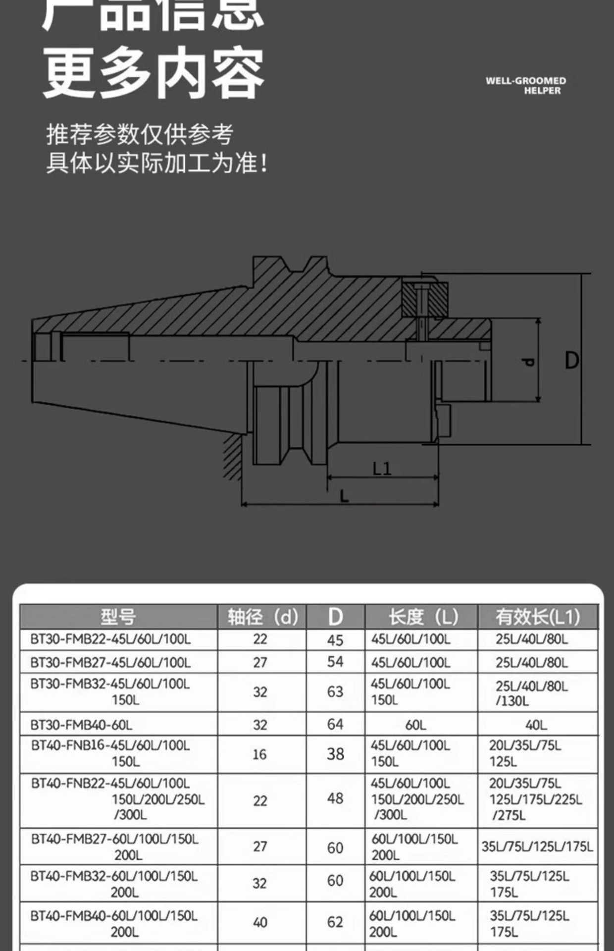 BT40 CNC 평면 밀링 커터 핸들 CNC 고정밀 평면 커터 핸들 연결 막대 BT40-FMB22 27 32 40스토어 가기