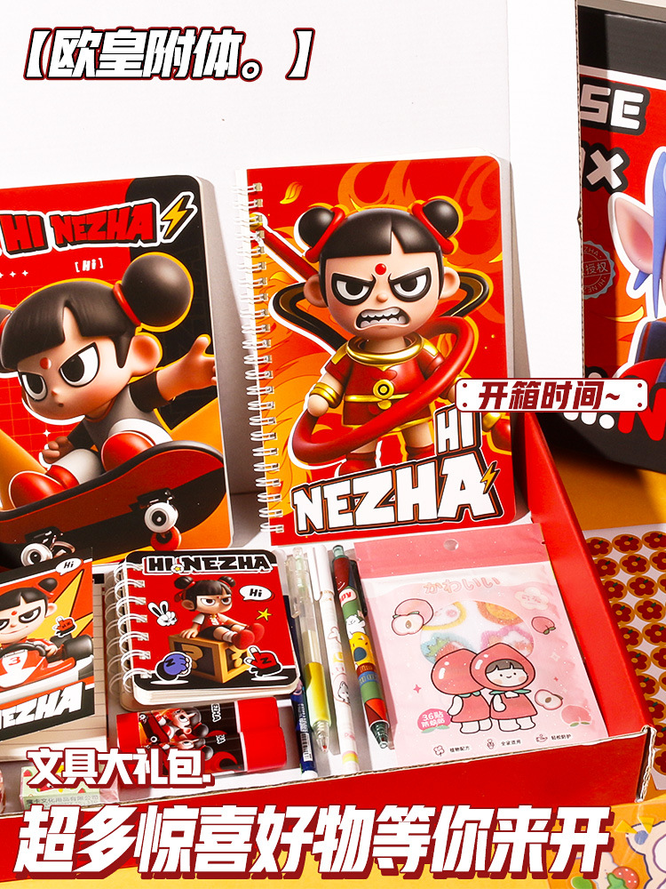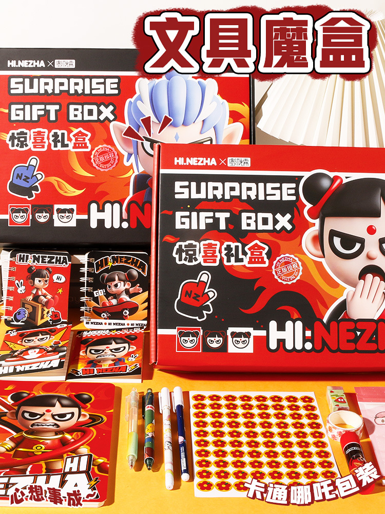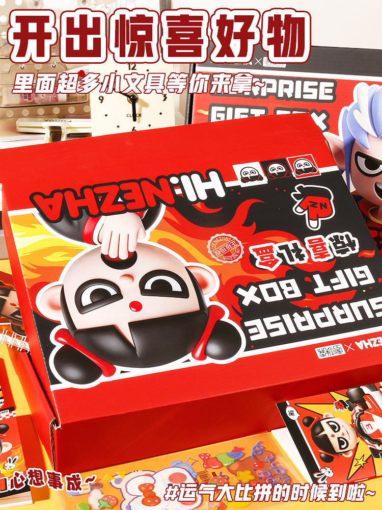 정품 공인 Nezha 문구 용품 만화 깜짝 블라인드 박스 학생 문구 세트 어린이 날 선물 주변 장치 보상스토어 가기