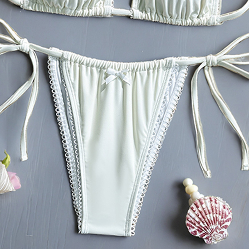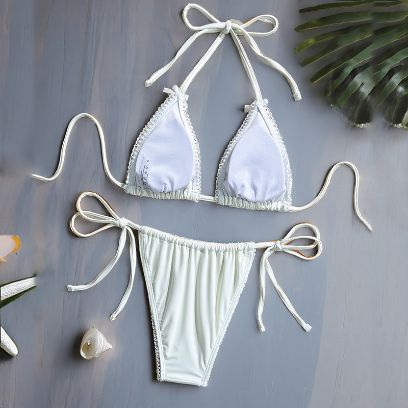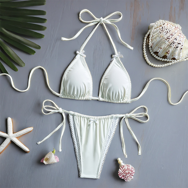유럽과 미국의 스플릿 수영복 여성용 ins 스타일 비키니 크로스보더 아마존 솔리드 컬러 섹시한 끈 백리스 비키니