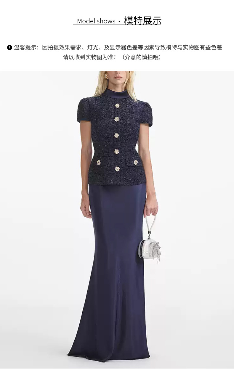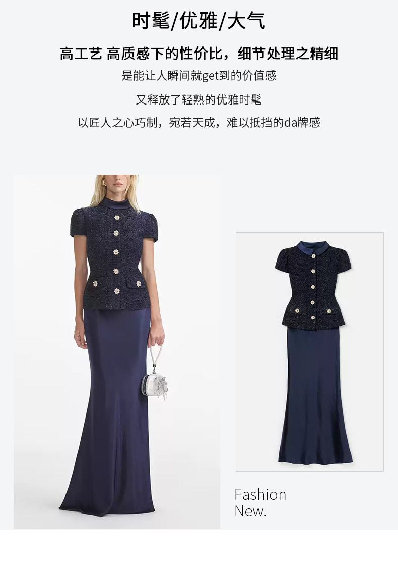 티베트 푸른 향기로운 스타일 여성 우아한 세트 여성 2025 년 봄과 가을 새로운 트위드 탑 새틴 하프 길이 원피스스토어 가기