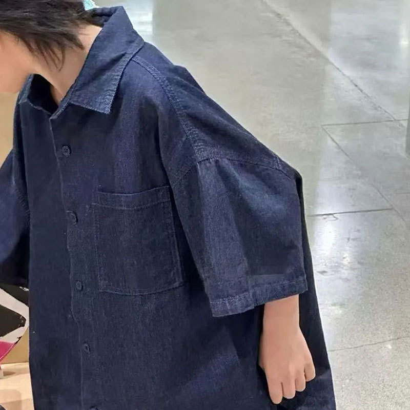 소년 세트 어린이 반팔 셔츠 바지 데님 2025 년 여름 새 소녀 블루 얇은 투피스 유행 세트스토어 가기
