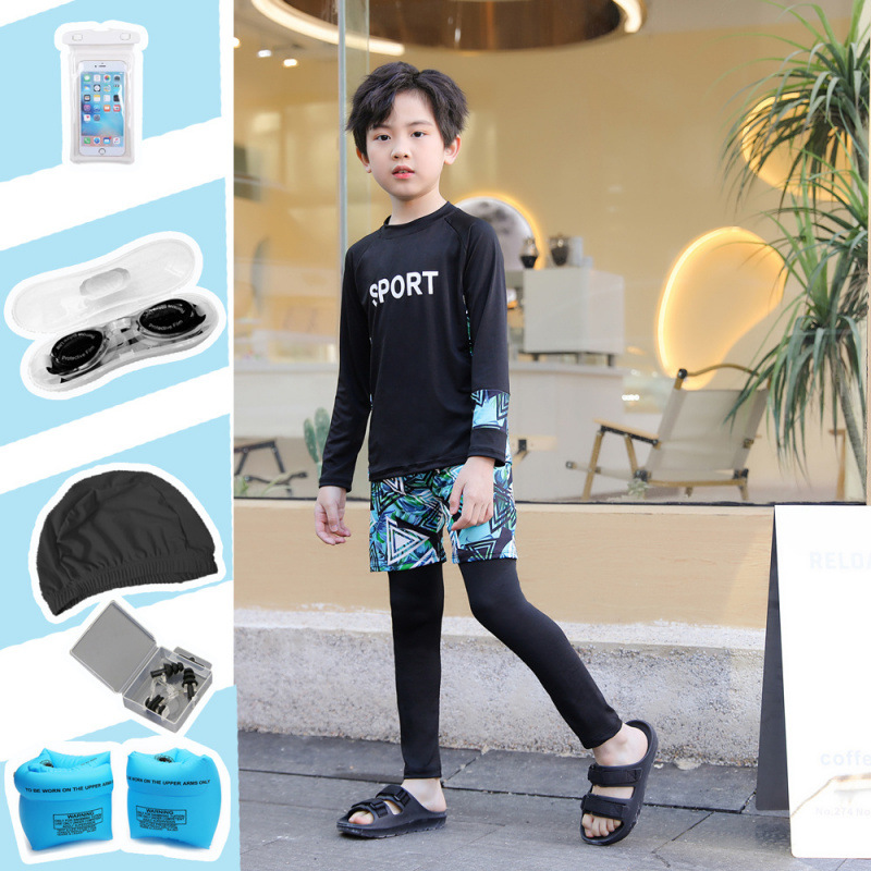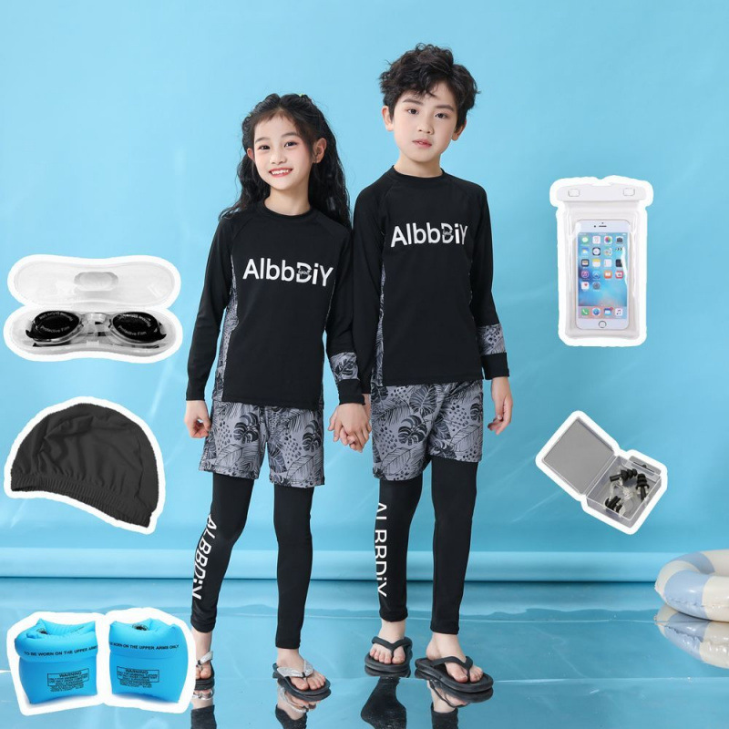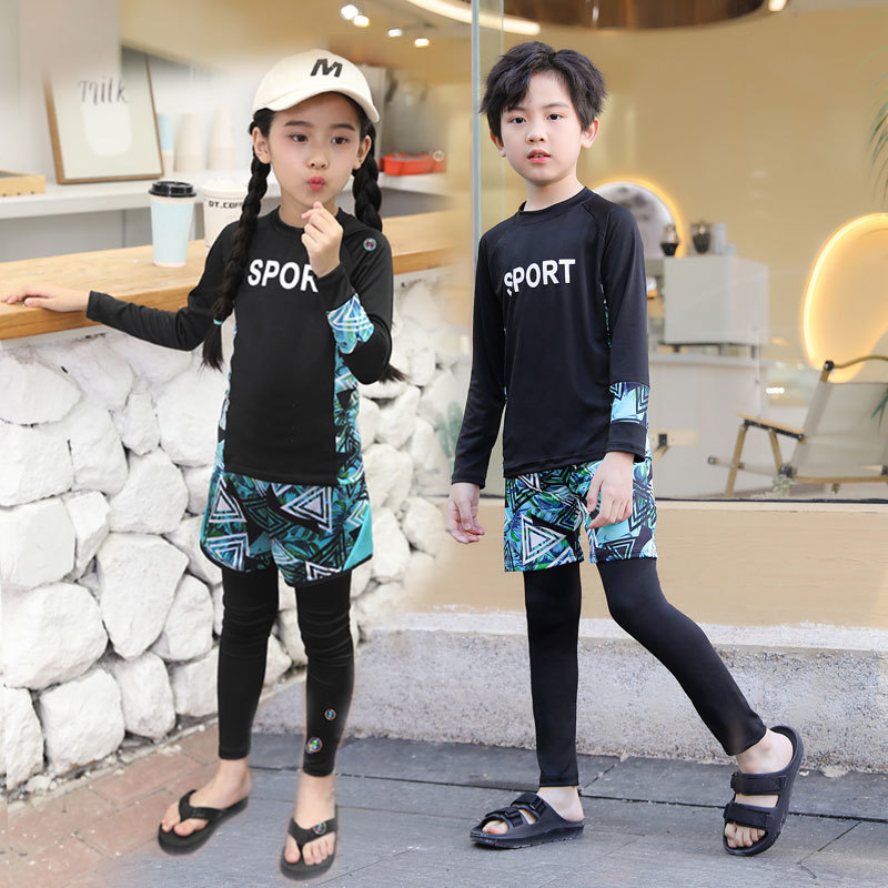 어린이 긴팔 수영복 서핑은 세트 빠른 건조 수영 트렁크 소년 아기를위한 긴 트렁크 여자 부모 자식 수영복 세트 공장 공급스토어 가기