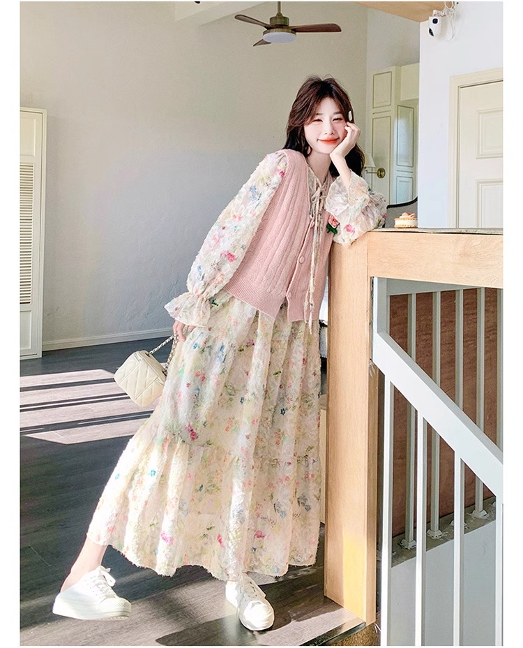 2025 슈퍼 파이어 스프링웨어 세트 여성용 달콤하고 부드러운 스타일 나이를 줄이는 슬리밍 꽃 원피스 조끼 투피스 세트스토어 가기