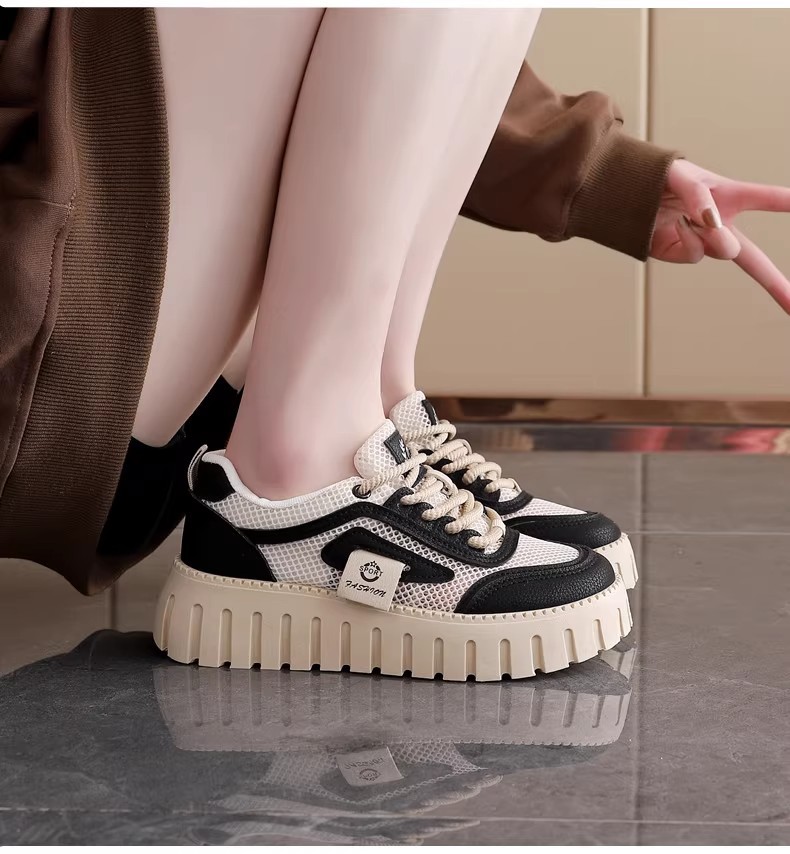 여름 여성 신발 새로운 통기성 중공 메쉬 슈즈 여성 한국식 올매치 두꺼운 밑창 운동화 캐주얼 보드 슈즈 화이트 슈즈스토어 가기