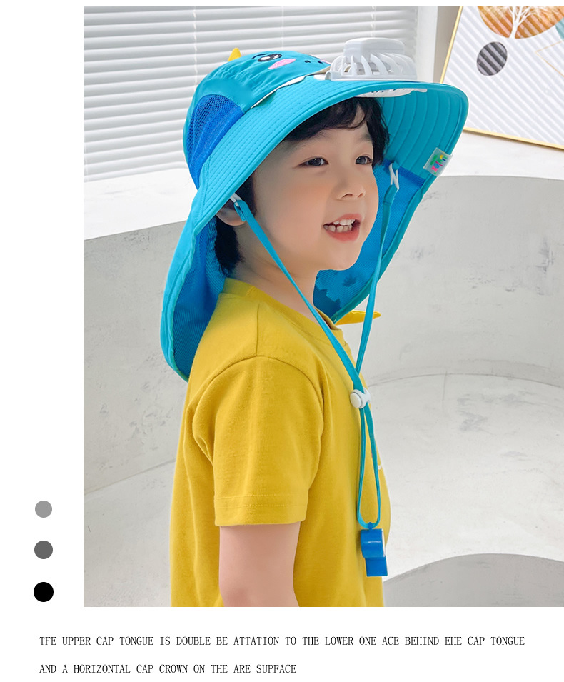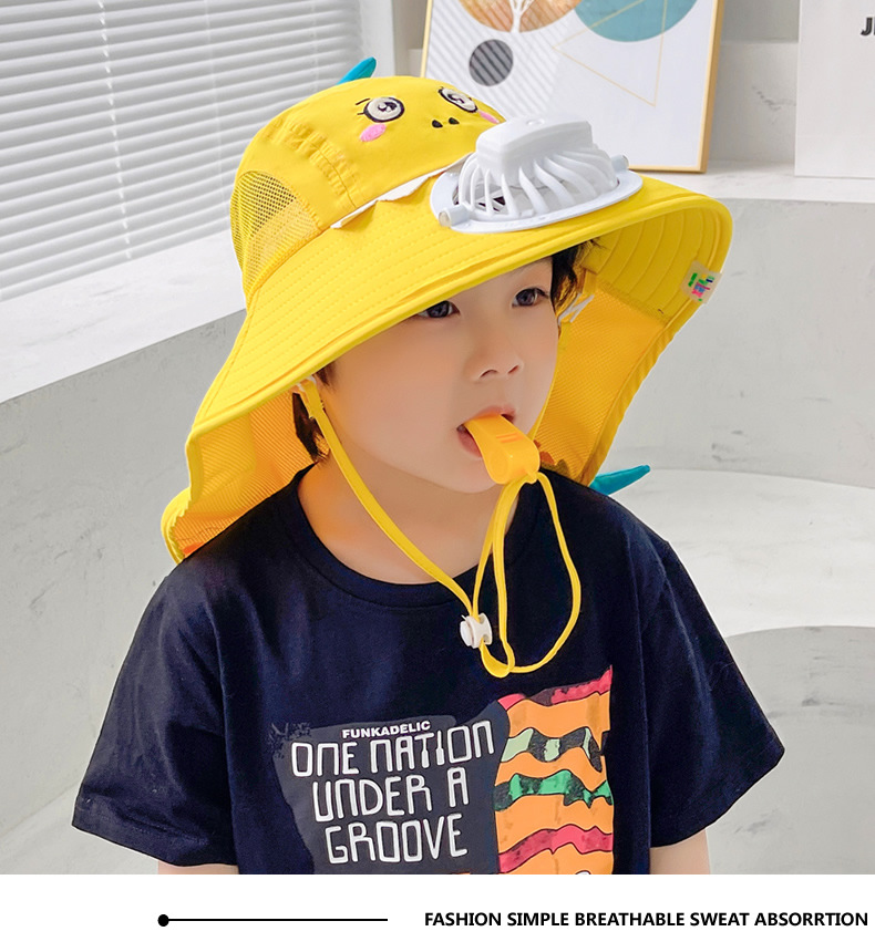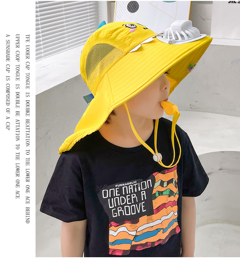 어린이 작은 노란색 오리 햇살 모자 USB 충전식 팬 캡 야외 선 스크린 캡 야외 빅 햇 브림 쿨 캡 숄더 캡
