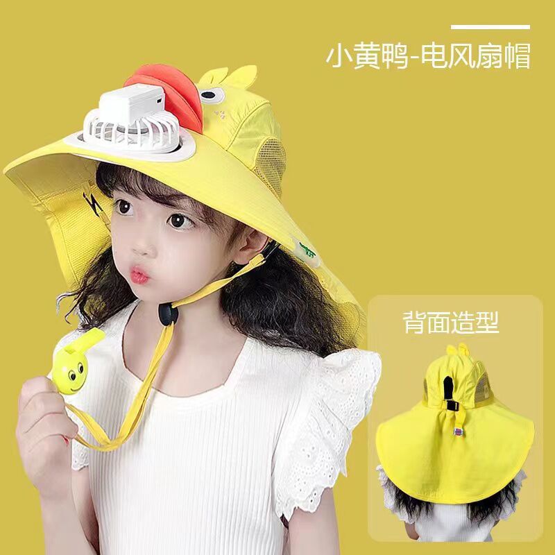 어린이 작은 노란색 오리 햇살 모자 USB 충전식 팬 캡 야외 선 스크린 캡 야외 빅 햇 브림 쿨 캡 숄더 캡스토어 가기