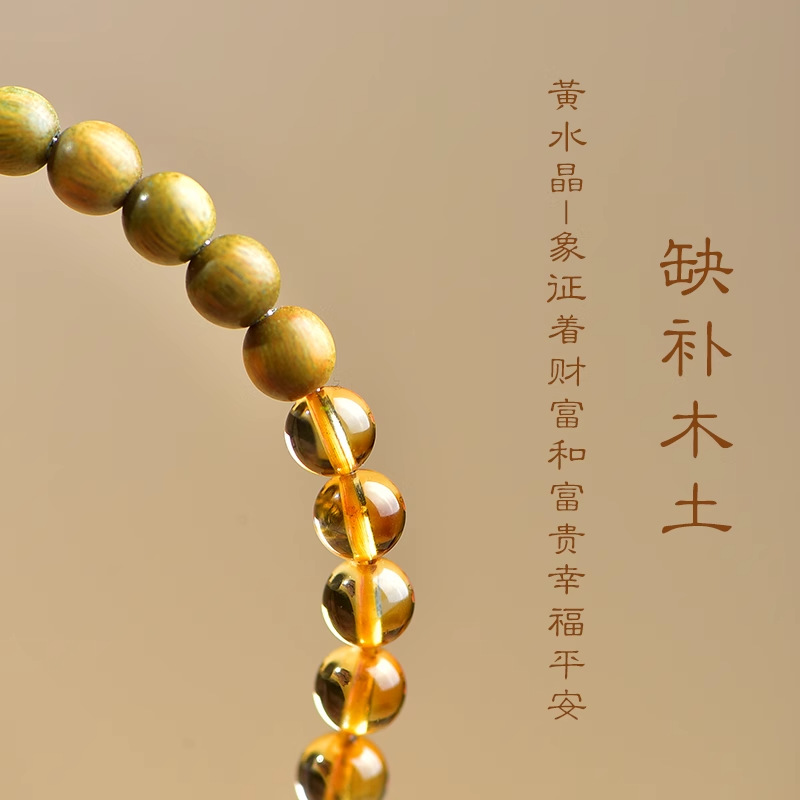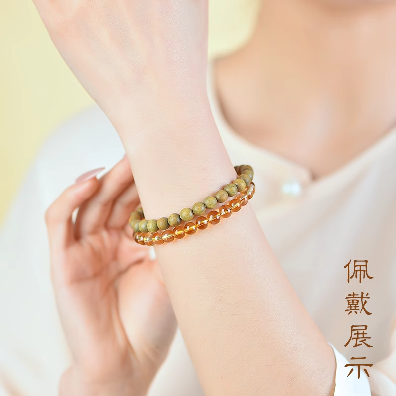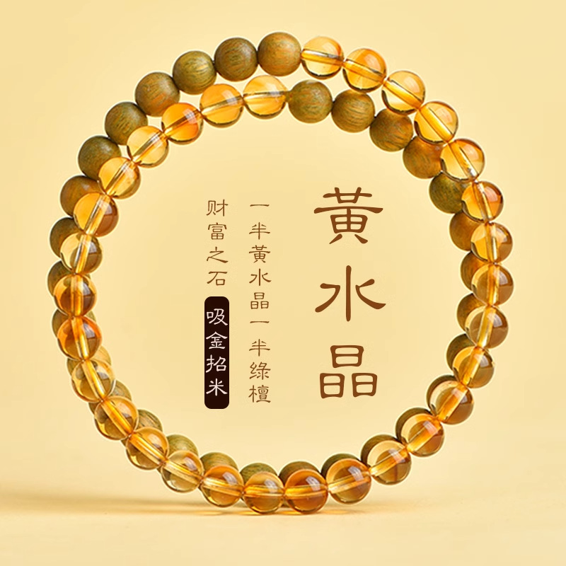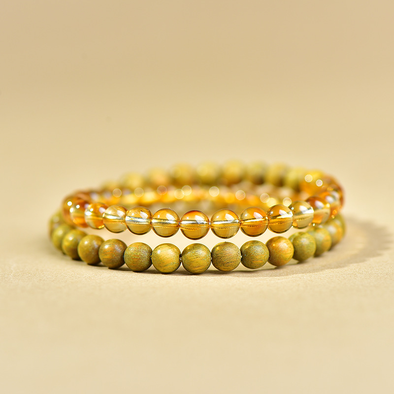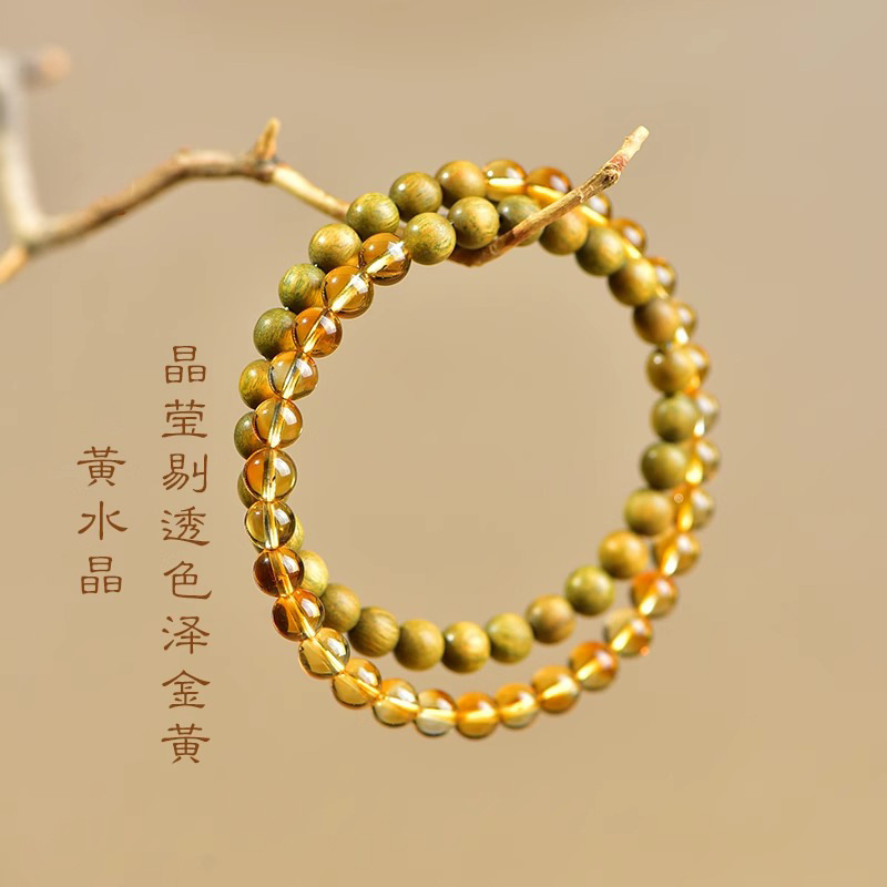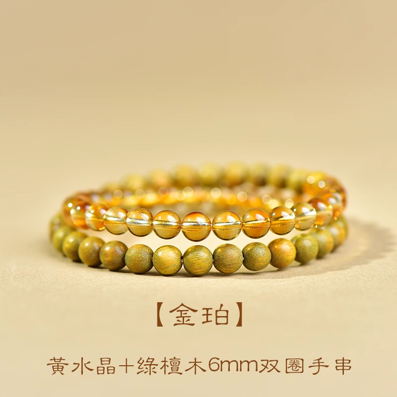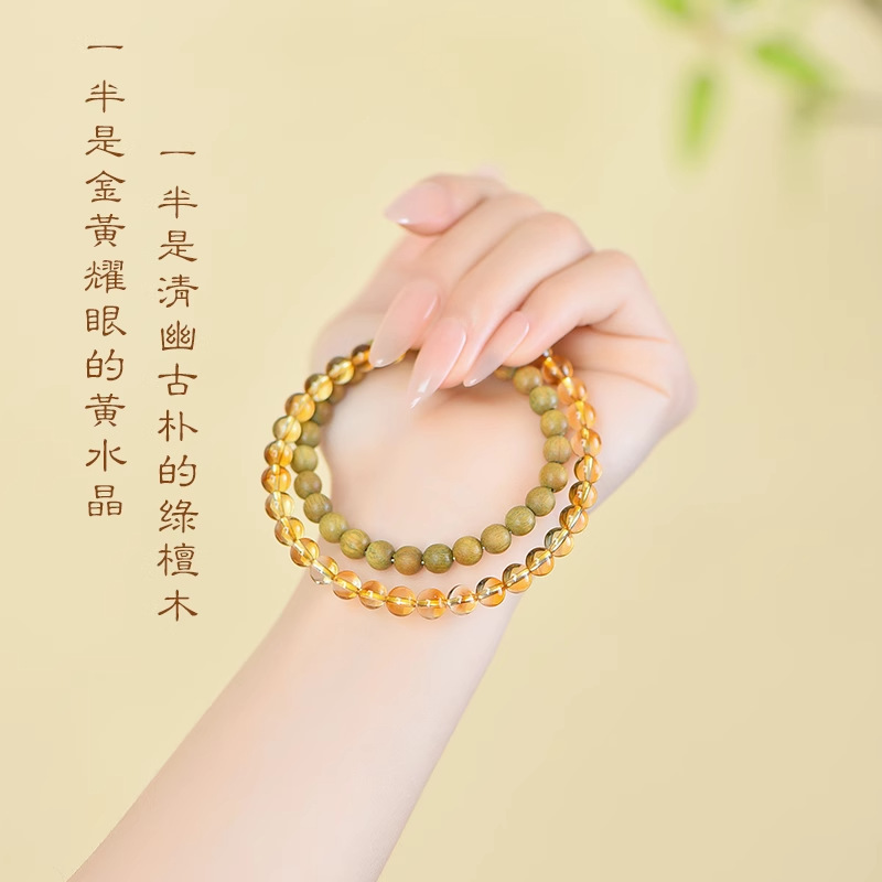 • 황수정 + 녹색 백단 이중 원형 팔찌