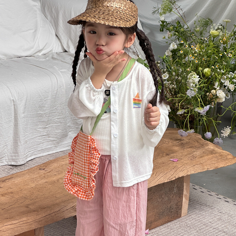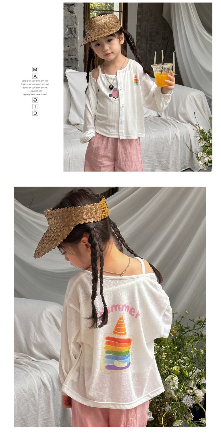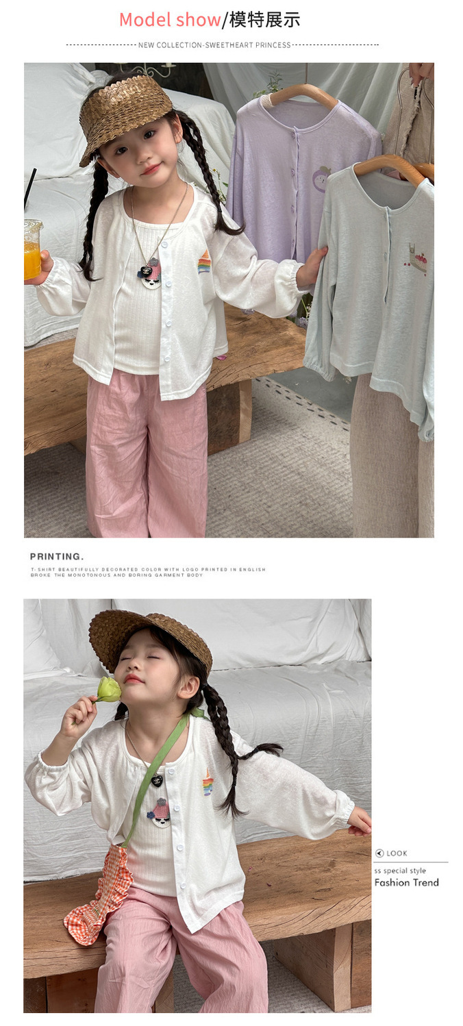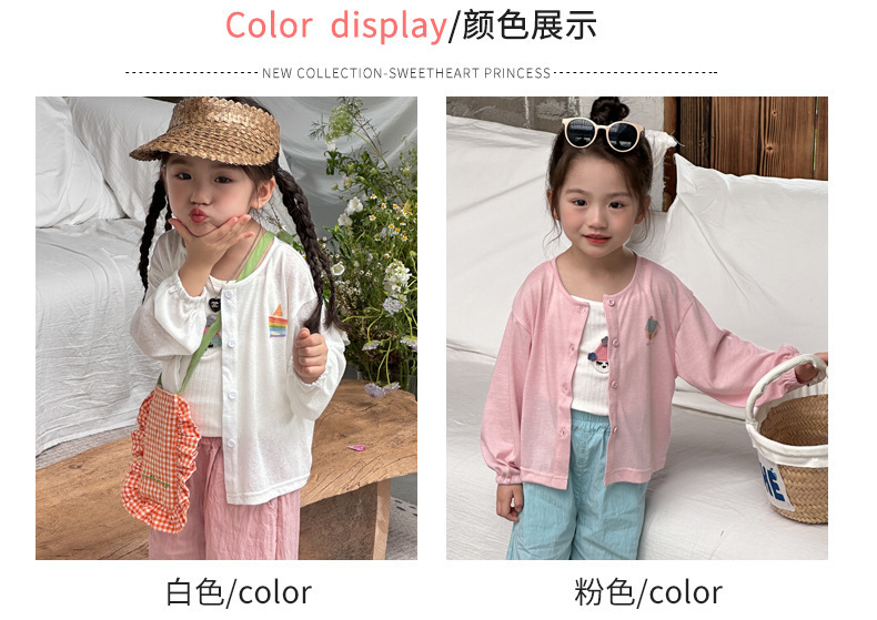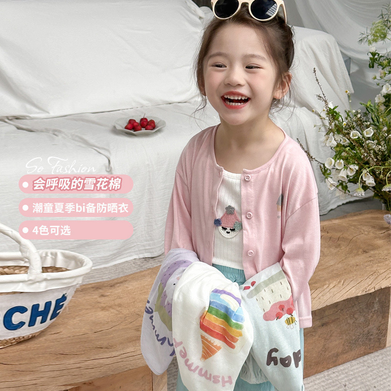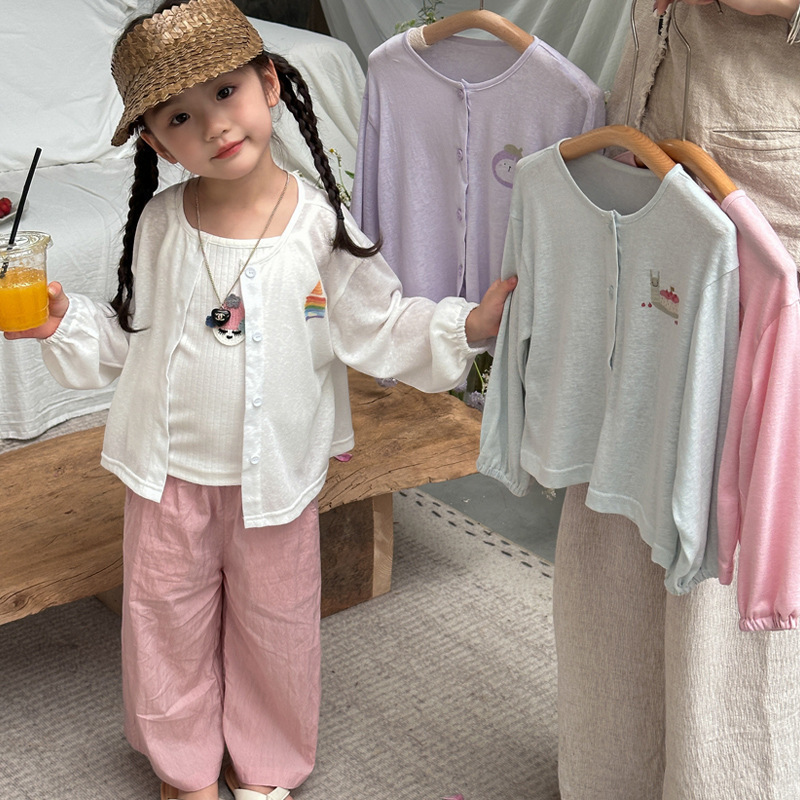 여자 태양 보호 의류 2025 여름 새로운 한국 스타일 어린이 탑 에어컨 의류 얇은 아기 소녀의 가벼운 카디건 코트