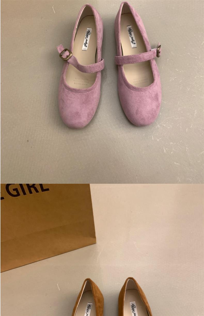 프렌치 소프트 플랫 라운드 토 스웨이드 메리 제인 여성화 2025 봄 여름 신작 한국식 발레 슈즈
