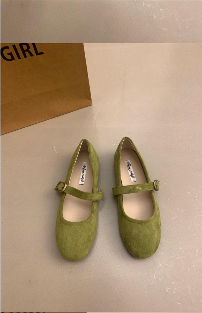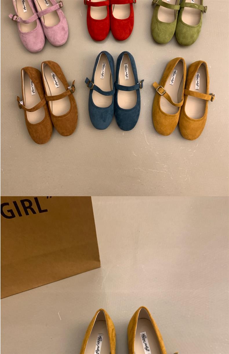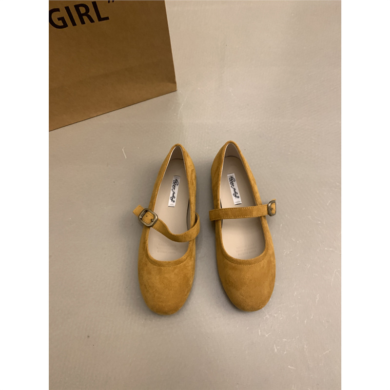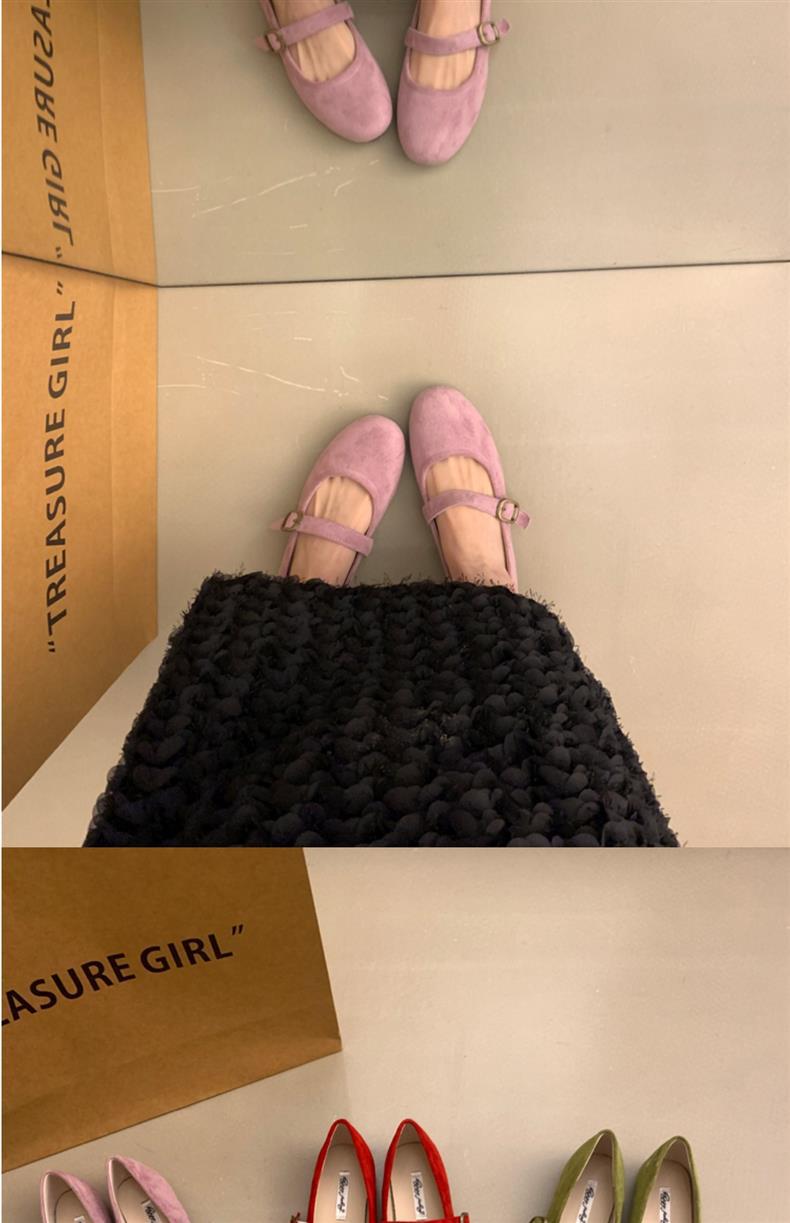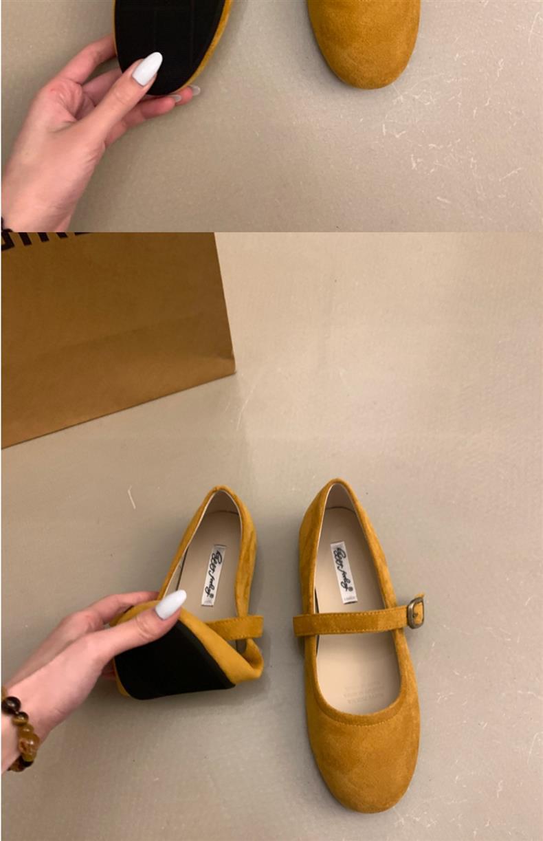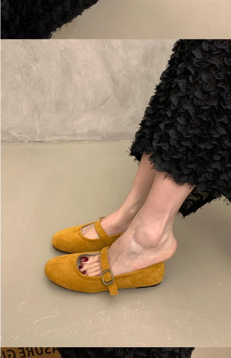 프렌치 소프트 플랫 라운드 토 스웨이드 메리 제인 여성화 2025 봄 여름 신작 한국식 발레 슈즈스토어 가기