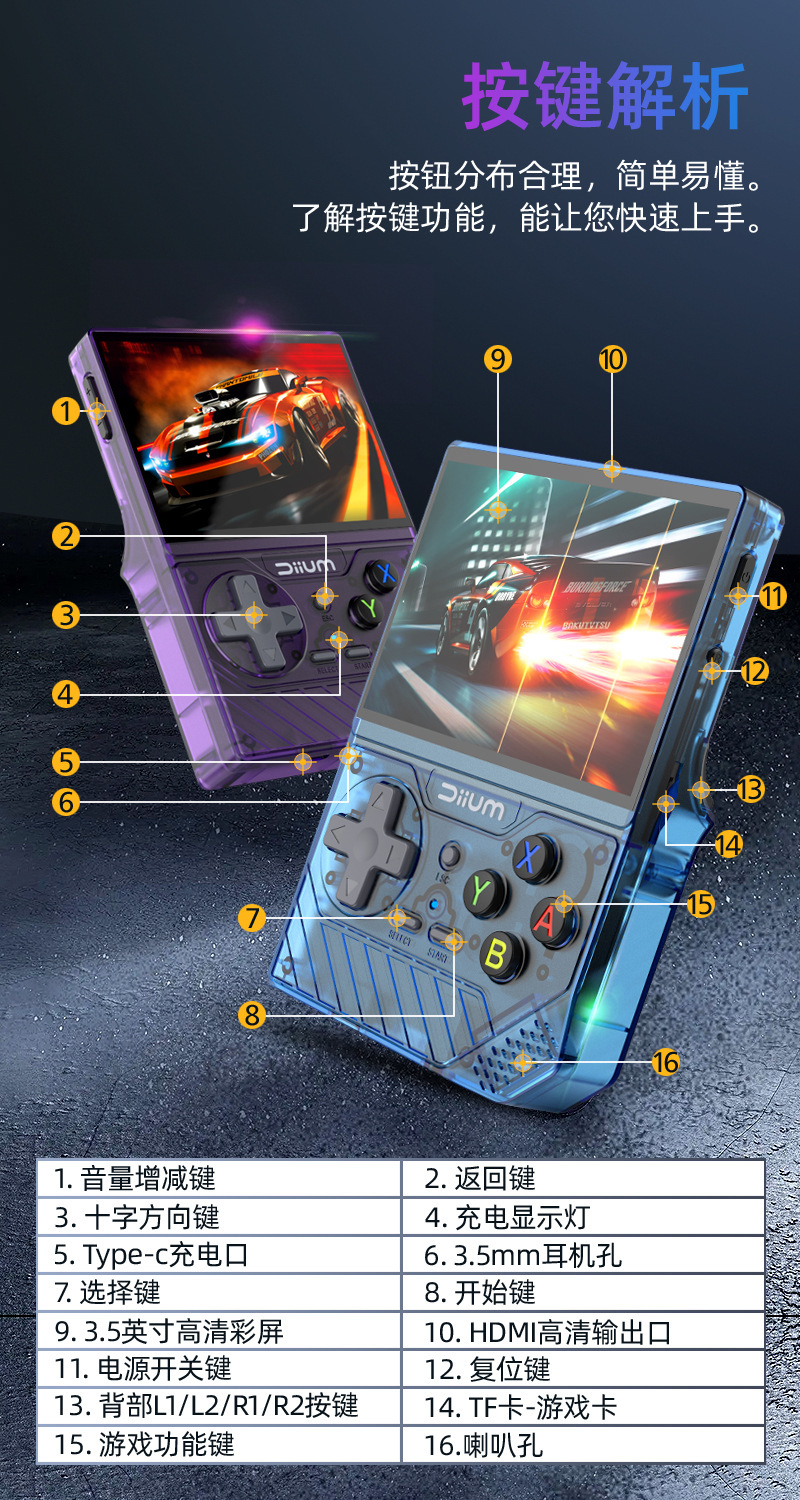 새로운 D008 오픈 소스 휴대용 게임 콘솔 휴대용 레트로 아케이드 게임 향수 3d 듀얼 시스템 휴대용스토어 가기