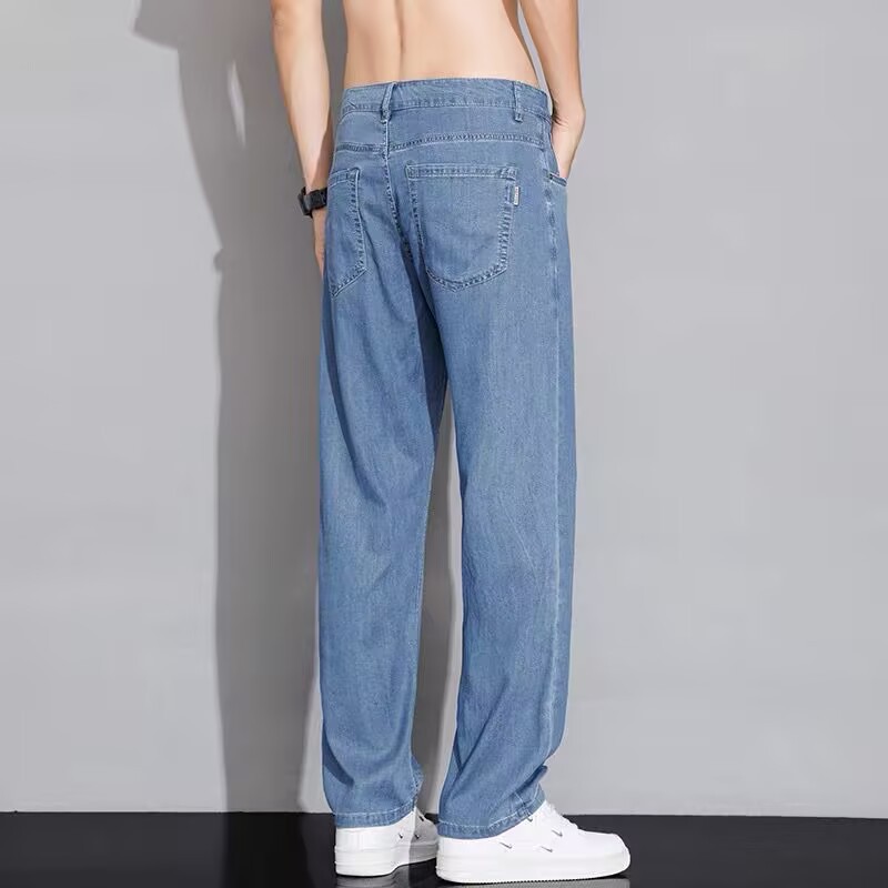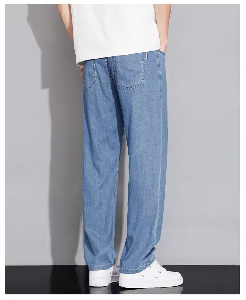 텐셀 스트레이트 청바지 남자 여름 얇은 2025 새로운 미국 스타일 느슨한 올매치 아이스 실크 캐주얼 바지