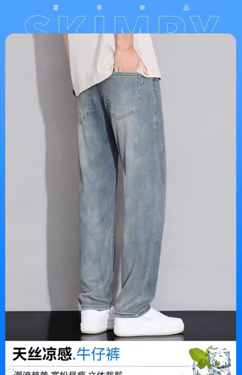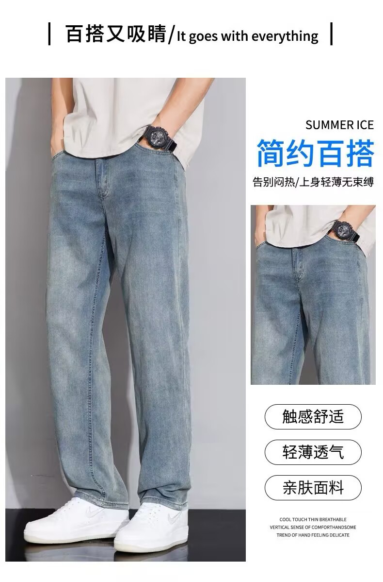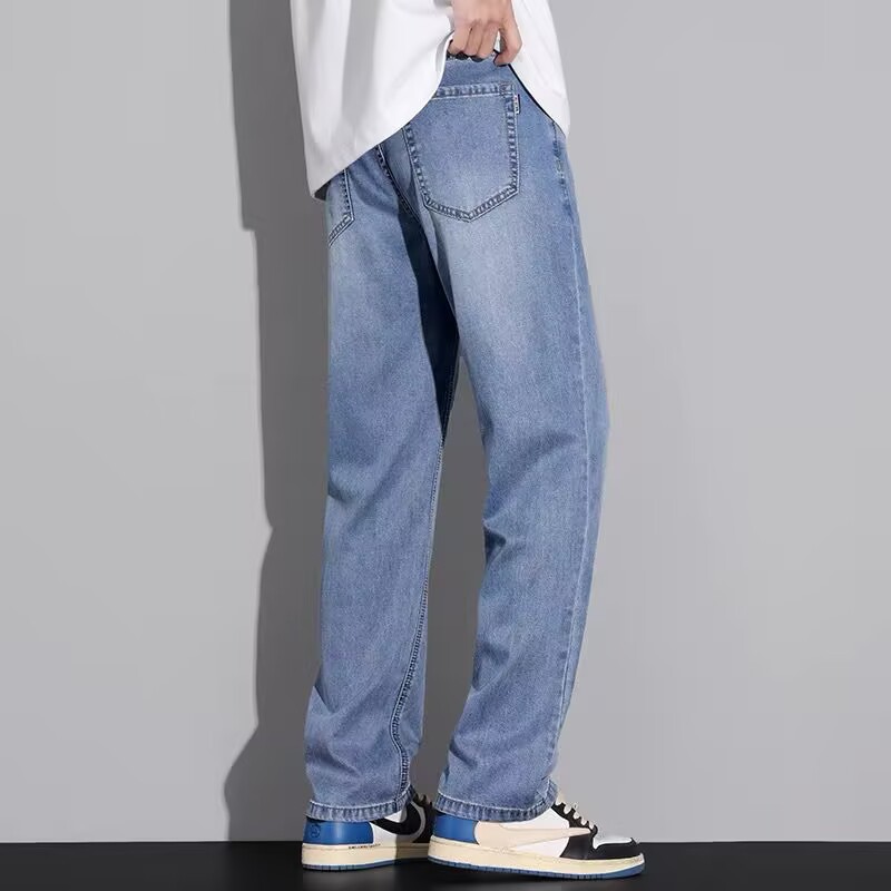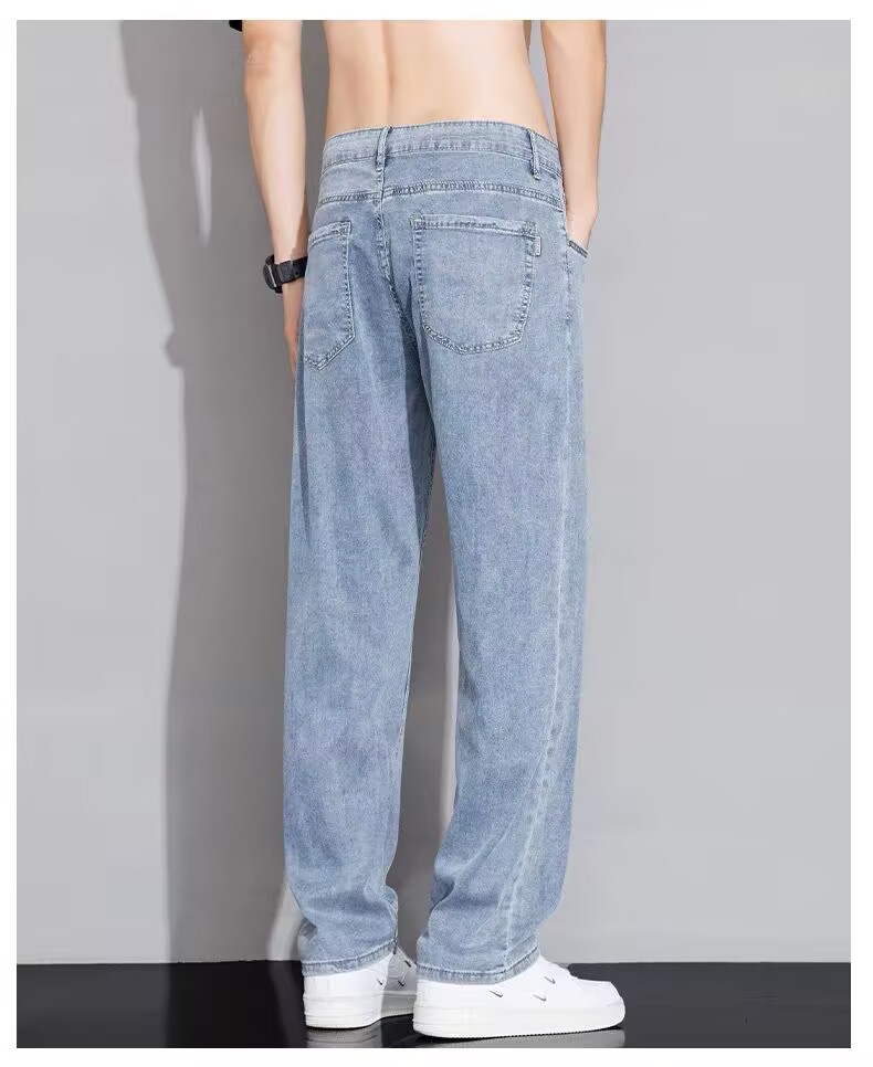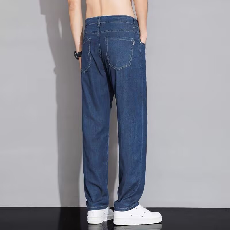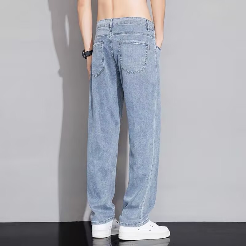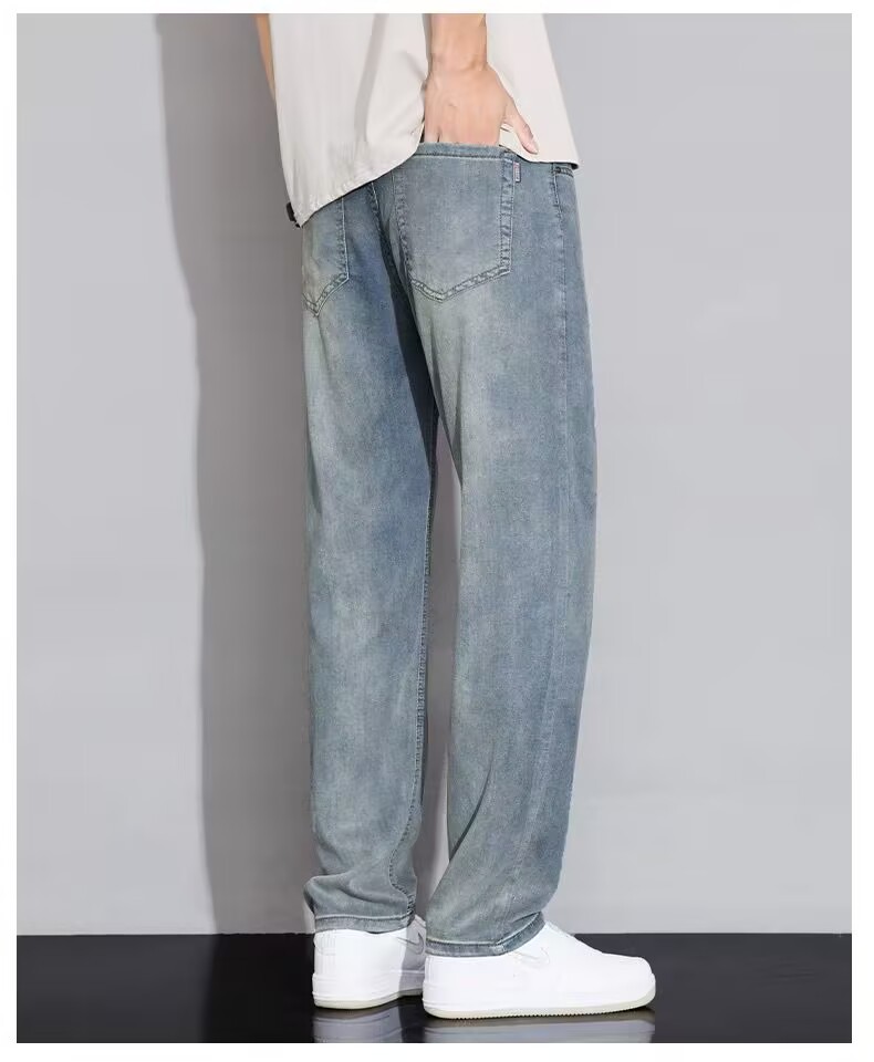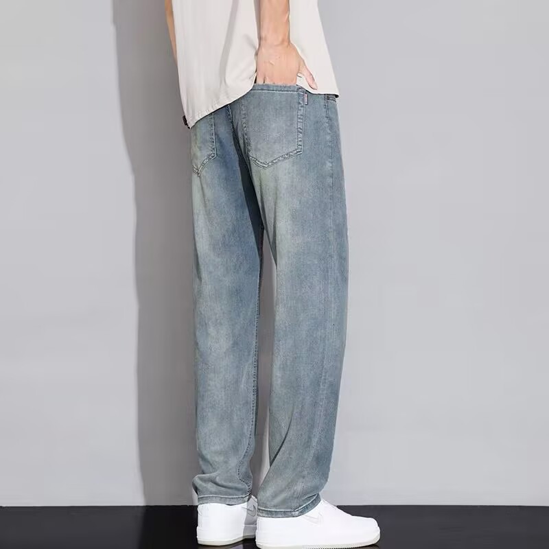 텐셀 스트레이트 청바지 남자 여름 얇은 2025 새로운 미국 스타일 느슨한 올매치 아이스 실크 캐주얼 바지스토어 가기