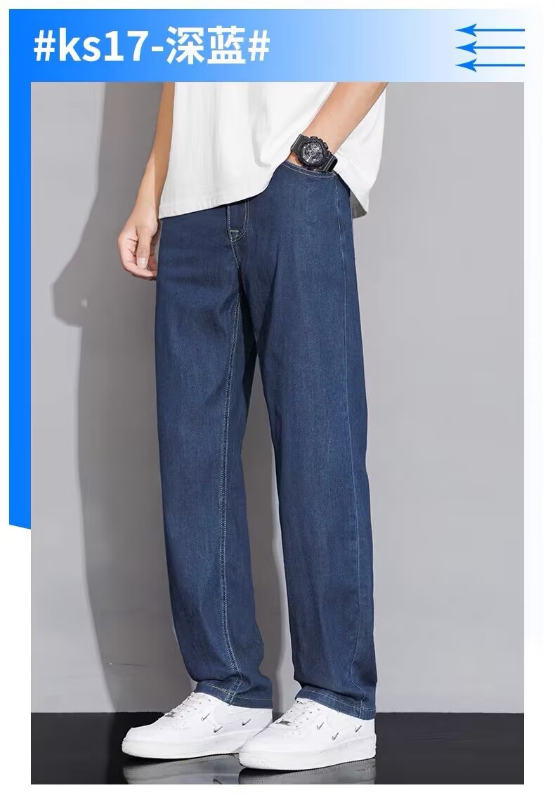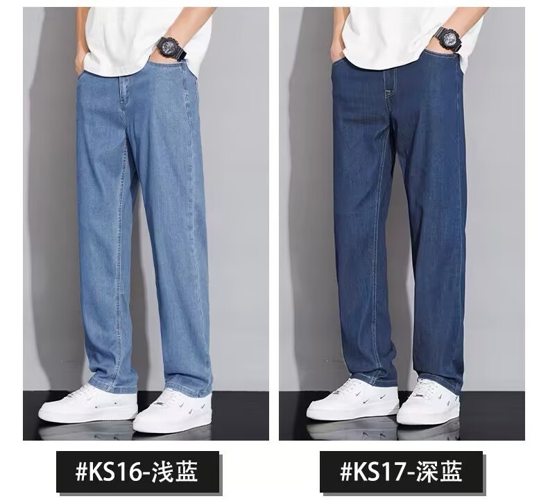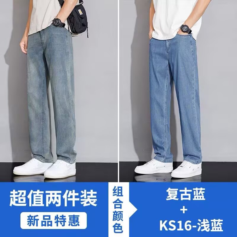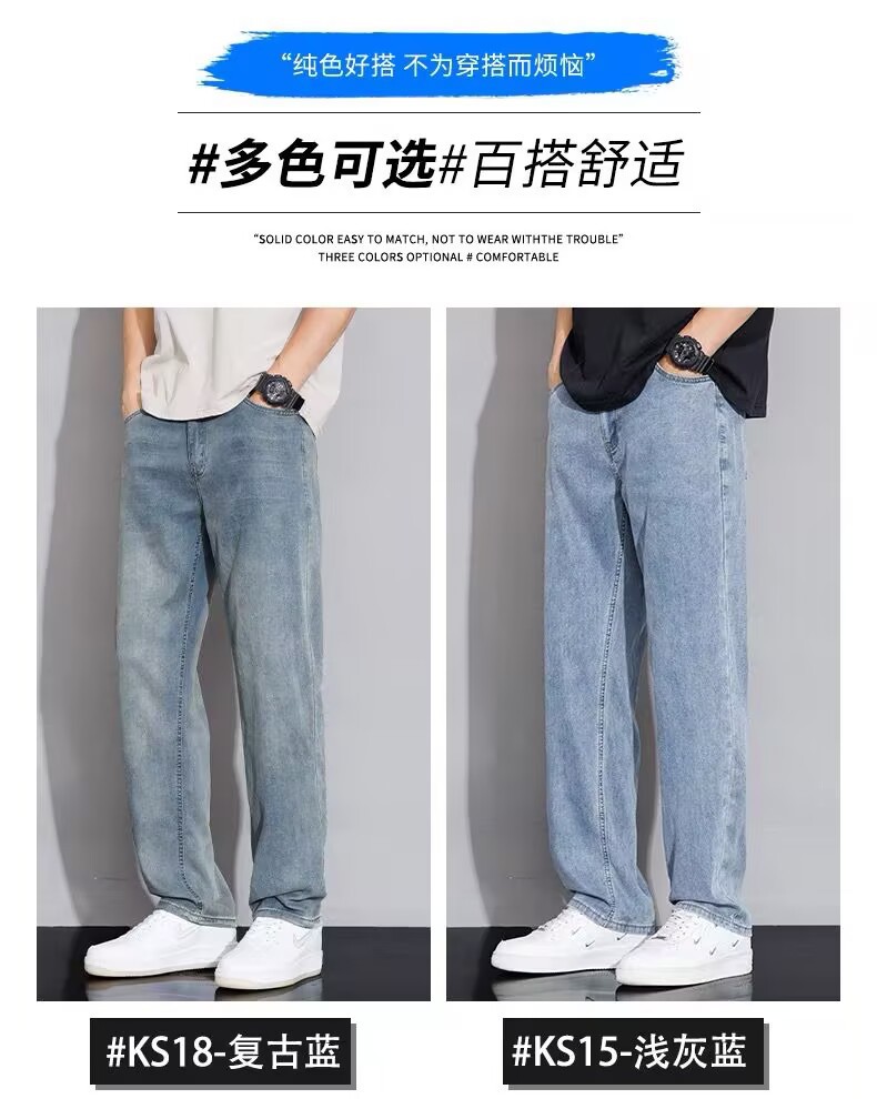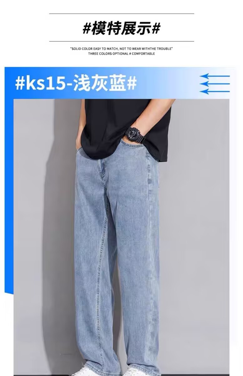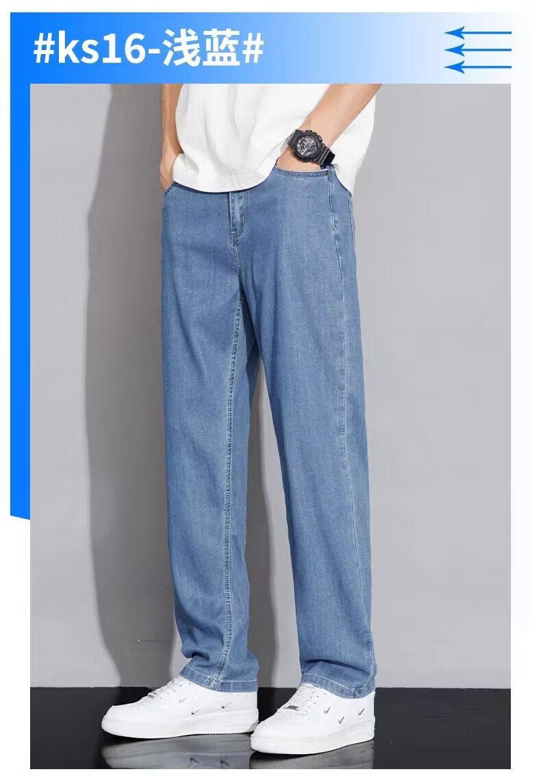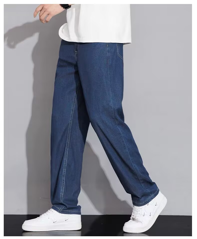 텐셀 스트레이트 청바지 남자 여름 얇은 2025 새로운 미국 스타일 느슨한 올매치 아이스 실크 캐주얼 바지스토어 가기