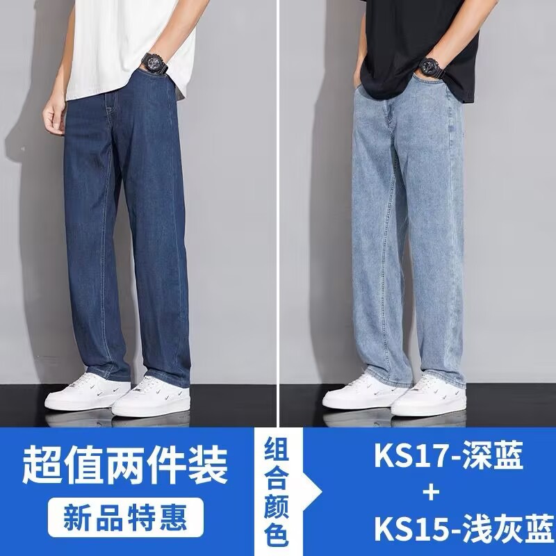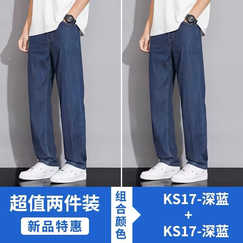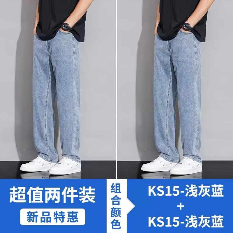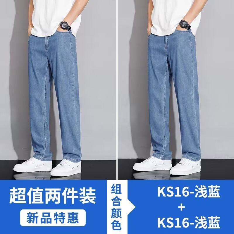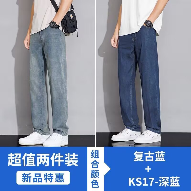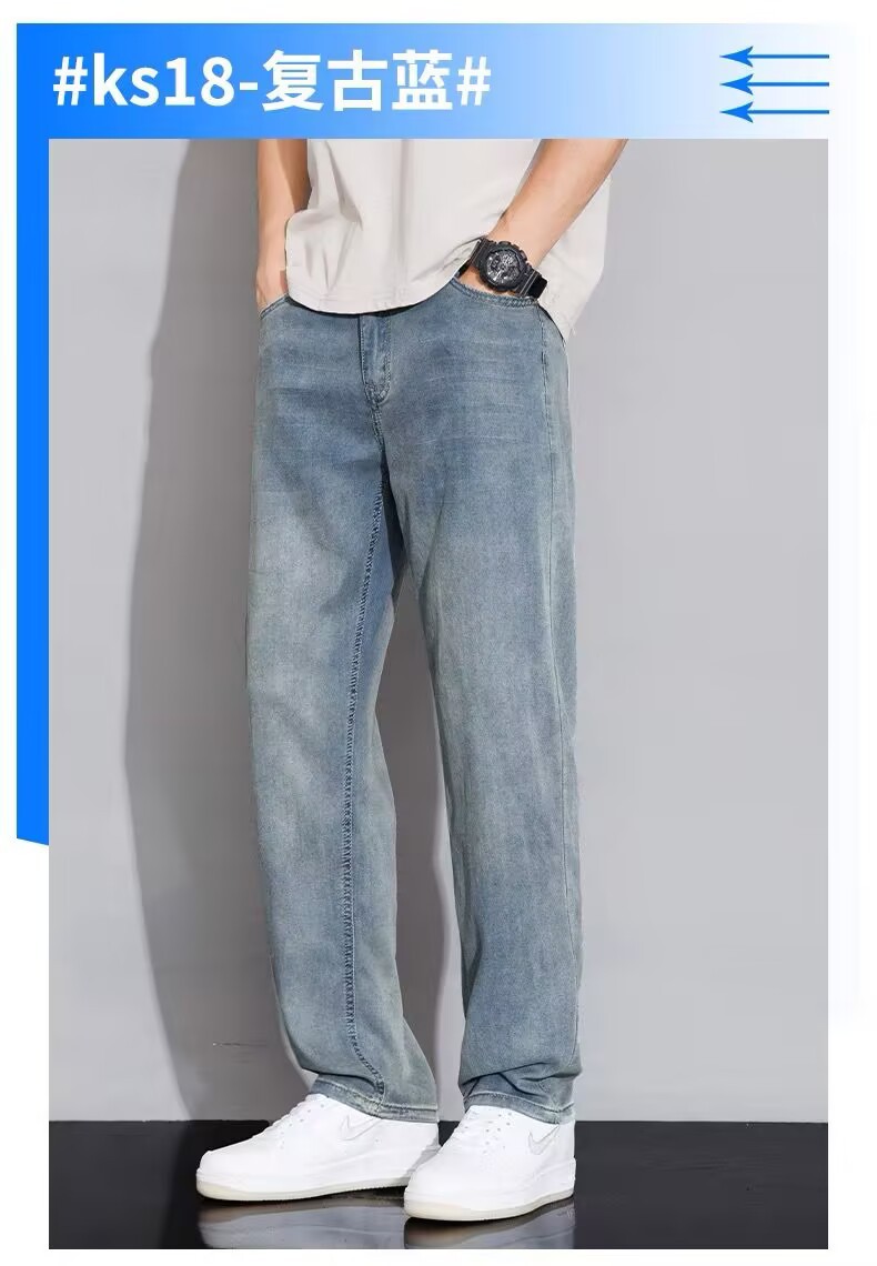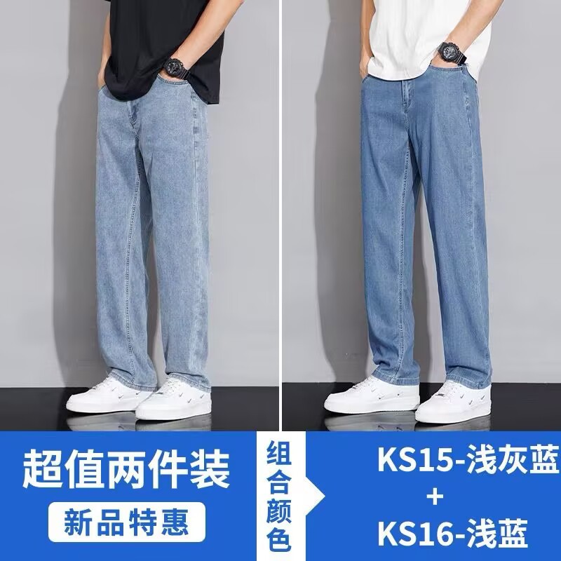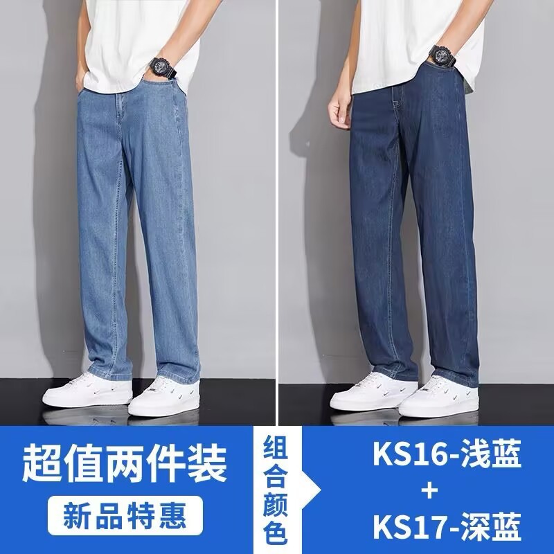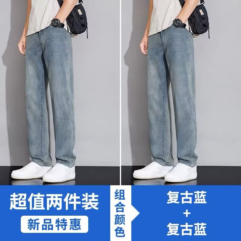 텐셀 스트레이트 청바지 남자 여름 얇은 2025 새로운 미국 스타일 느슨한 올매치 아이스 실크 캐주얼 바지스토어 가기