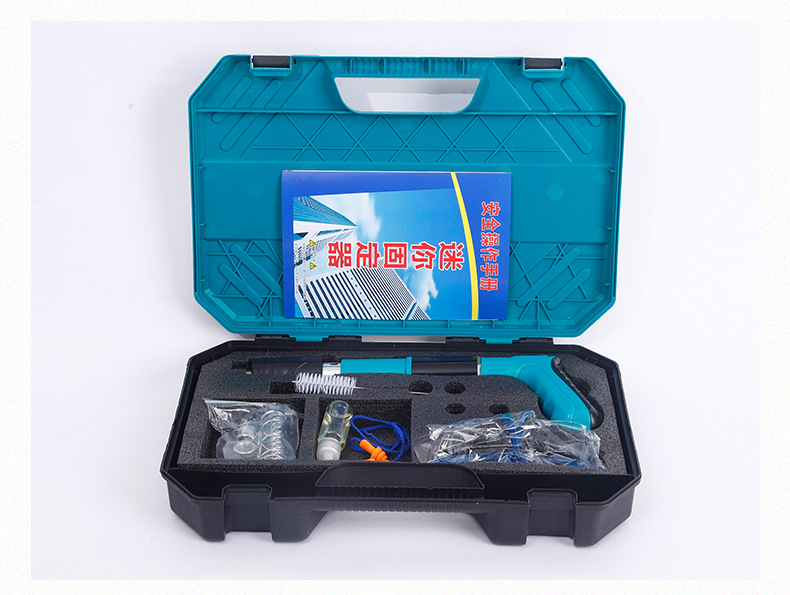 • 녹색 도구 상자 + 액세서리 가방 + 녹색 총 + 무료 못 100개와 디스크 못 27개