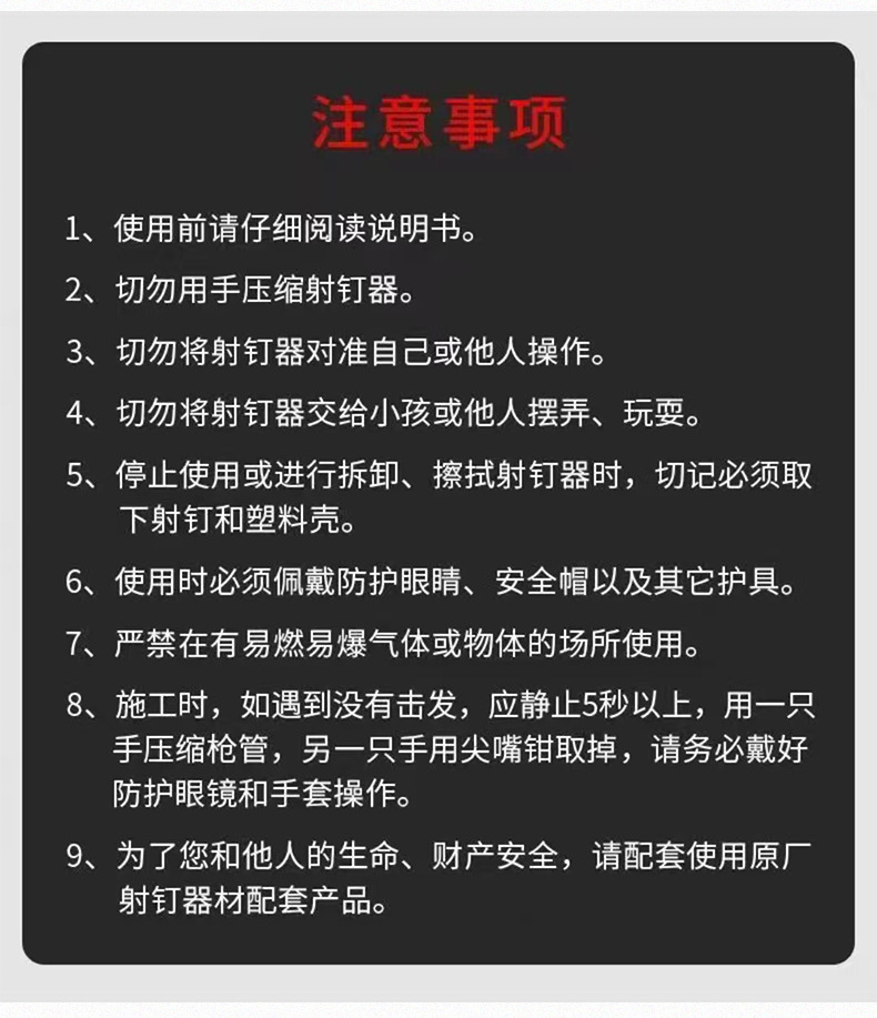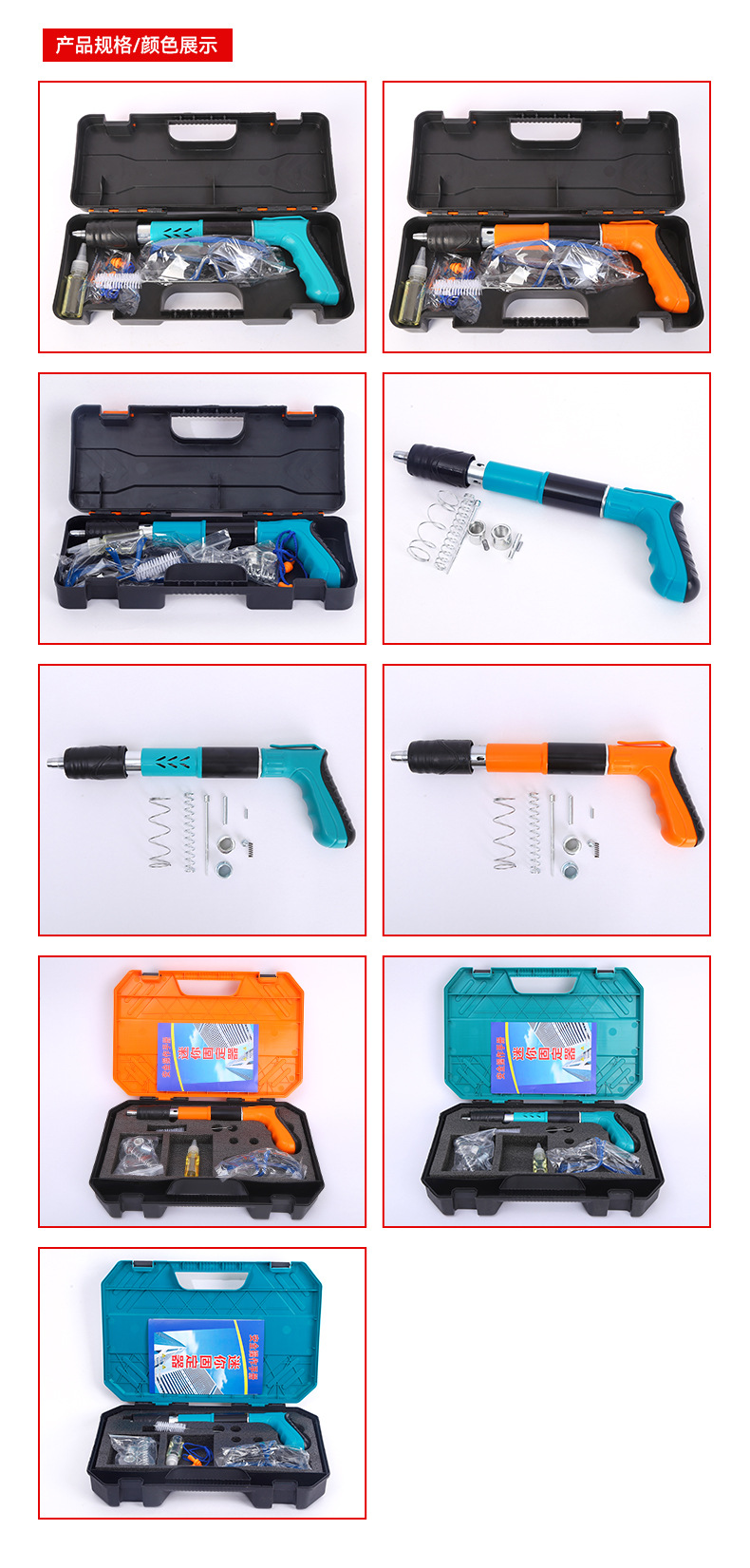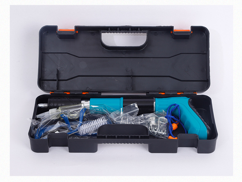 • 주황색 도구 상자 + 액세서리 가방 + 주황색 총 + 무료 못 100개와 디스크 못 27개