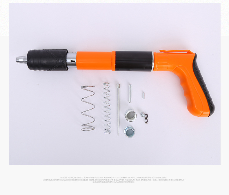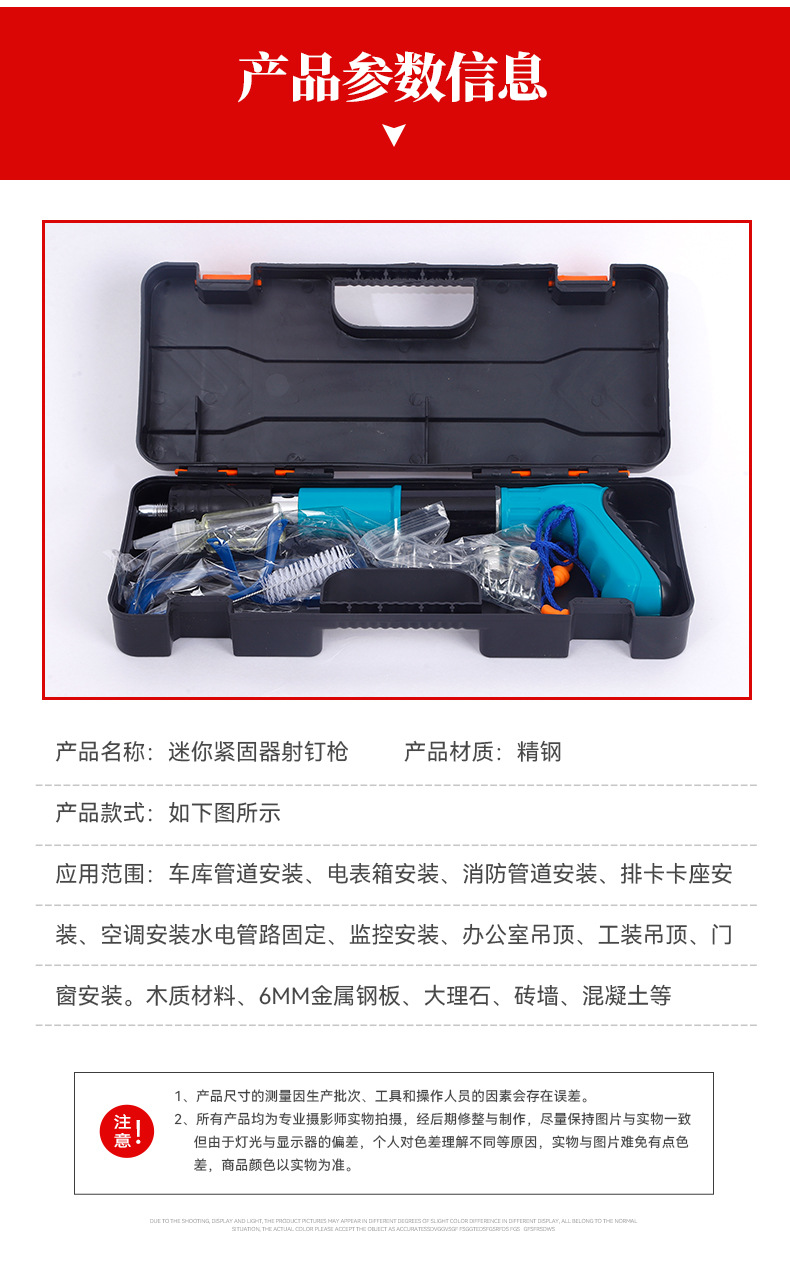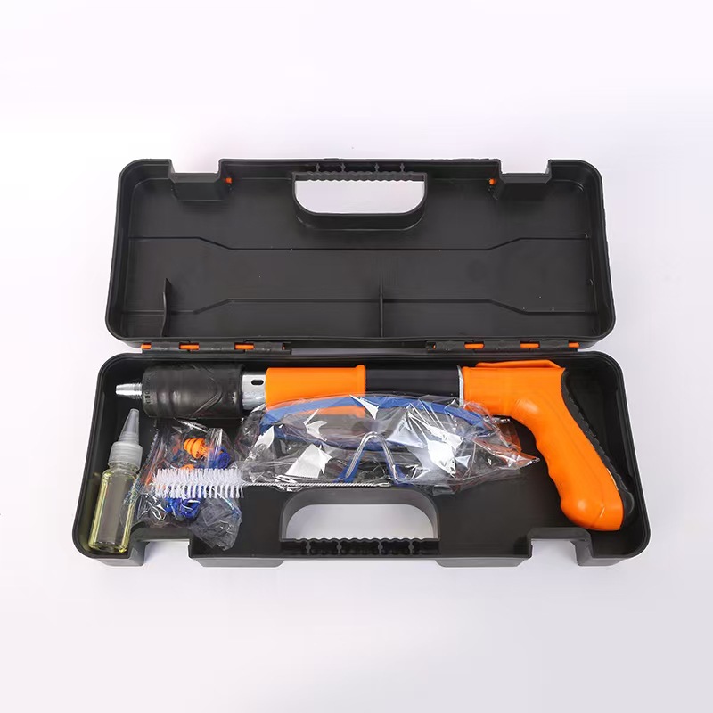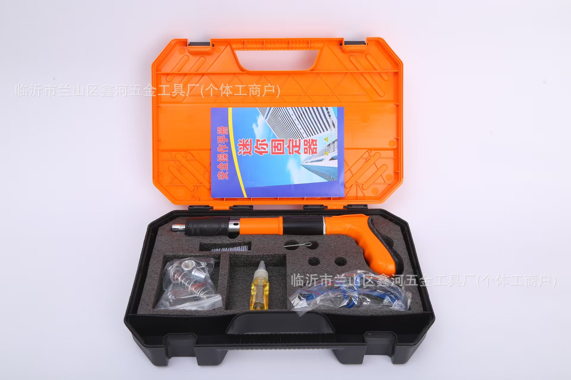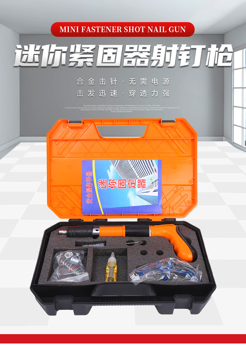 • 주황색 도구 상자 + 액세서리 가방 + 주황색 총 + 무료 못 50개와 디스크 못 27개