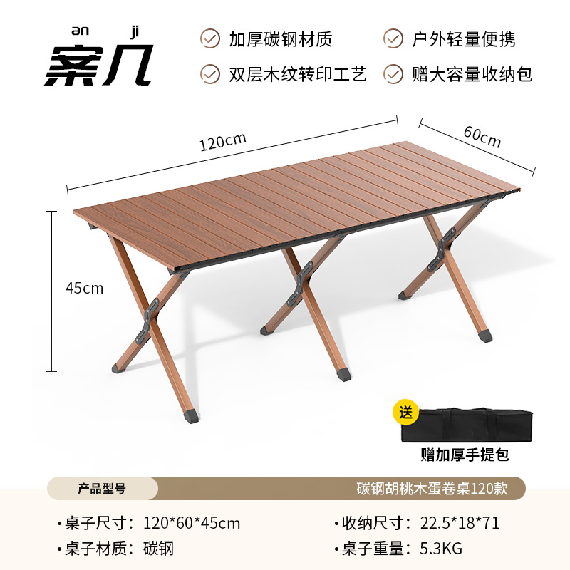 야외 접이식 테이블 계란 롤 테이블 휴대용 울트라 라이트 캠핑 테이블 캠핑 테이블과 의자 경량 피크닉 우드 그레인 피크닉 테이블
